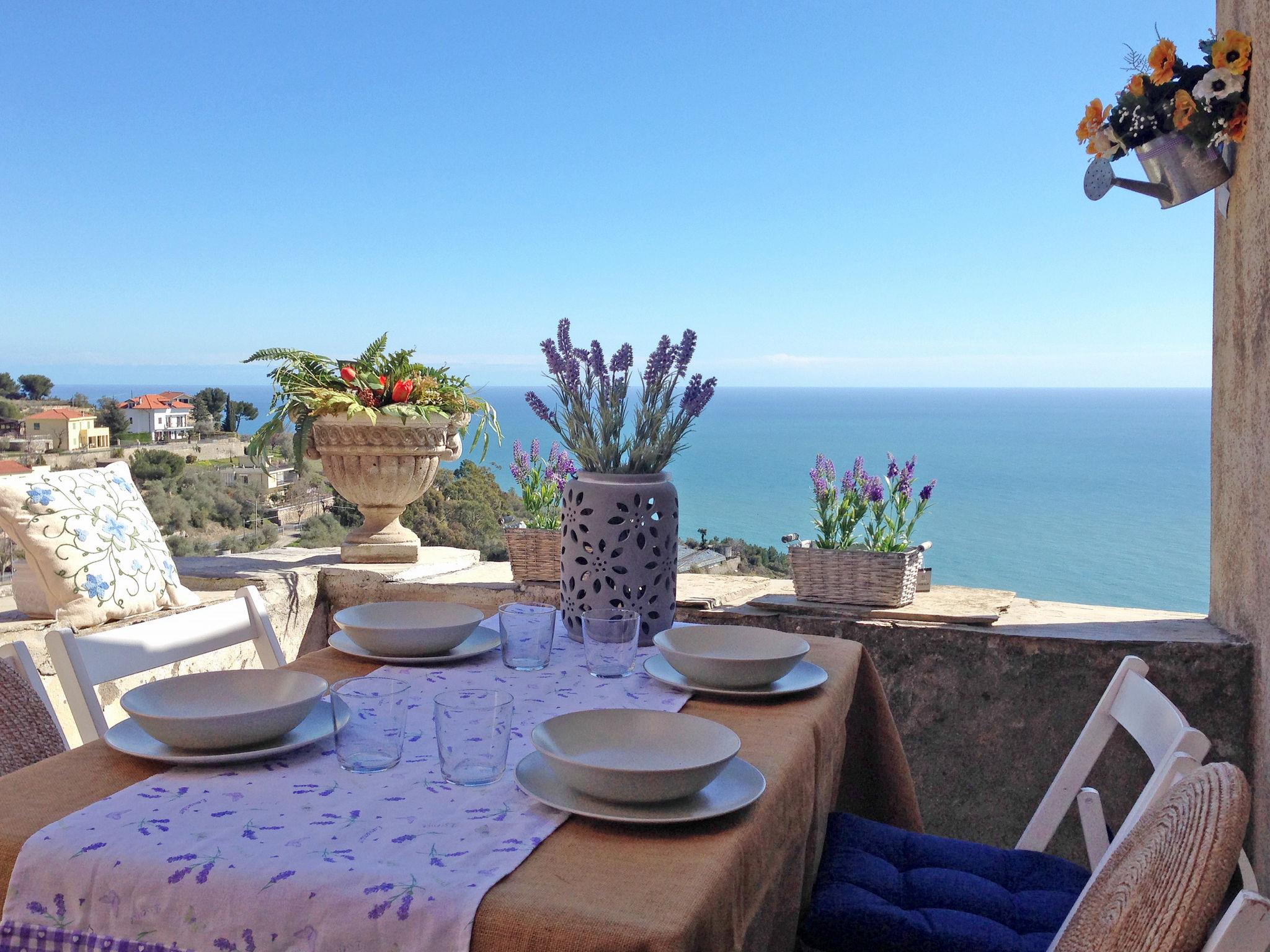 Cipressa 5 km from San Lorenzo al Mare: Small, rustic terraced house "Francesca". In the resort Cipressa, on the outskirts, 5 km from the centre of San Lorenzo al Mare, 11 km from the centre of Imperia, 5 km from the sea. In the house: roof terrace. 100 m steep footpath to the house. Public parking 100 m. Shop 100 m, supermarket 5 km, restaurant, bus stop 100 m, railway station "Imperia / Porto Maurizio" 11 km, sandy beach "San Lorenzo al Mare" 5 km, indoor swimming pool 11 km. Marina 10 km.