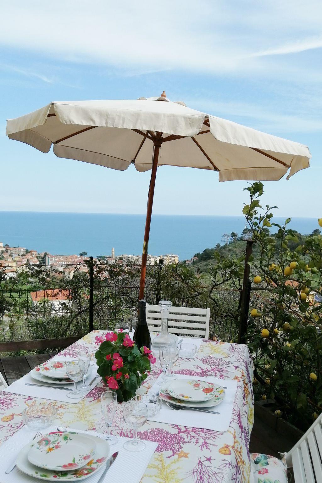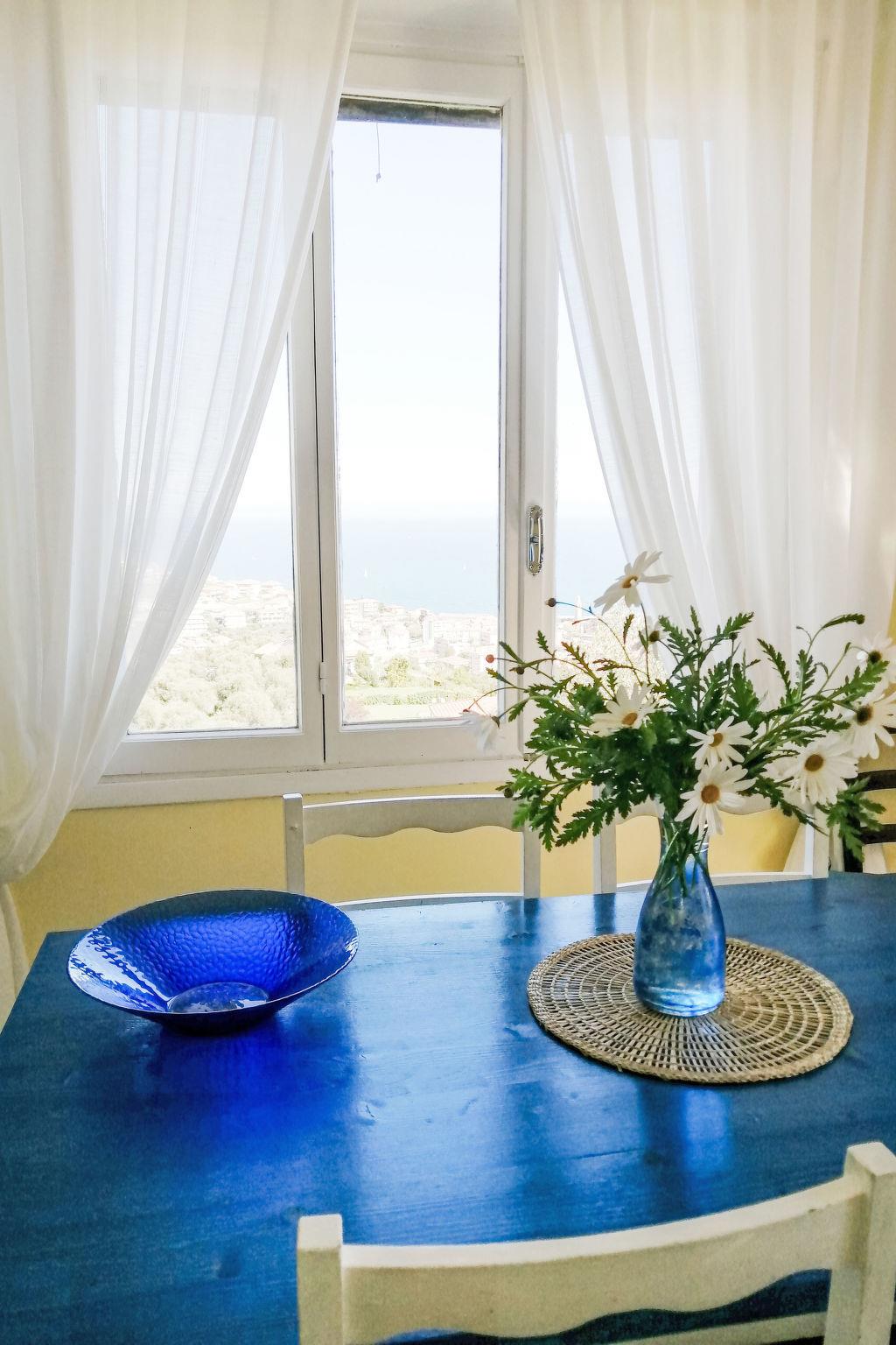 "Joly (SLR111)", 3-room apartment 65 m2 on 1st floor. Bright, practical furnishings: living/sleeping room with 2 beds (80 cm), dining table and satellite TV. Exit to the balcony, to the terrace. 2 rooms, each room with 1 french bed (160 cm). Kitchen (4 hot plates, mini-oven, oven, dishwasher, kettle, freezer, electric coffee machine). Exit to the balcony. Shower/WC, bath/shower/WC. Gas heating. Balcony 13 m2, terrace 16 m2. Terrace furniture, balcony furniture, barbecue, deck chairs. Marvellous view of the sea, the bay and the town. Facilities: washing machine. Internet (WiFi, free). Parking (2 cars). Please note: maximum 2 pets/ dogs allowed. Private entrance. IT008024C2C813RPNQ