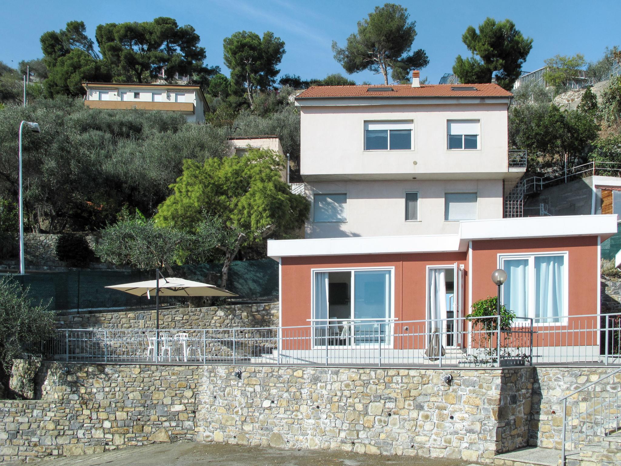 Small, modern resort "Baia dei Gabbiani", built in 2017. 6 houses in the residence. 500 m from the centre of San Lorenzo al Mare, on the outskirts, 3.5 km from the centre of Imperia (Porto Maurizio), 15 km from the centre of San Remo, on a slope, in the residential district, 200 m from the sea, 500 m from the beach, road to cross. For shared use: well-kept terraced garden, 1'600 m2 (fenced). Terrace, garden furniture. In the complex: reception, WiFi, table tennis, washing machine (for shared use). Stepped path (12 steps) to the house. Shop, grocery, restaurant, bar, bakery, café 500 m, bicycle rental 300 m, bus stop 6.8 km, sandy beach 500 m. Marina 200 m, cycle lane 50 m. Please note: residence with electric gates. Main road close by.