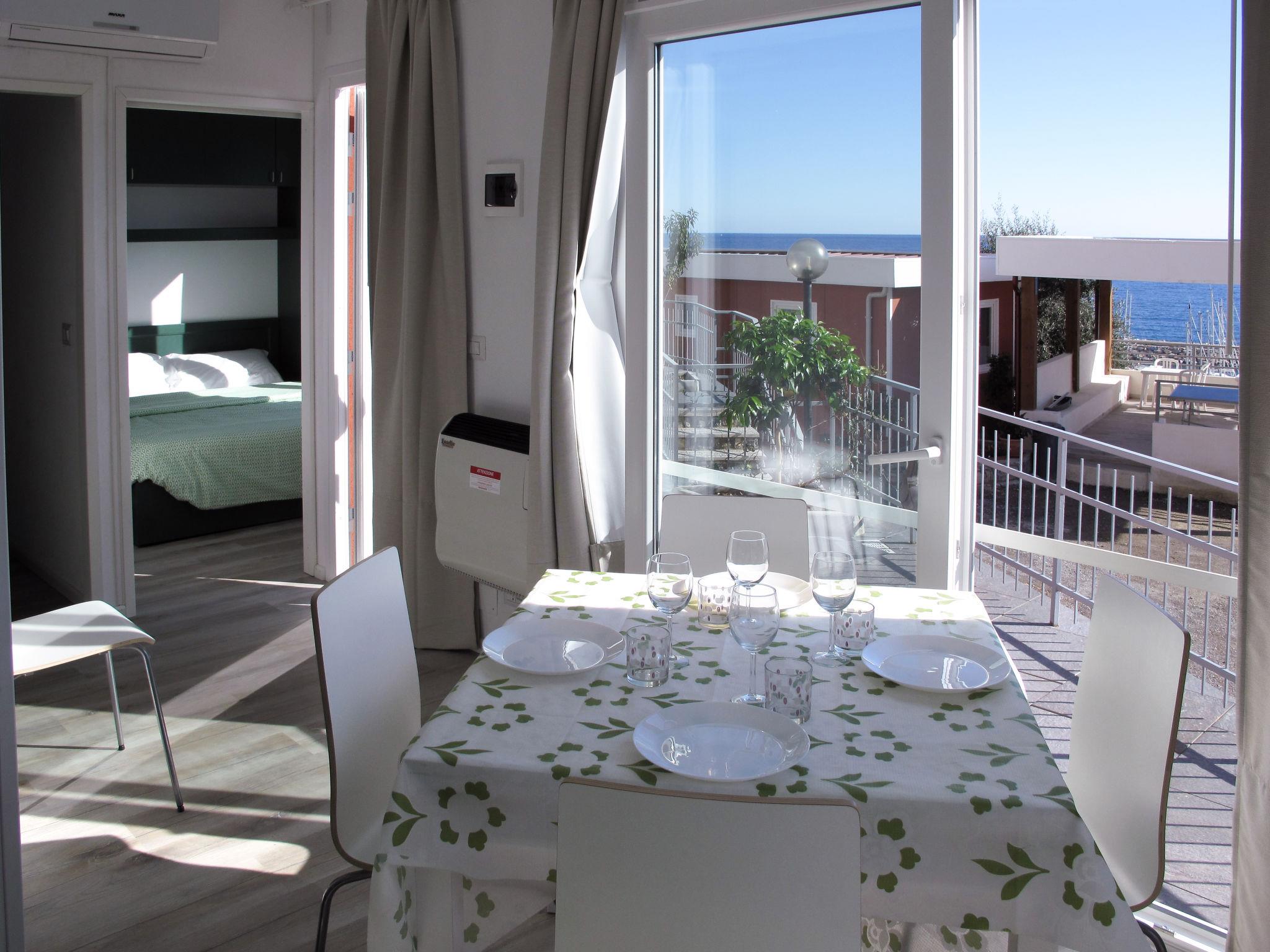 "Gelsomino (SLR403)", 3-room bungalow 36 m2. Bright, modern furnishings: 1 room with 1 french bed (160 cm). 1 room with 2 beds (80 cm). Kitchen-/living room (4 gas rings, toaster, microwave, freezer, electric coffee machine) with dining table, satellite TV. Exit to the terrace. Shower/WC. Heating, air-conditioning. Terrace. Terrace furniture, deck chairs (2). Beautiful view of the sea. Facilities: children's high chair, baby cot. Internet (WiFi, free). Parking (1 car). Please note: non-smokers only. Maximum 1 pet/ dog allowed. IT008054B1553SB4JB