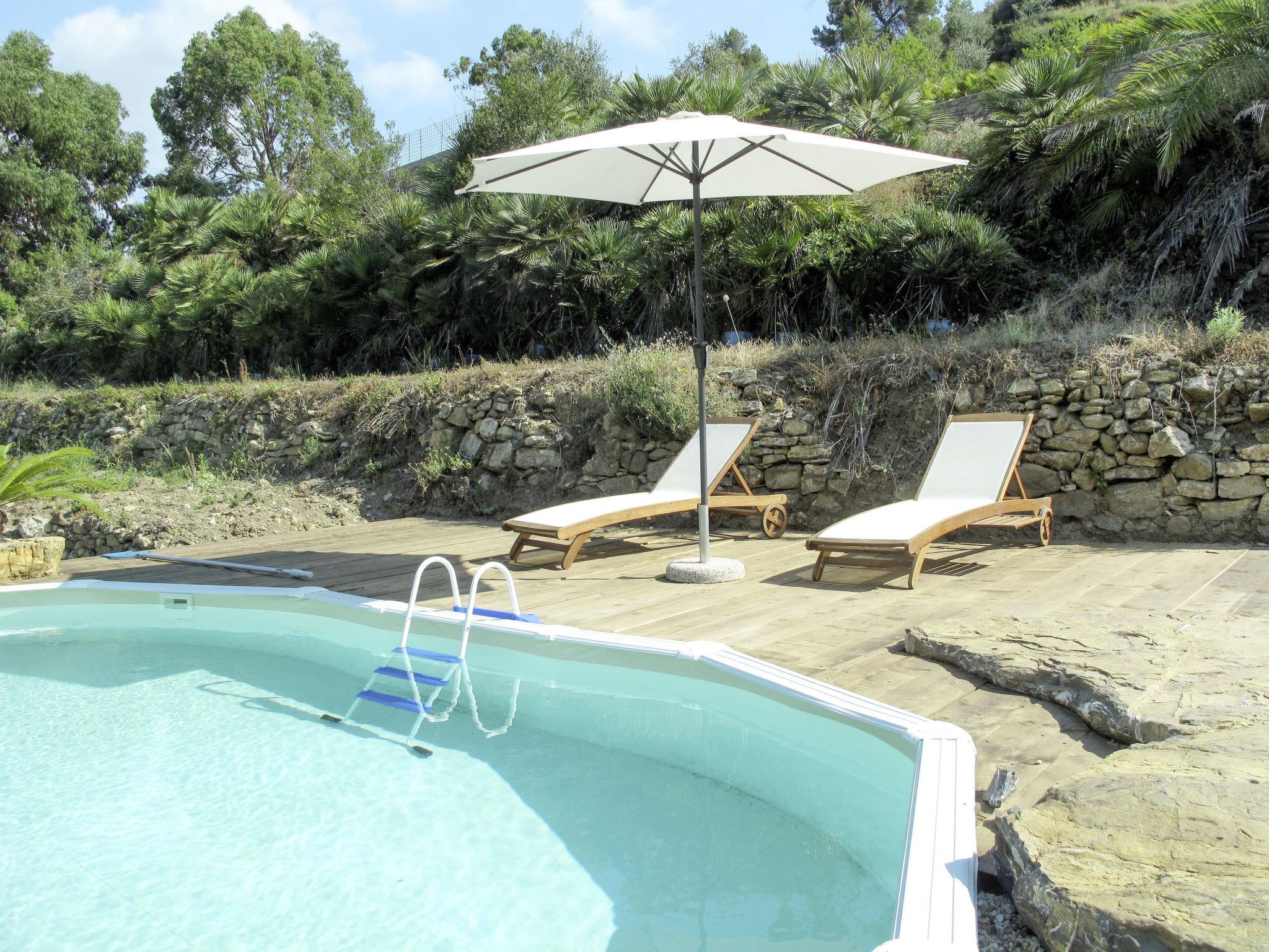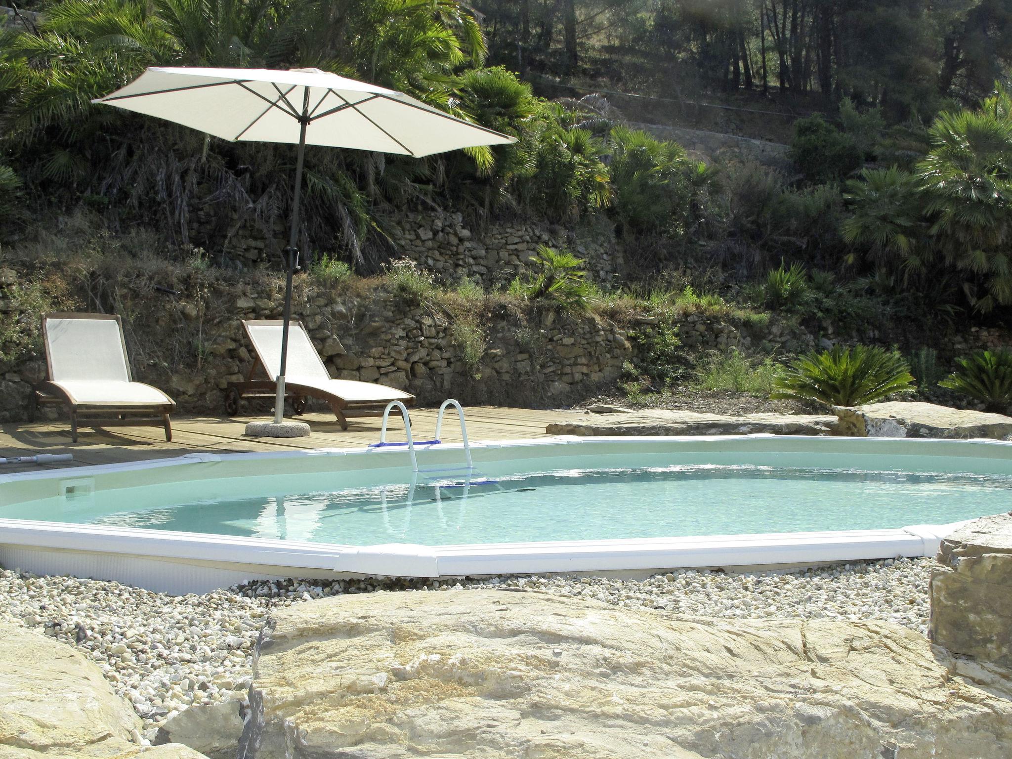 Small, cosy cottage "Villa Miró", surrounded by trees and fields. 2 km from the centre of San Lorenzo al Mare, 8 km from the centre of Imperia, 18 km from the centre of San Remo, in a secluded position, 2 km from the sea, in a cul-de-sac, in the countryside. For shared use: property 50'000 m2. Table tennis. Private: natural state property 400 m2 (fenced) with wildlife garden and trees, swimming pool (7 x 4 m, depth 130 cm, seasonal availability: 01.Apr. - 30.Nov.). Outdoor shower, table tennis, parking (for 2 cars) on the premises, public parking on the road. Shop 2 km, grocery 2 km, supermarket 2 km, restaurant 2 km, bar 2 km, bakery 2 km, café 2 km, pedestrian zone 2 km, bicycle rental 2 km, bus stop 14.8 km, railway station "Imperia / Porto Maurizio" 8 km, sandy beach 2 km, indoor swimming pool 8 km, natural swimming pond 3 km. Walking paths from the house 100 m, cycle lane 2 km. Please note: animals in the neighbourhood.