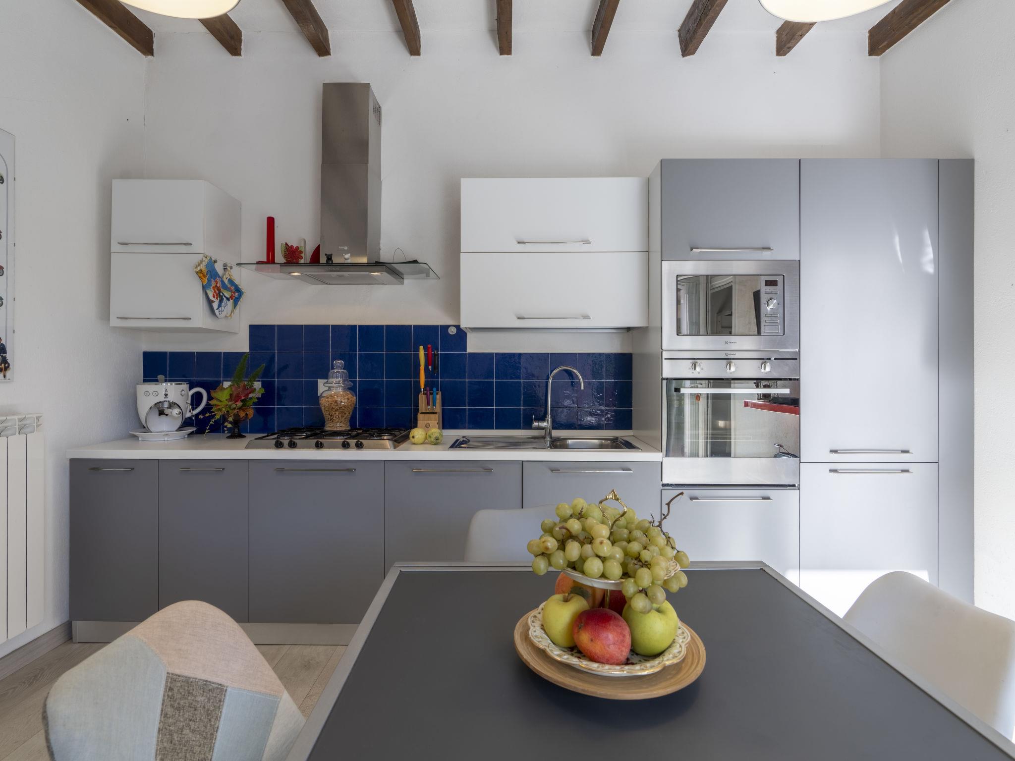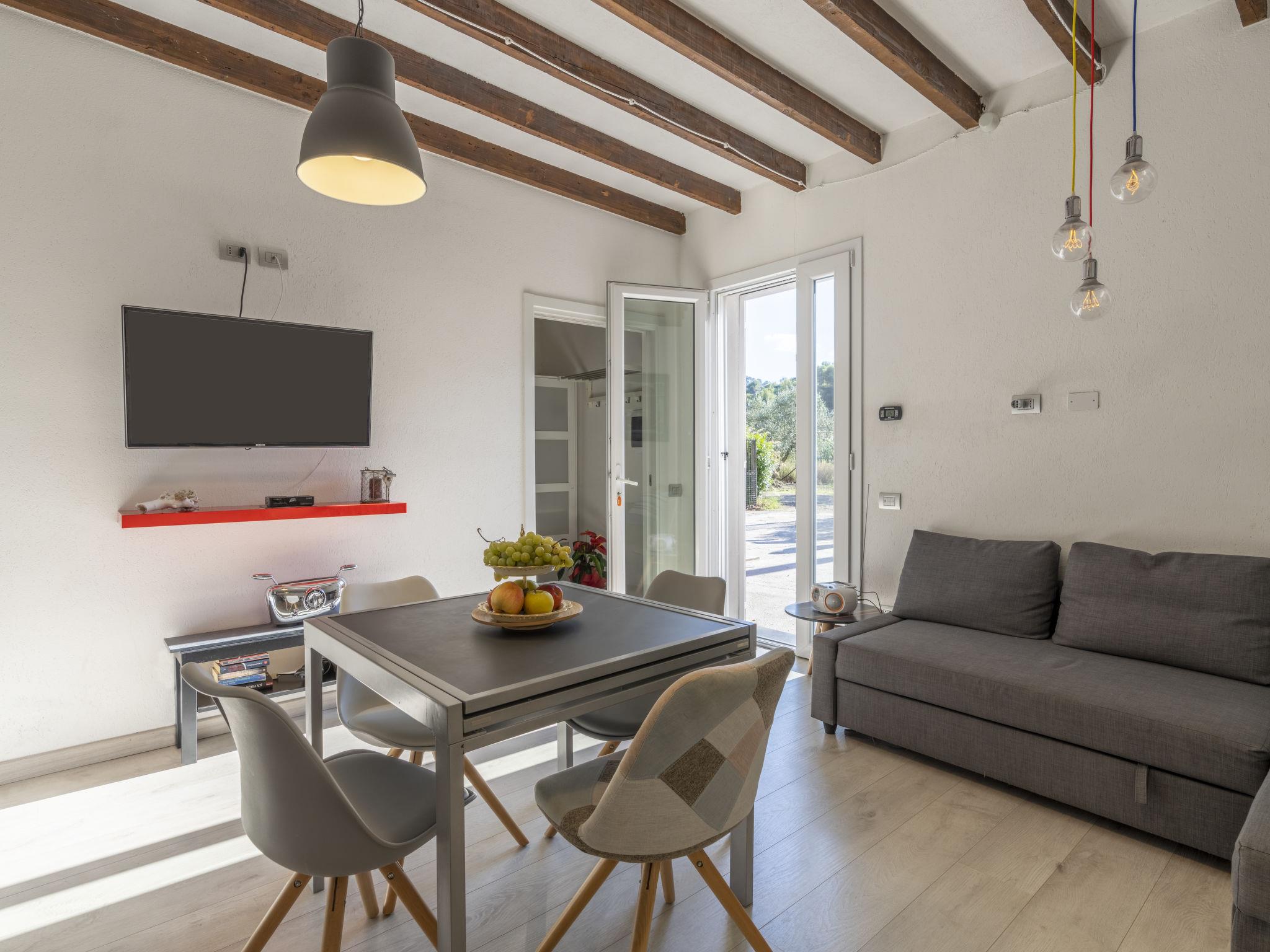 "Villa Miró", 2-room house 60 m2 on 2 levels. Renovated in 2015, modern and stylish furnishings: living/sleeping room with 1 double sofabed (140 cm), dining table and hi-fi system. Exit to the terrace. Open kitchen (oven, dishwasher, 5 gas rings, toaster, microwave, freezer, electric coffee machine). Shower/WC. Gas heating, air-conditioning. Upper floor: (open staircase) open gallery with sloping ceilings with Dressing room with 1 french bed (160 cm). Parquet floors. Large terrace partly roofed. Terrace furniture, barbecue, deck chairs (4). Facilities: washing machine, safe, iron, mosquito net, children's high chair, baby cot. Internet (WiFi, free). Maximum 3 pets/ dogs allowed. IT008022B55QJGX93C