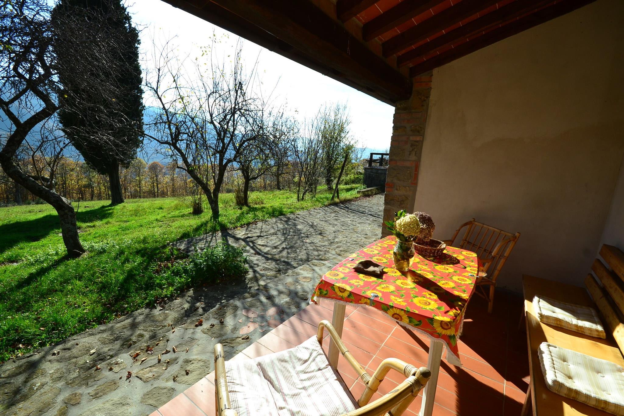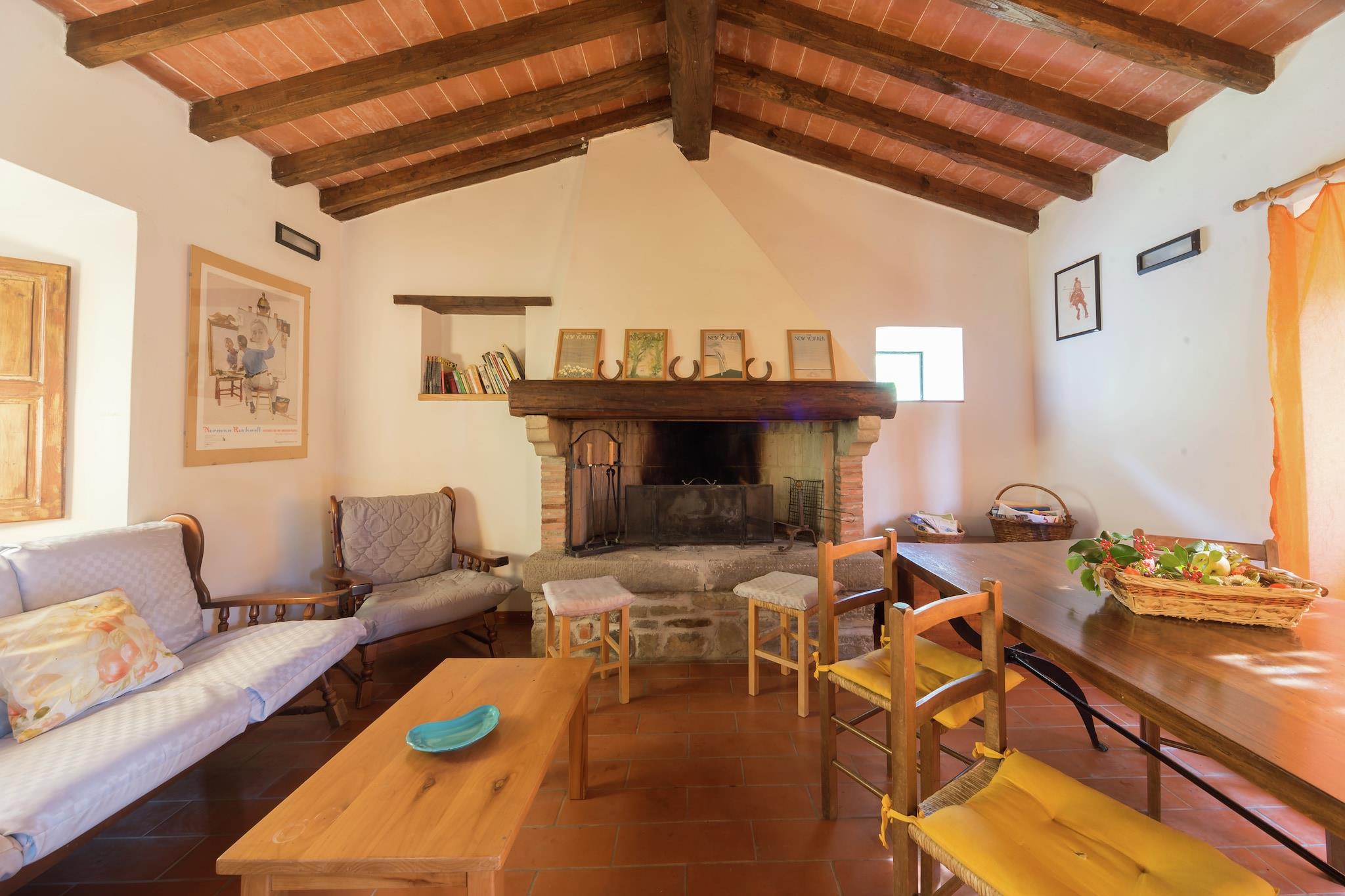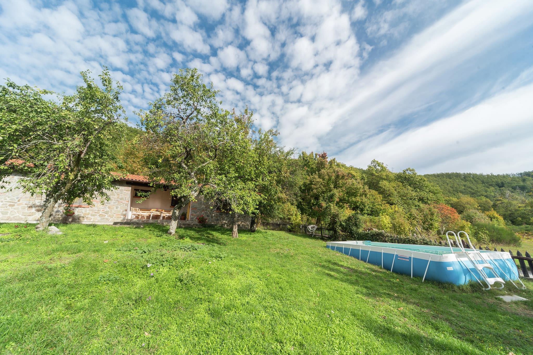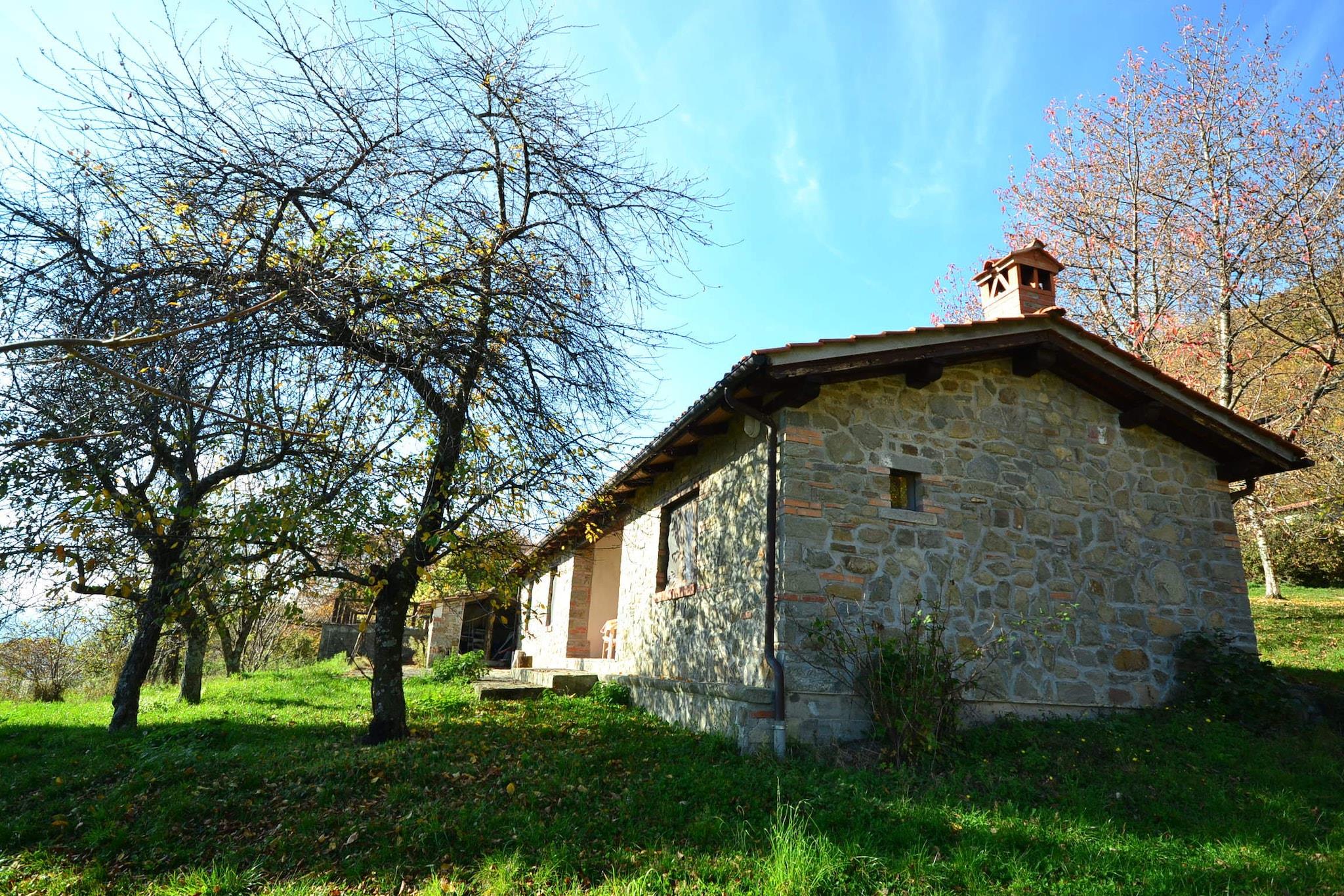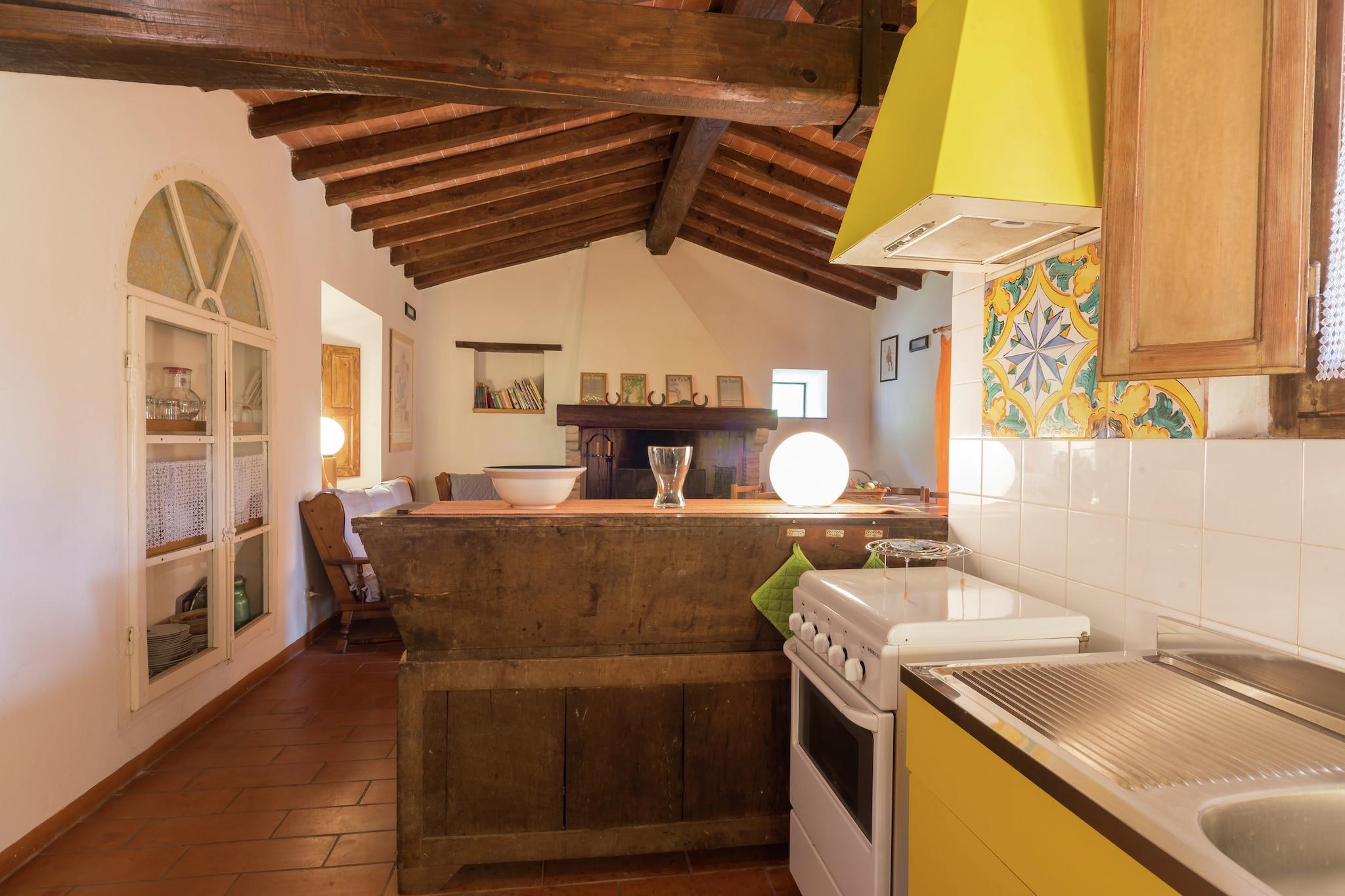 Denne koselige hytten med 2 soverom tilbyr et fredelig tilfluktssted for opptil 4 gjester, noe som gjør det ideelt for familier som søker natur og ro. Plassert i en stor eiendom på 100 hektar fylt med kastanje- og kalkuneikeskoger, er hjemmet perfekt for naturskjønne turer og fullstendig avslapning. Bygget av originale gårdsbygninger som en låve og to sauefier, nyter stein- og trehuset full sørlig eksponering med vidstrakt utsikt. Selv om det er midt i grøntområder, er det bare en 15-minutters spasertur, eller en 5 km kjøretur, fra torget i byen. Store toskanske destinasjoner som Pistoia (29 km), Lucca (50 km) og Firenze (60 km) er innen rekkevidde. Havet (Marina di Vecchiano eller Viareggio) er rundt 1,5 time unna med bil, og Firenze flyplass ligger 60 km fra eiendommen. Innvendig har hjemmet en varm stue/spisestue med peis, et fullt utstyrt kjøkken og to soverom med køyesenger eller enkeltsenger. Utenfor kan du nyte et privat inngjerdet basseng (5 x 3 m), en terrasse og en hage med møbler. Kjæledyr er velkomne, og parkering på stedet er tilgjengelig. Vær oppmerksom på at du må sjekke inn før kl. 20.00.