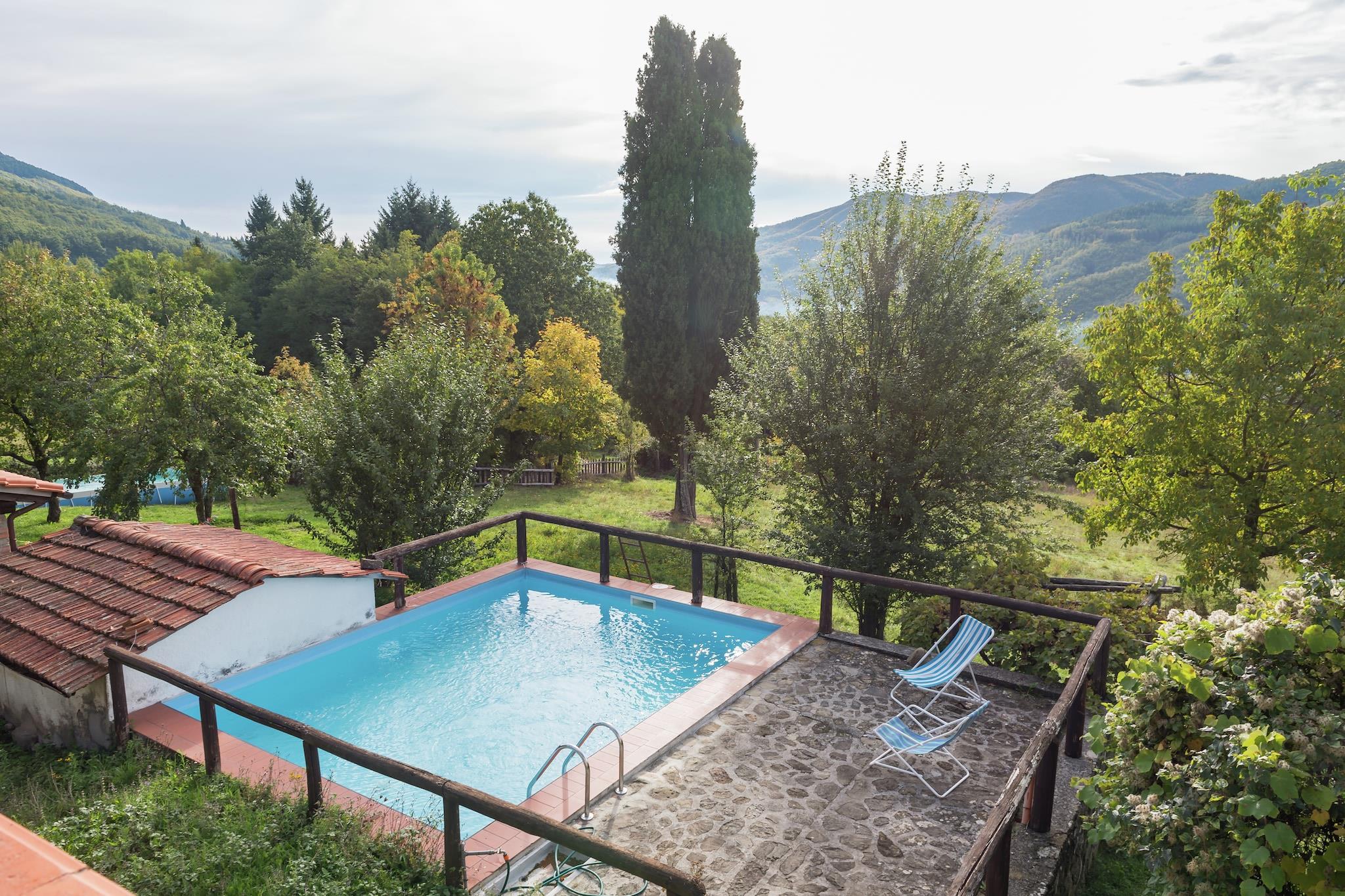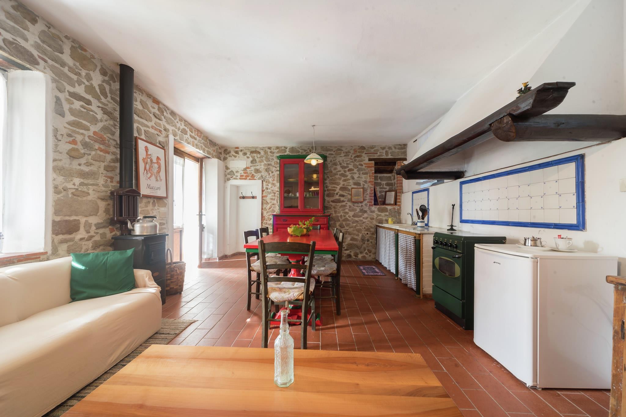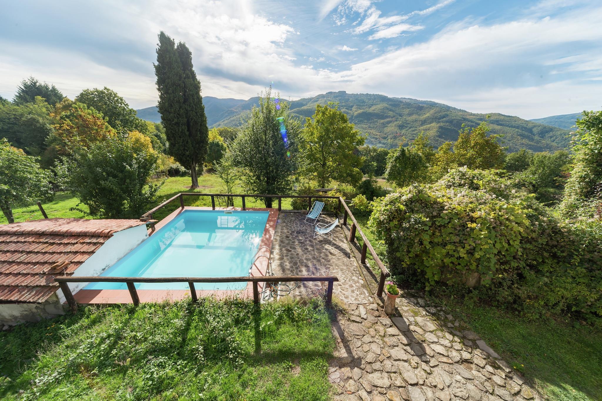 Flytt til denne koselige hytten i de toskanske åsene, ideell for en familie eller gruppe på 5 gjester. Hjemmet er omgitt av grøntområder og ligger nær San Marcello Pistoiese, og tilbyr et fredelig tilfluktssted med lett tilgang til kulturelle perler som Pistoia (29 km), Lucca (50 km) og Firenze (60 km). Hytta har et lunt interiør med peis i stue og spisestue og et åpent kjøkken utstyrt med 4-brenner komfyr, stekeovn og kjøleskap. Den inkluderer en sovenisje med en enkeltseng, to mesaniner, en med dobbeltseng og en annen med to enkeltsenger, og to bad, hver med dusj, toalett, bidet og servant. Utenfor kan du nyte den delvis inngjerdede hagen, slappe av på hagemøblene eller kjøle deg ned i ditt private svømmebasseng (6 x 5 m, åpent mai-sep). Privat parkering og WiFi er inkludert. Restauranter og et supermarked ligger bare 1 km unna, noe som gjør hverdagslige bekvemmeligheter lett tilgjengelige. En perfekt blanding av komfort og natur i Toscana!