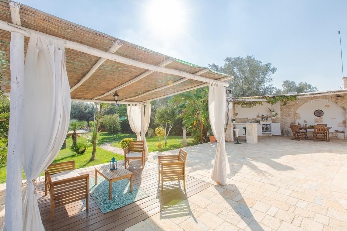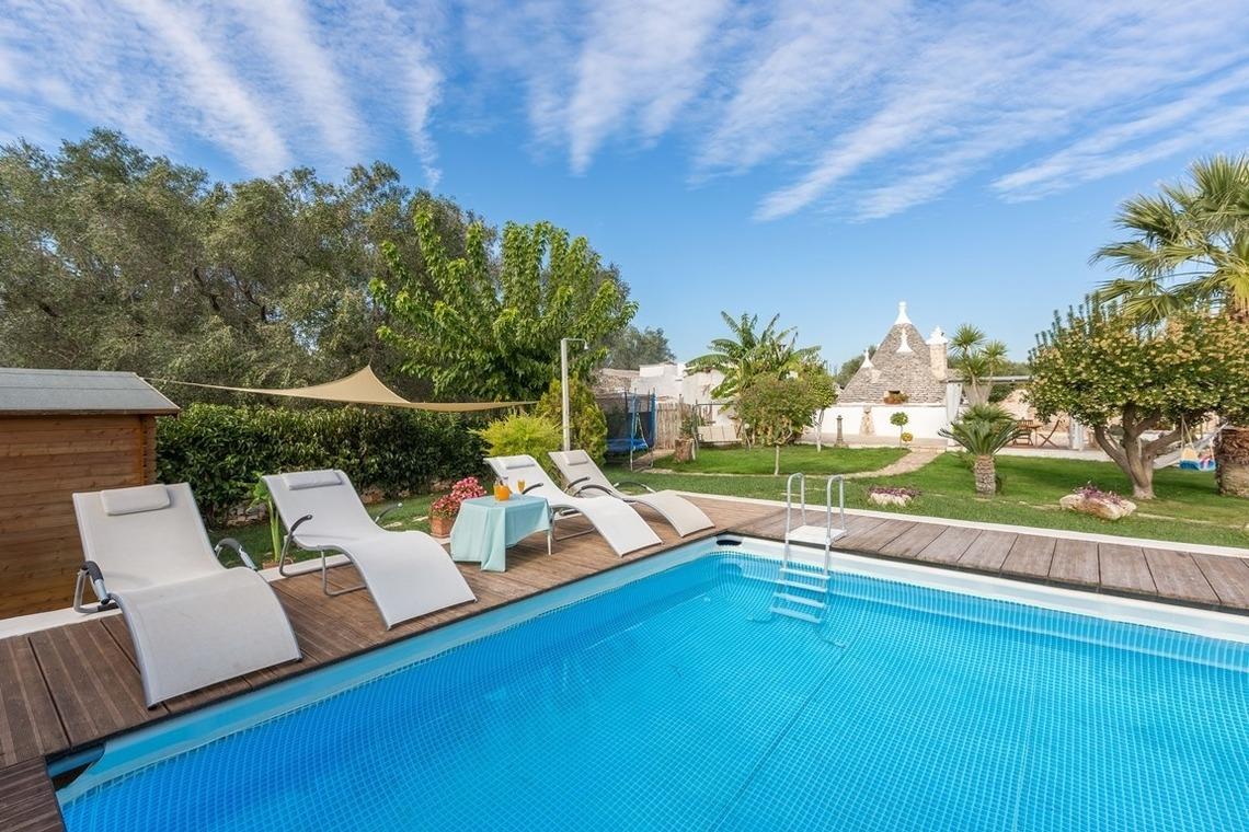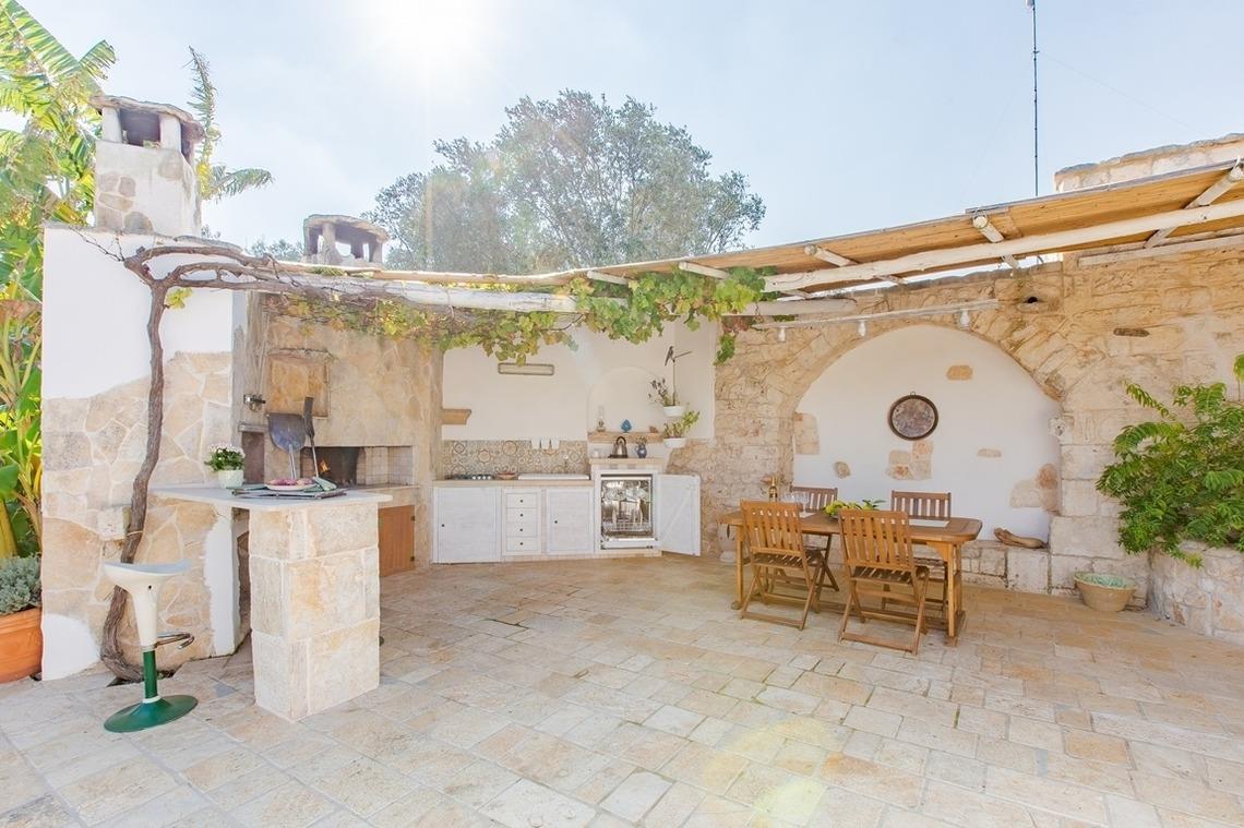 Es gibt drei Küchen, eine im Trullo, eine im Anbau und eine auf der Veranda. Der Elektroofen ist im Trullo vorhanden. Das Schlafsofa befindet sich im Wohnbereich des Trullos. Klimaanlage ist im Nebengebäude verfügbar. Der Garten ist eingezäunt und mehr als einen Meter hoch. Besonderer Gast: die Hühner, die den Gästen morgens mit ihren frischen Eiern ein gesundes Frühstück garantieren.