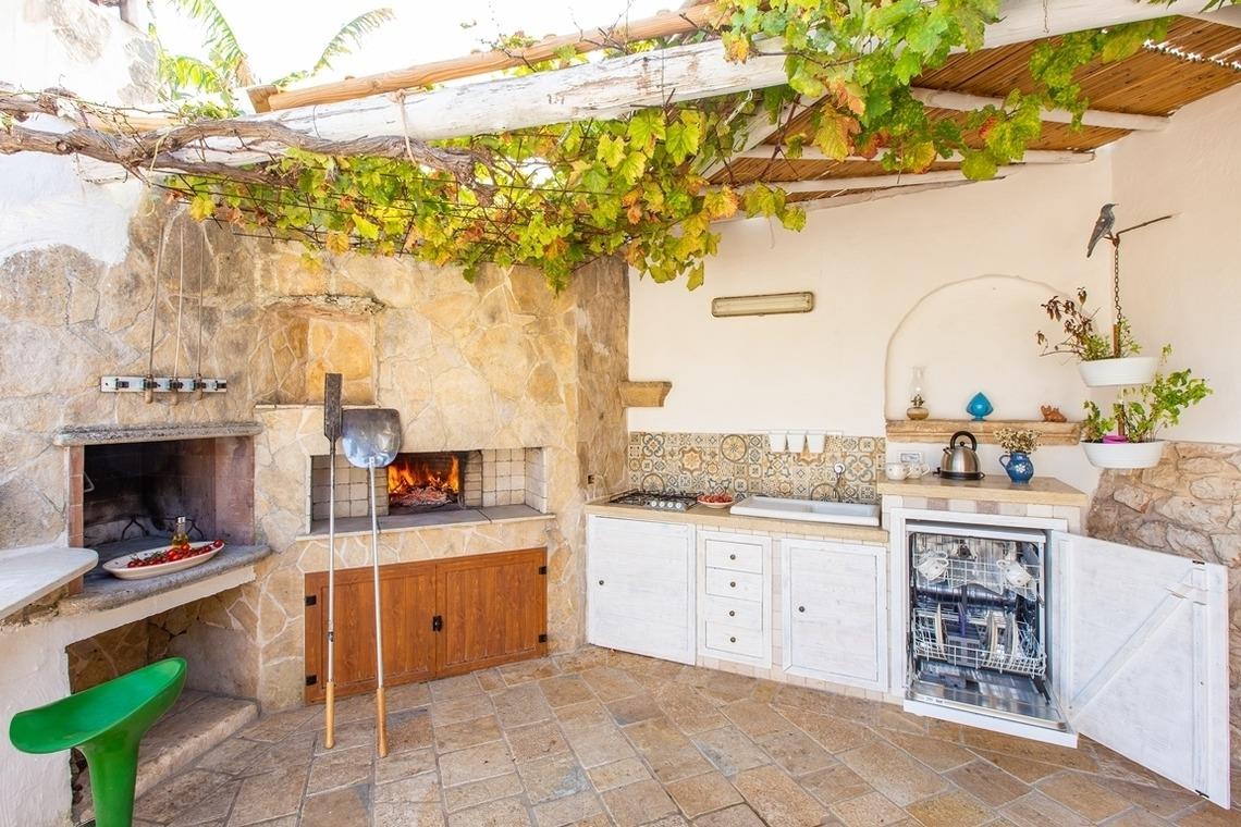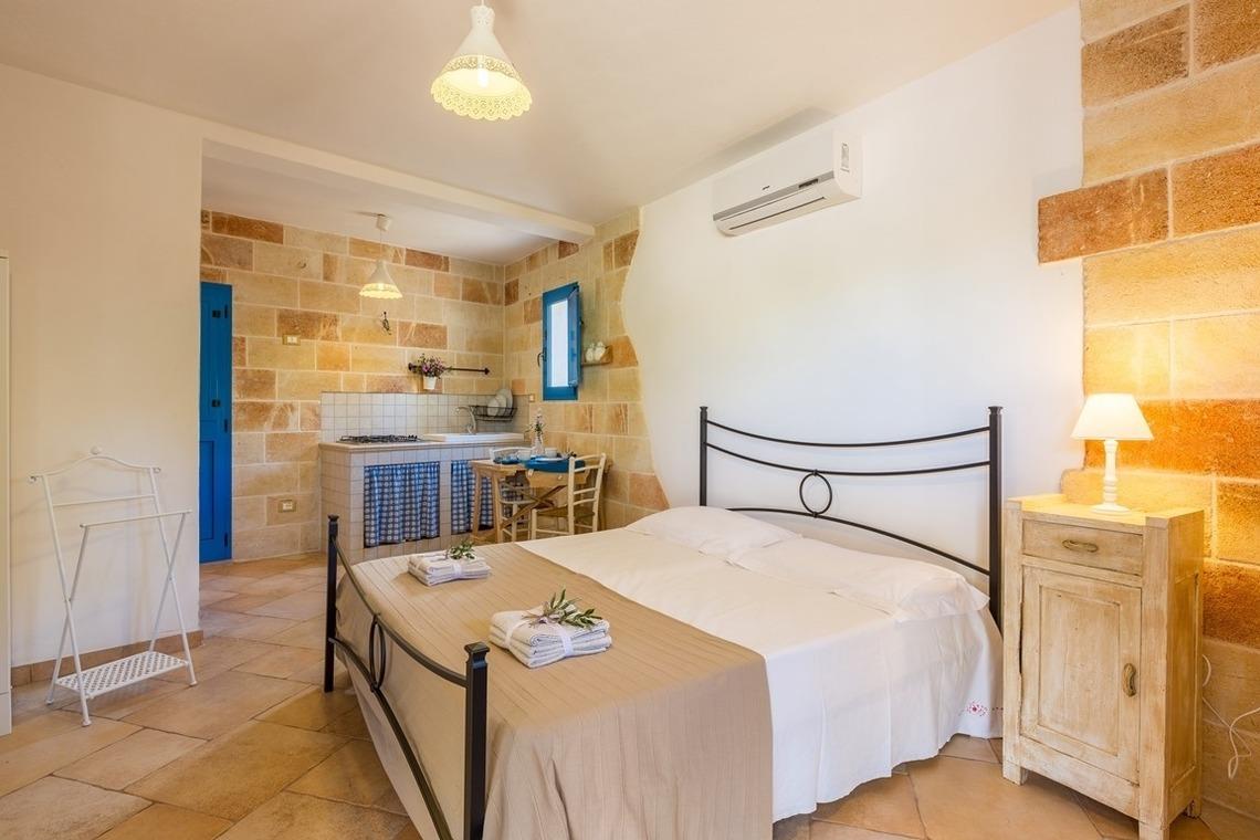 Außerhalb und neben dem Trullo befindet sich ein 20 m2 großes Nebengebäude mit einem Schlafzimmer mit Doppelbett, einem großen Badezimmer mit Dusche, einer Küchenzeile mit vier Kochplatten, einem Minikühlschrank und einer Terrasse mit Lesesesseln.