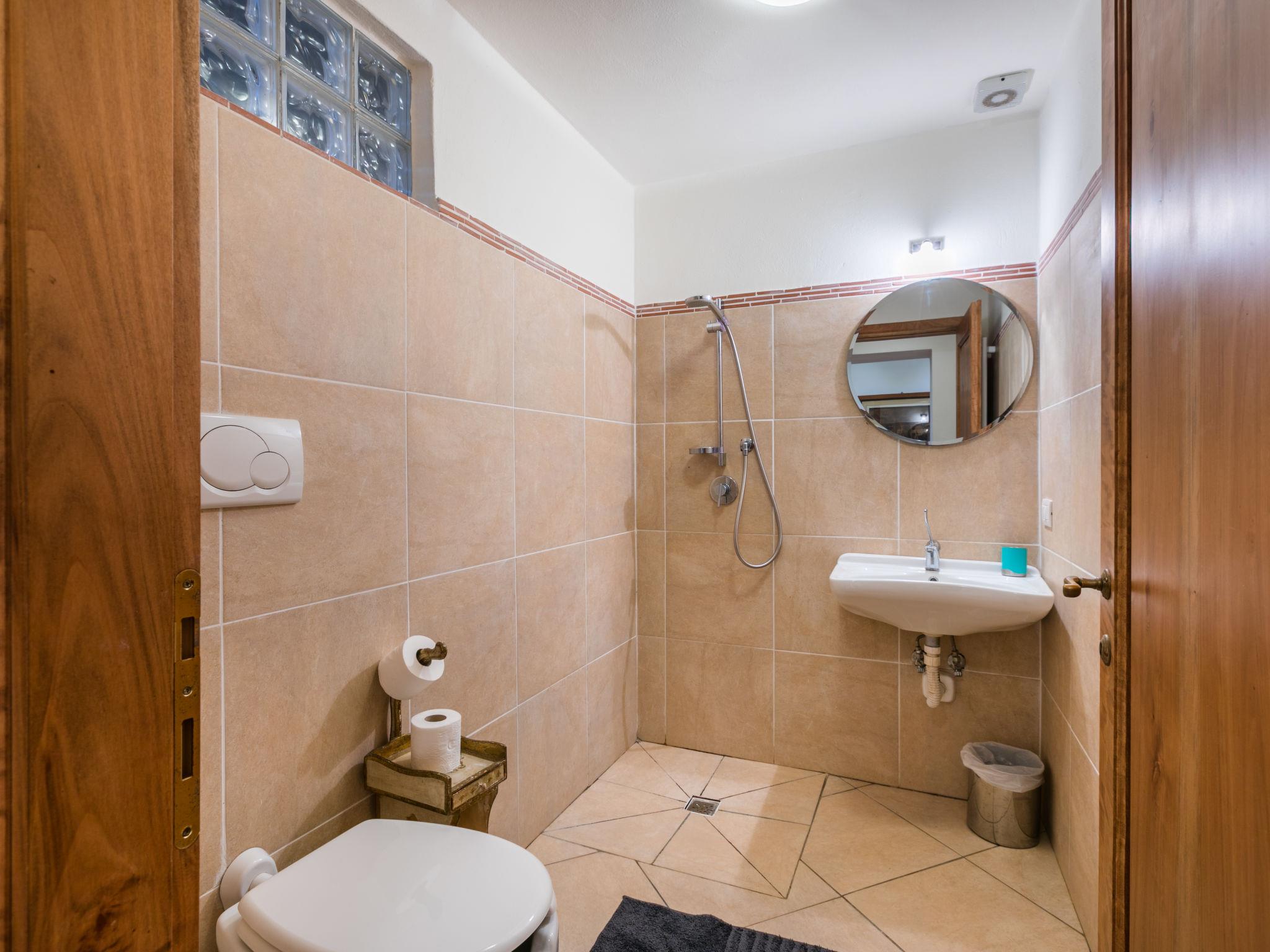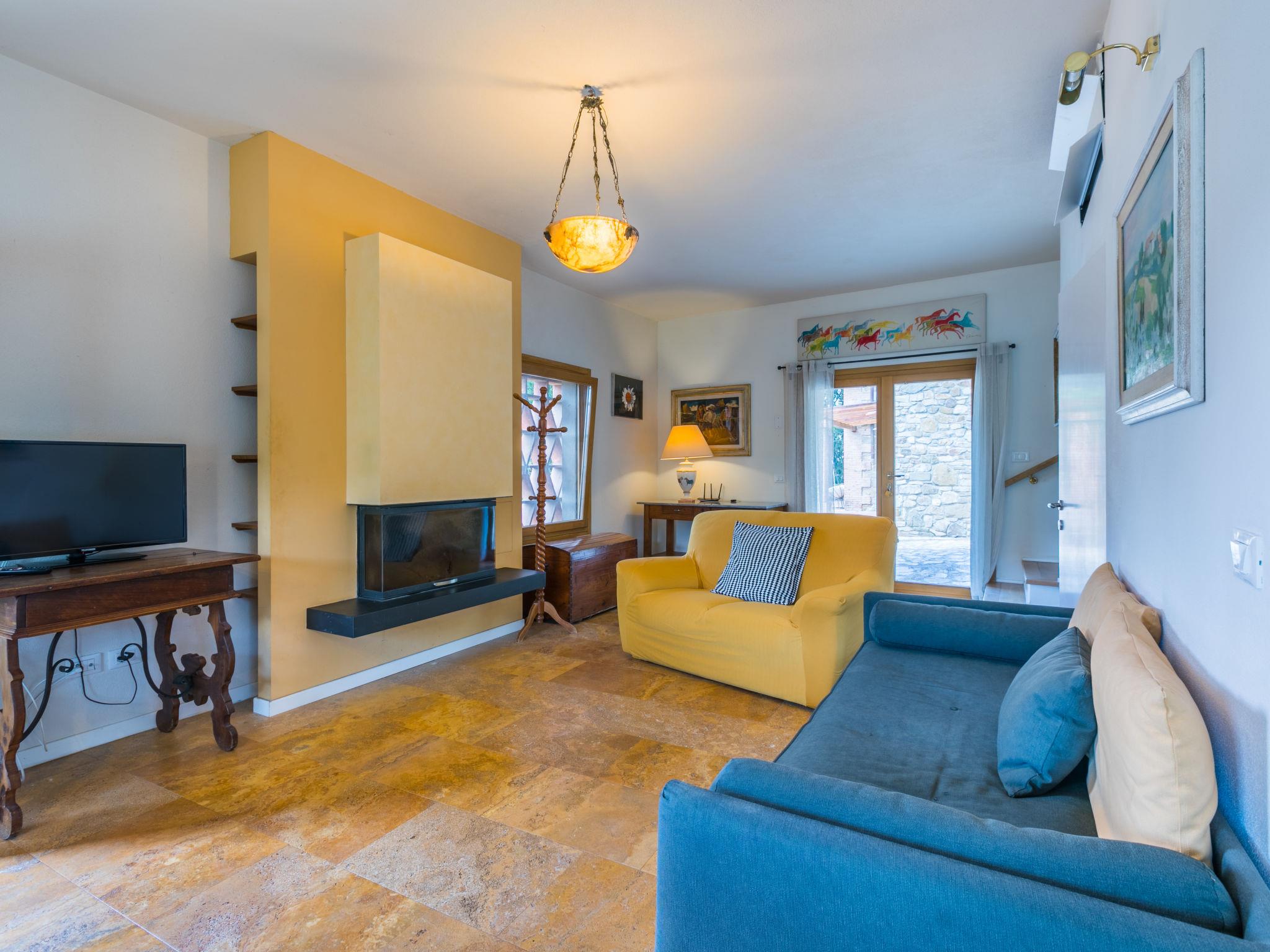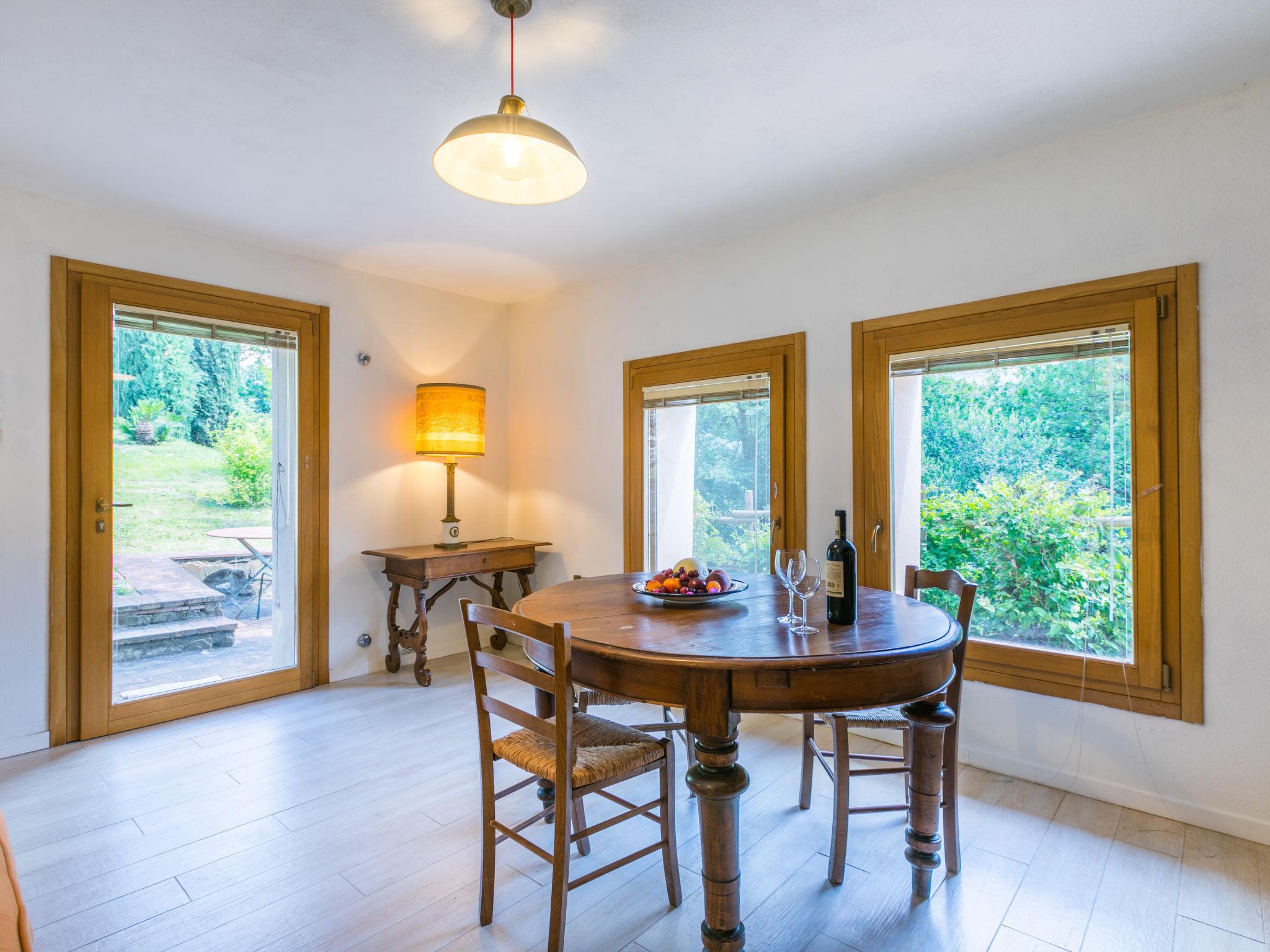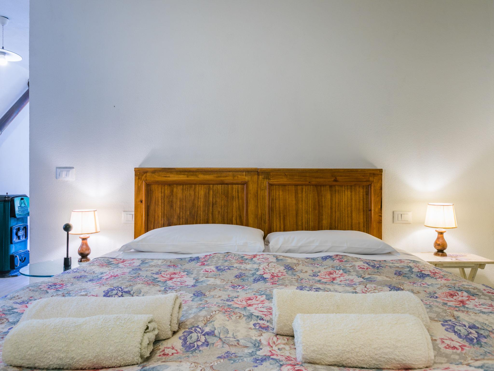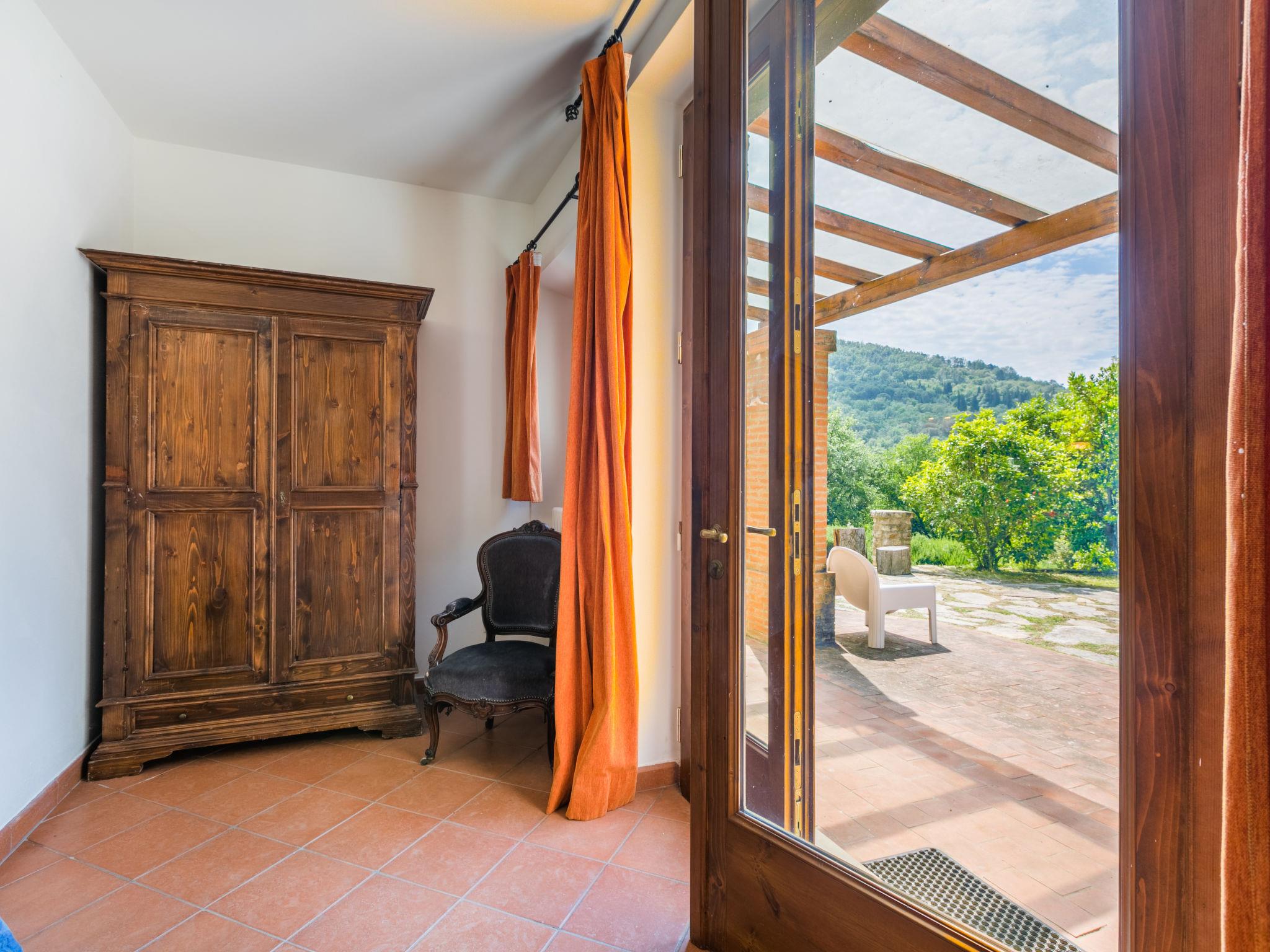 "Policleto", 9-room house 270 m2 on 3 levels. Spacious, partly renovated in 2023, comfortable and cosy furnishings: living/dining room with dining table, satellite TV, wood-burning stove and air conditioning. 2 double bedrooms, each room with shower/bidet/WC and air conditioning. Exit to the garden. 1 double bedroom with shower/bidet/WC and air conditioning. Kitchen (oven, dishwasher, 5 gas rings, toaster, kettle, microwave, freezer, electric coffee machine) with air conditioning. On the lower ground floor: (exterior staircase) living/dining room with kitchen corner. Exit to the garden. 1 double bedroom. Shower/bidet/WC. Upper floor: living/dining room with open-hearth fireplace, satellite TV and air conditioning. Open kitchen (oven, dishwasher, 4 gas rings, toaster). Shower/bidet/WC. 2nd upper floor: 2 double bedrooms, each room with air conditioning. Bath/shower/bidet/WC. Electric heating (extra), air-conditioning. Parquet floors, natural stone floors. Large garden 100 m2. Terrace furniture, barbecue, box-room. Beautiful panoramic view of the countryside. Facilities: washing machine, children's high chair, baby cot for up to 2 year olds. Internet (WiFi, free). Parking at the house. Please note: one double bedroom is outside the apartment. Non-smoking house. Smoke alarm, fire extinguisher. No internal connecting door between the separated properties. IT048001B5KNPC4G7Y