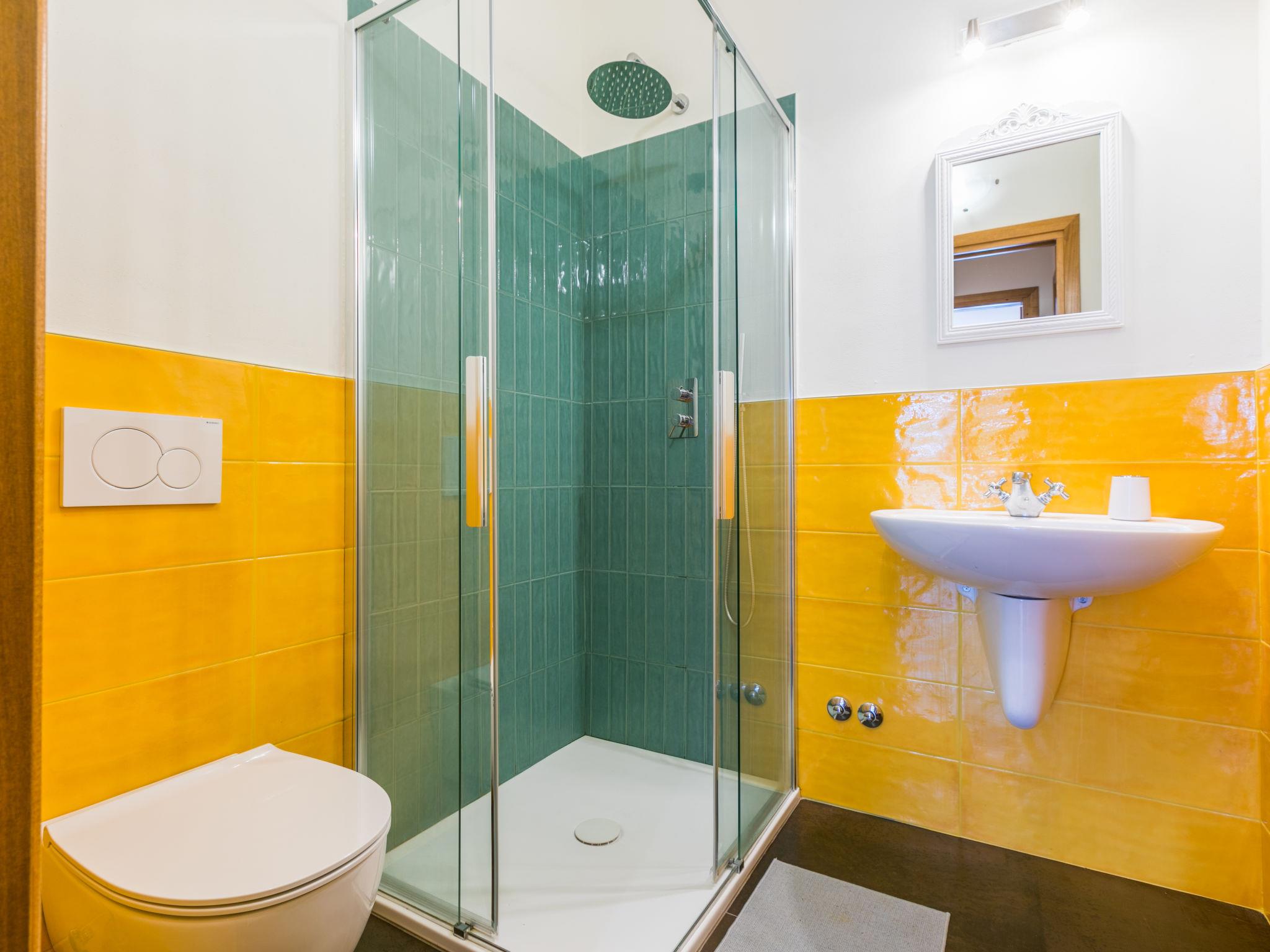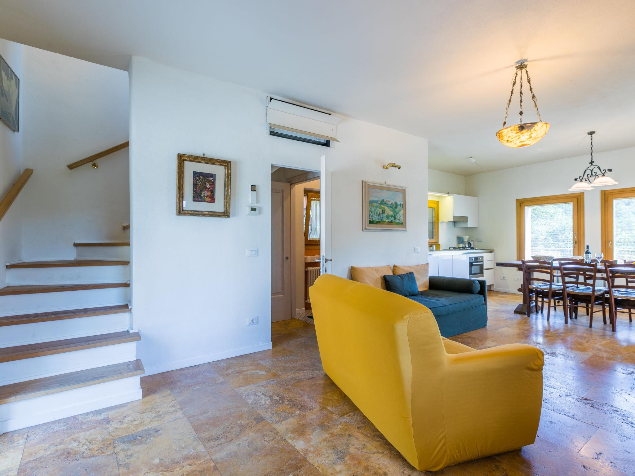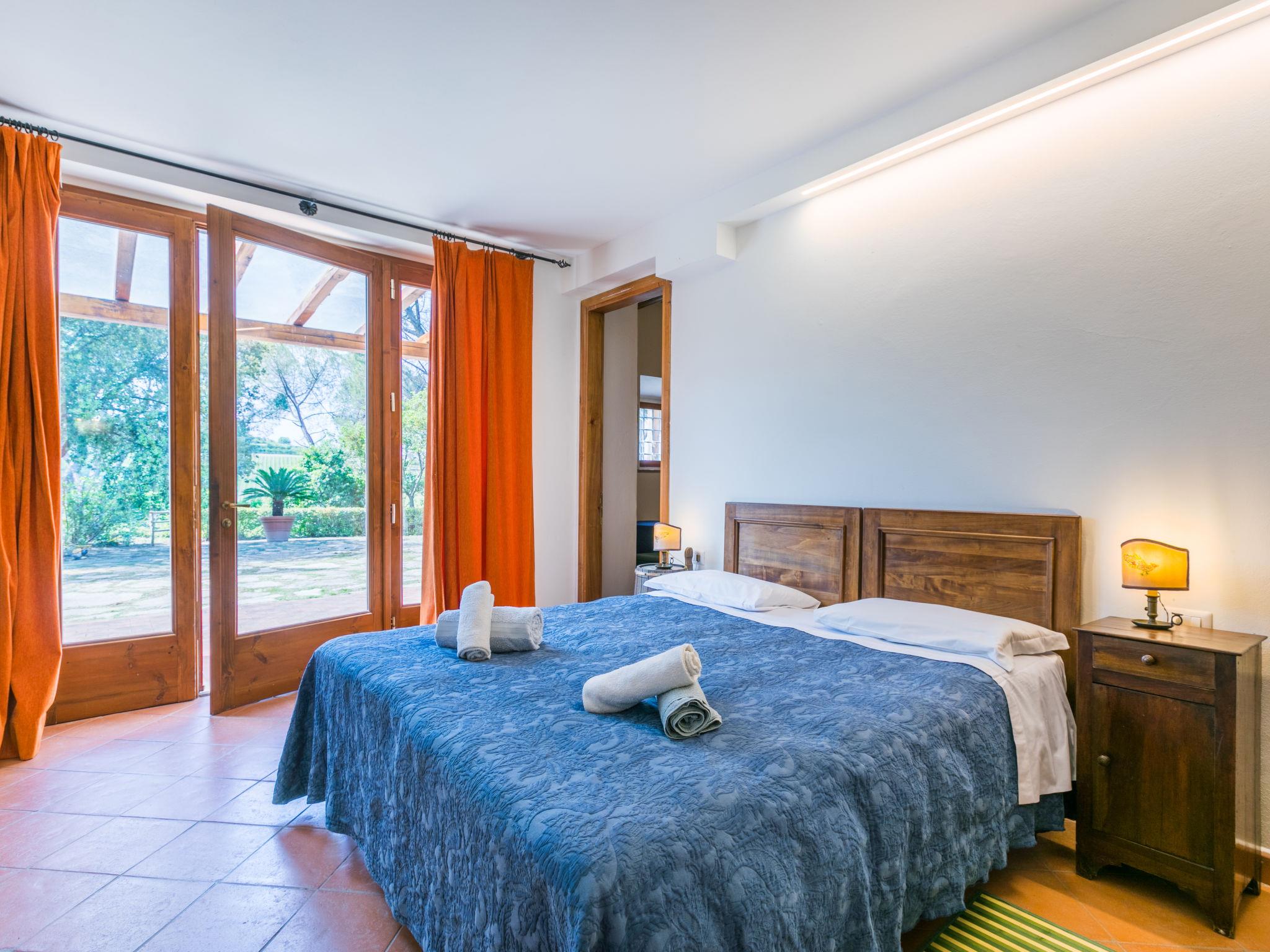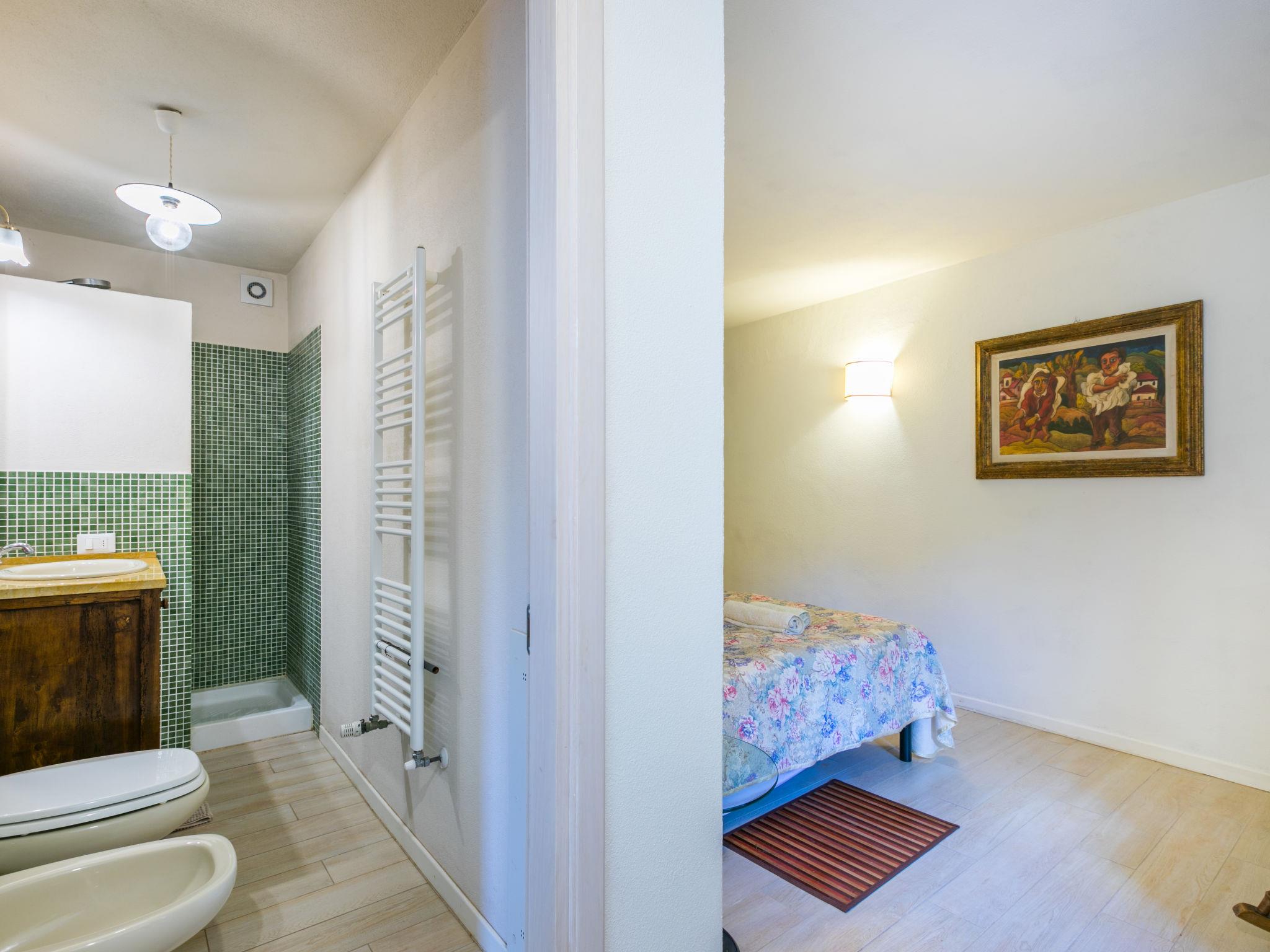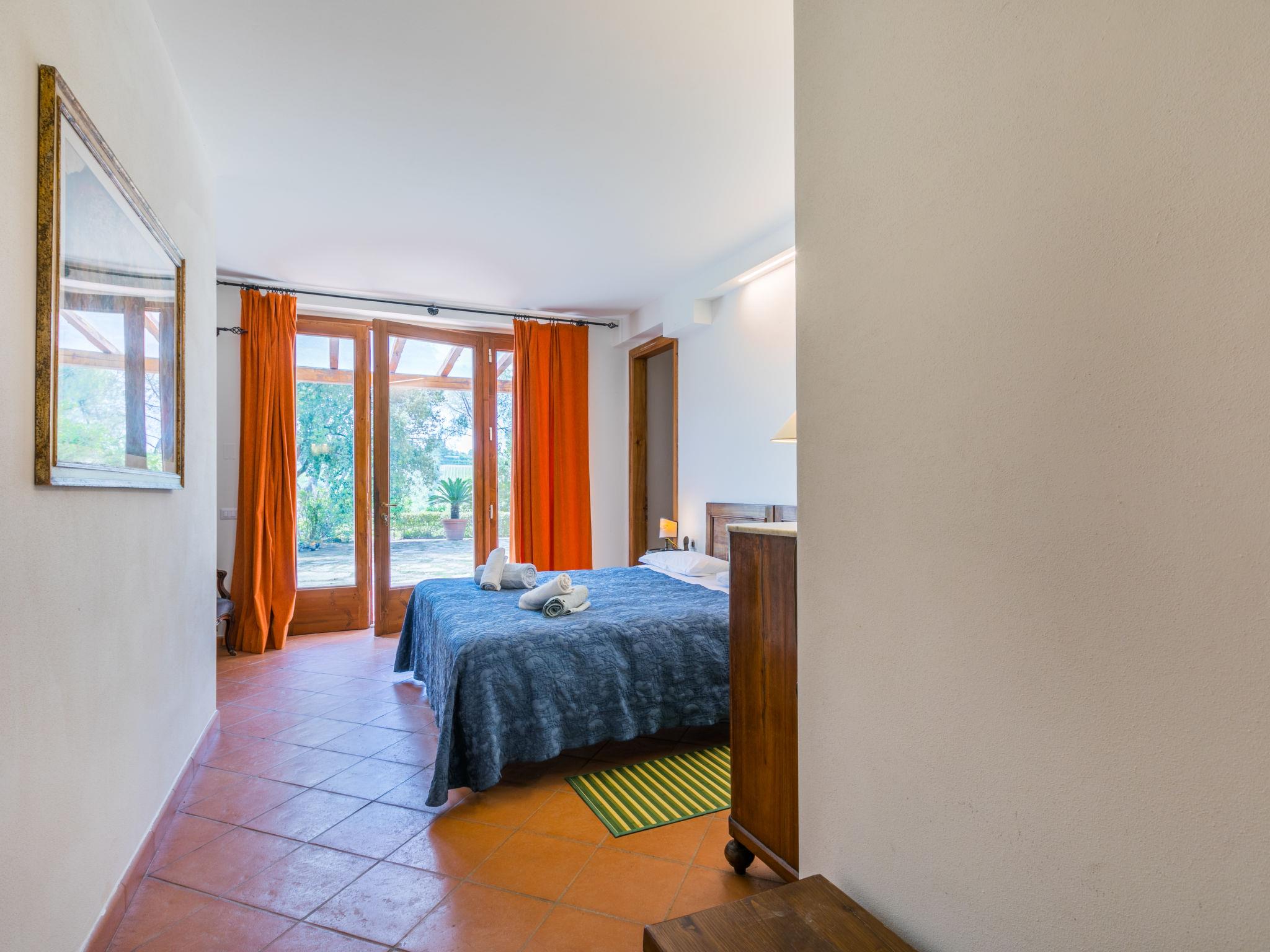 "Policleto", 9-room house 270 m2 on 3 levels. Spacious, partly renovated in 2023, comfortable and cosy furnishings: living/dining room with dining table, satellite TV, wood-burning stove and air conditioning. 2 double bedrooms, each room with shower/bidet/WC and air conditioning. Exit to the garden. 1 double bedroom with shower/bidet/WC and air conditioning. Kitchen (oven, dishwasher, 5 gas rings, toaster, kettle, microwave, freezer, electric coffee machine) with air conditioning. On the lower ground floor: (exterior staircase) living/dining room with kitchen corner. Exit to the garden. 1 double bedroom. Shower/bidet/WC. Upper floor: living/dining room with open-hearth fireplace, satellite TV and air conditioning. Open kitchen (oven, dishwasher, 4 gas rings, toaster). Shower/bidet/WC. 2nd upper floor: 2 double bedrooms, each room with air conditioning. Bath/shower/bidet/WC. Electric heating (extra), air-conditioning. Parquet floors, natural stone floors. Large garden 100 m2. Terrace furniture, barbecue, box-room. Beautiful panoramic view of the countryside. Facilities: washing machine, children's high chair, baby cot for up to 2 year olds. Internet (WiFi, free). Parking at the house. Please note: one double bedroom is outside the apartment. Non-smoking house. Smoke alarm, fire extinguisher. No internal connecting door between the separated properties. IT048001B5KNPC4G7Y