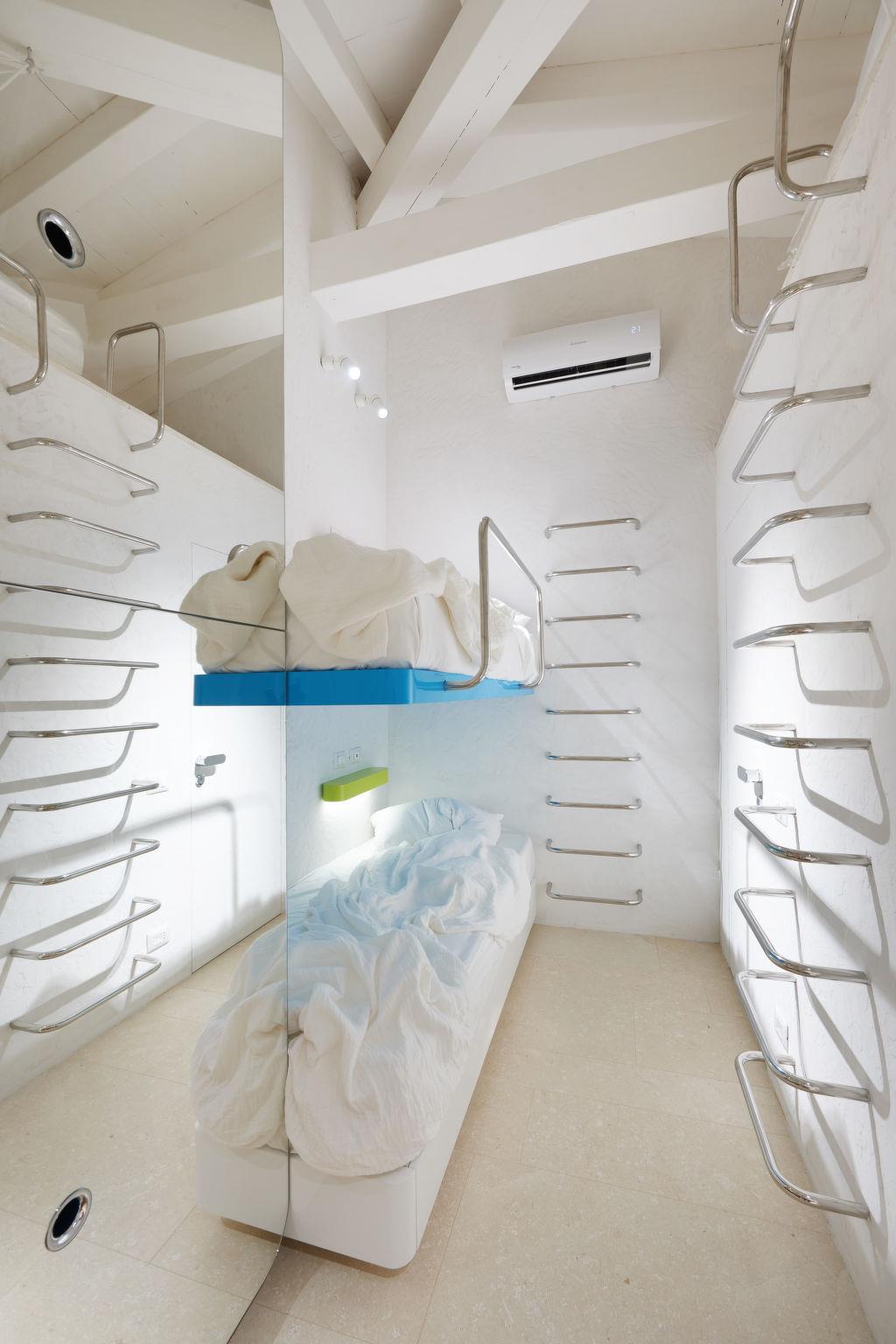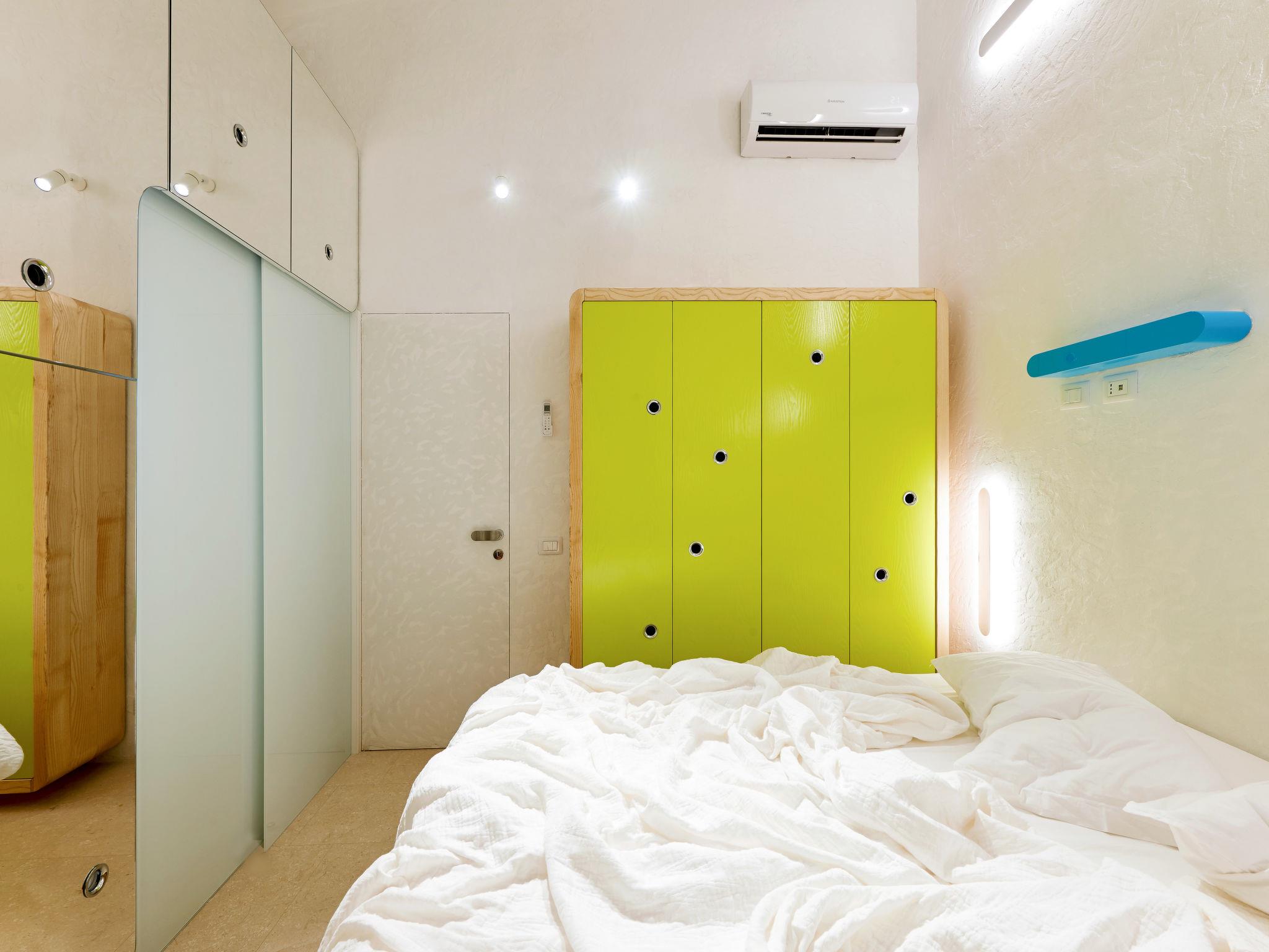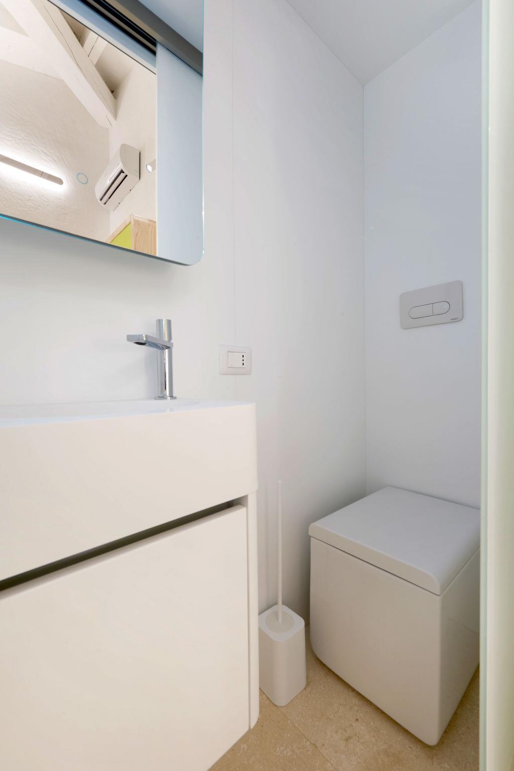 "House Boat Large", 4-room terraced house 75 m2, on the ground floor. Bright, very modern and stylish furnishings: living/dining room with 2 sofabeds, dining table and satellite TV. Exit to the terrace. 1 double bedroom with sliding door with hand-basin and separate WC. Exit to the terrace. 1 small room with rooflight with 1 x 2 bunk beds. Living/sleeping room with 1 double sofabed, dining table, kitchen corner and satellite TV. Exit to the terrace. Open kitchen (oven, dishwasher, 4 induction hot plates, toaster, freezer). 2 showers/WC. Electric heating, air-conditioning. Terrace partly roofed, garden, lawn. Terrace furniture, barbecue (portable). Facilities: washing machine, dryer. Parking (2 cars). Please note: non-smokers only. IT090092C2000T2020