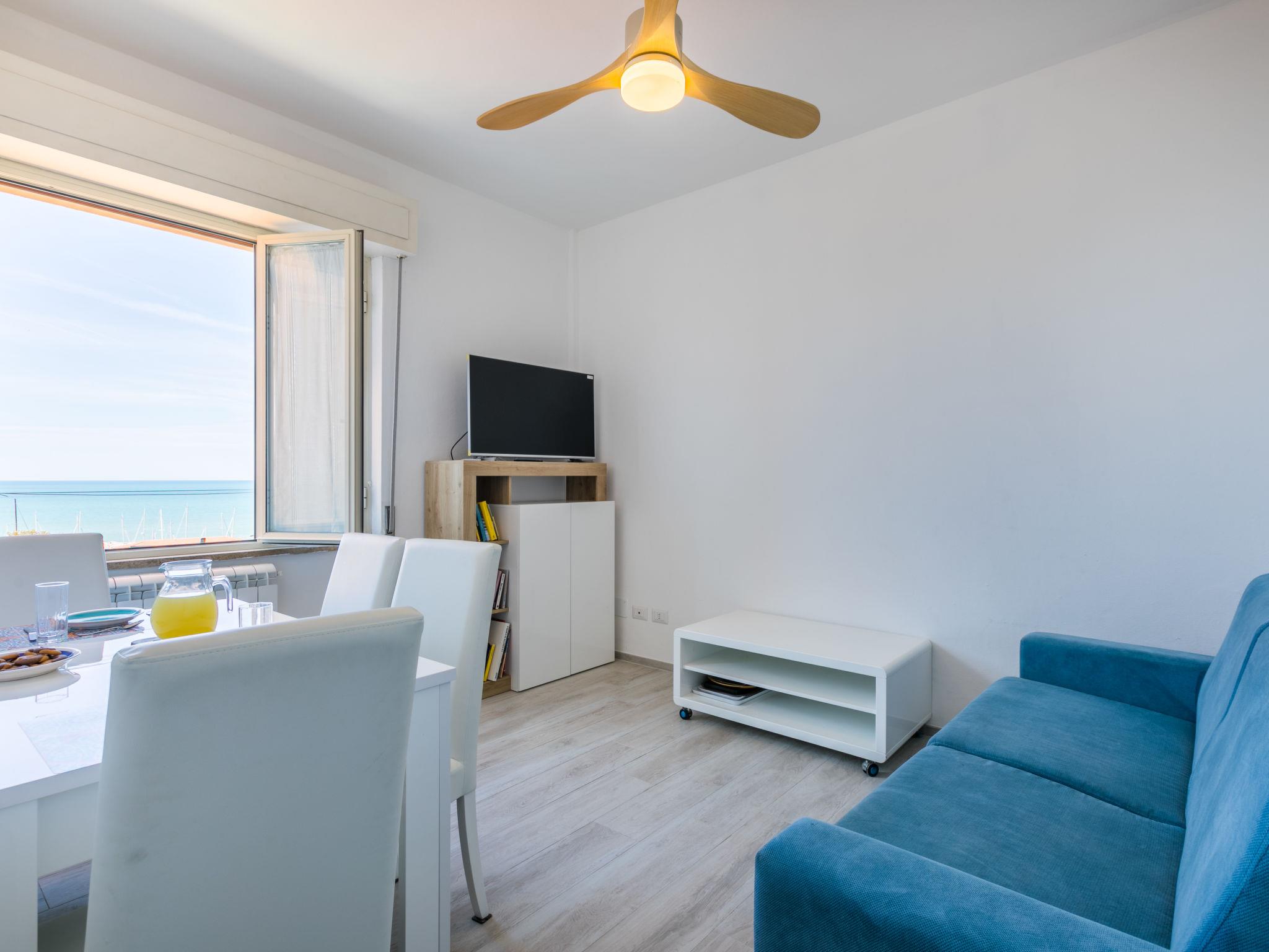 "Franca", 2-room apartment 50 m2 on 5th floor. Bright, renovated in 2023, beautiful and modern furnishings: living/sleeping room with 1 double sofabed, dining table and digital TV. 1 double bedroom with 1 double bed and fan. Kitchenette (dishwasher, 2 induction hot plates, toaster, microwave, electric coffee machine). Shower/bidet/WC. Gas heating. Marvellous view of the sea and the resort. Facilities: washing machine, hair dryer. Internet (WiFi, free). Please note: non-smokers only. Maximum 1 small pet/ dog allowed. Fire extinguisher. IT049018C2AXJ5NQJA