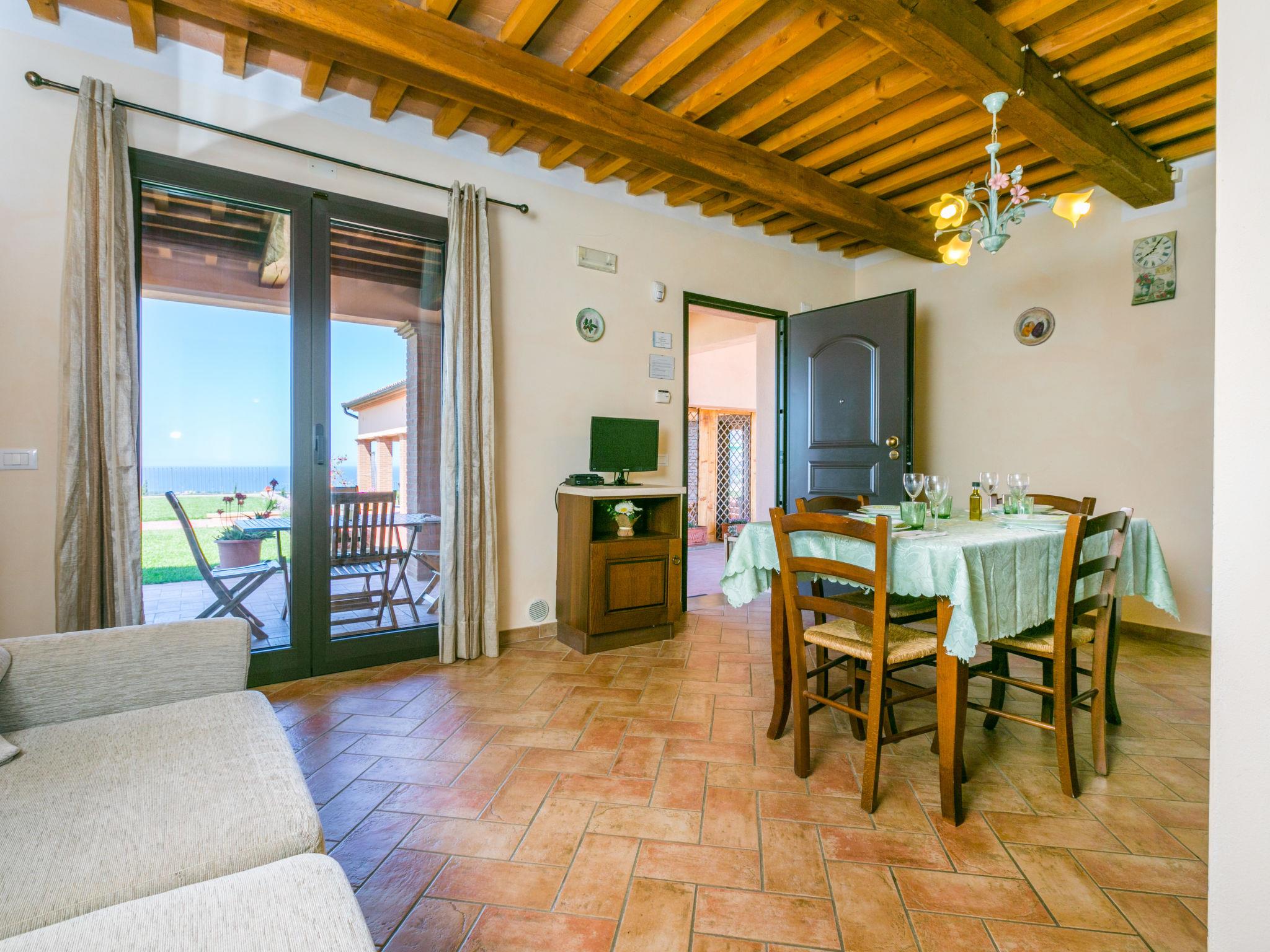 Very beautiful residence "Il Corbezzolo", surrounded by meadows and fields. 6 houses in the residence. 3 km from the centre of San Vincenzo, 60 km from the centre of Livorno, 35 km from the centre of Cecina, in a quiet, elevated position, 3 km from the sea. For shared use: beautiful, well-kept garden (fenced), swimming pool (11 x 8 m, seasonal availability: 22.May. - 27.Sep.). Outdoor shower. In the house: washing machine (extra) (for shared use). Parking on the premises. Shop 3 km, restaurant 100 m, bus stop 400 m, sandy beach 3 km. Marina 3 km. Local sale of farm products. Please note: the owner lives on the same property.