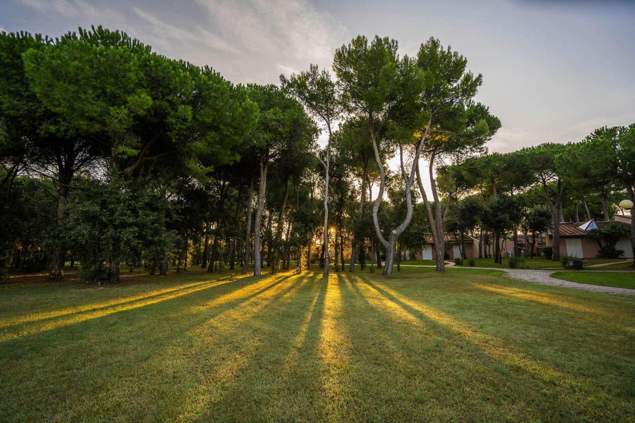 Familievennlig feriekompleks rett ved den vakre private sandstranden i byen San Vincenzo. Midt i en velholdt naturpark med 3 store svømmebassenger ligger bungalowene og boligen spredt over et romslig område under høye holmeeiker og skyggefulle furutrær. Via en undergang innenfor boligen, nær svømmebassengene, kommer du til sjøen etter ca. 250 til 300 meter. Her har du et bredt utvalg av restauranter, pizzeriaer og barer og et omfattende utvalg av sport-, spill- og velværemuligheter. På stranden får du parasoller og solsenger (gratis). I sommermånedene tilbyr underholdningsprogrammer, fitness og vannsport. for variasjon. Detaljer: Forbruksbaserte energikostnader, sengetøy, håndklær, sluttrengjøring Strandservice (2 solsenger, 1 parasoll) 1 x gratis tilgang til treningsstudioet per dag Aktiviteter i nærheten: Kort tid etter San Vincenzo strekker de lange furuskogene seg langs stranden, typisk for området. Varemerker er de populære lange sandstrendene for familier og de mange små vikene. Et spesielt høydepunkt for naturelskere er den vakre bukten "Golfo di Baratti". San Vincenzo er en livlig by om sommeren med gode sjømatrestauranter og fotgjengerpromenader. I det nærliggende kuperte området finner du mange fortryllende middelalderlandsbyer, f.eks. B. Suvereto. Ta en avstikker til en av Middelhavets mest sjarmerende øyperler: Elba, 147 kilometer kystlinje med eviggrønn vegetasjon, mange viker og øyas hovedstad Portoferraio med den gamle havnen (18 km til Piombino fergehavn og fergeovergang ca. 1 timer) mobilitet: Ikke egnet for bevegelseshemmede