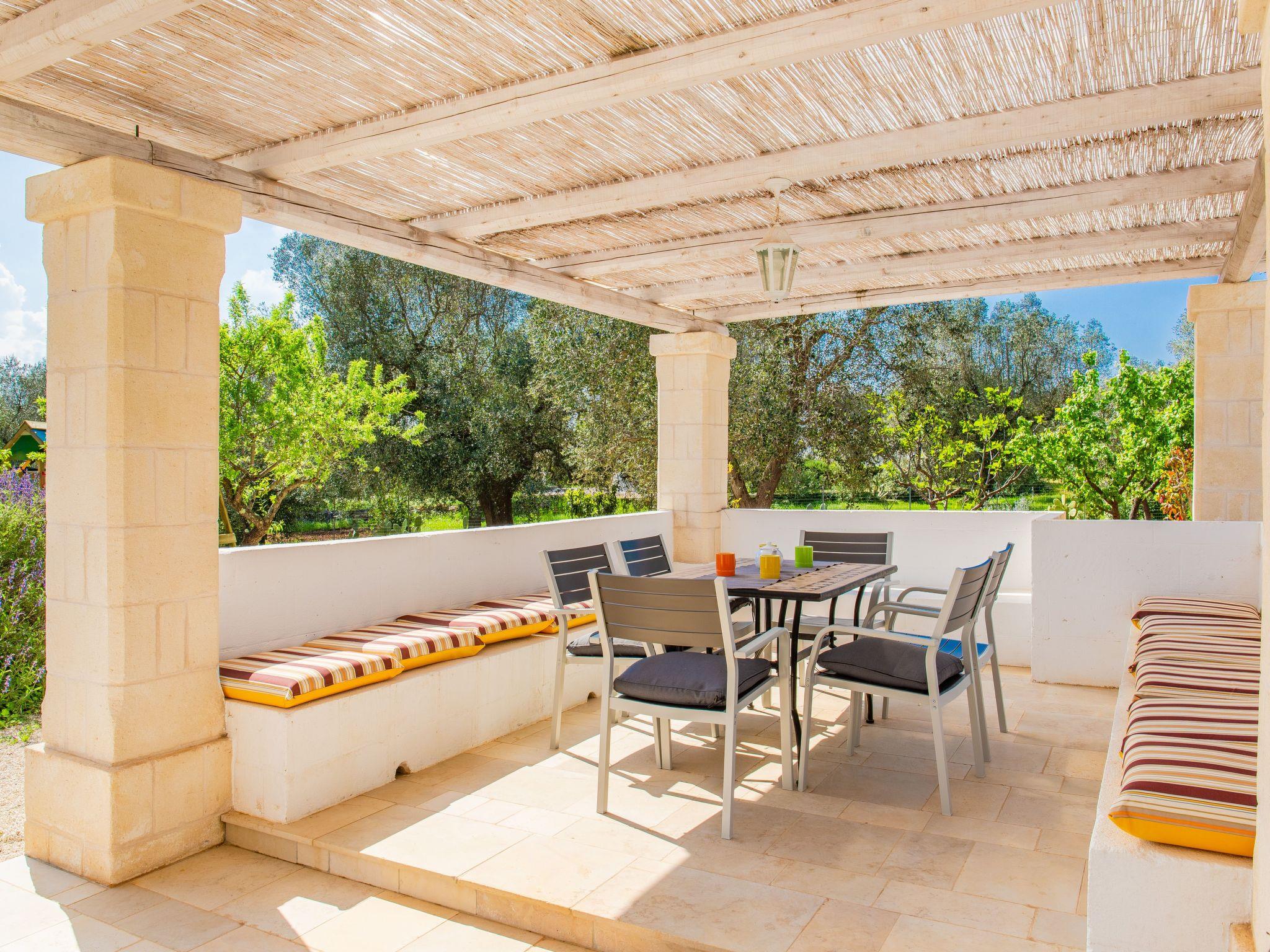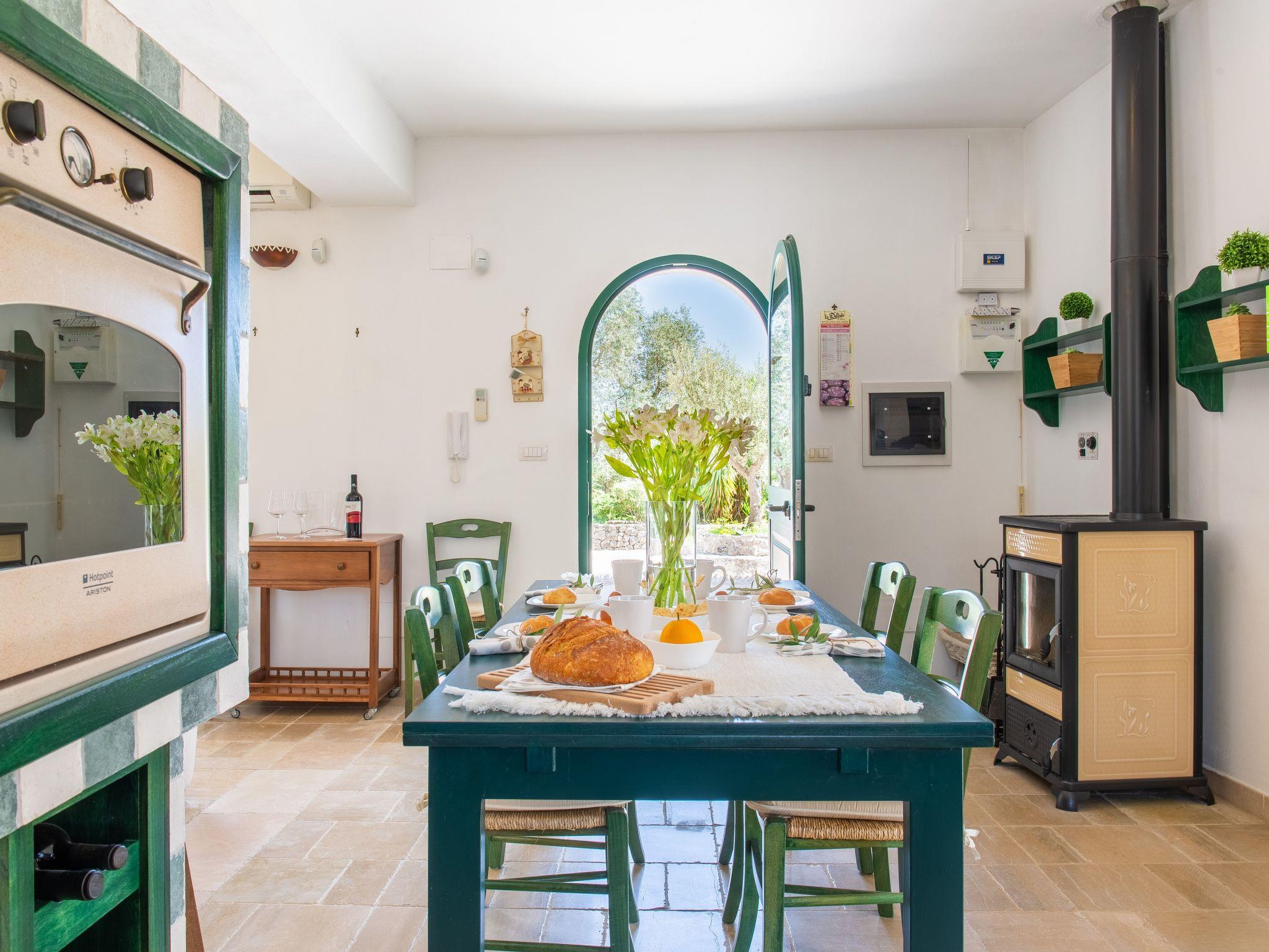 the main building offers a fully equipped kitchen, a living room, a double bedroom and a bathroom with shower. With external access to the main structure and attached to it you enter another structure with three bedrooms and two bathrooms with shower, in particular here there is a double bedroom with en-suite bathroom, a double bedroom, a bedroom with two individual beds. With external access from the main structure and attached to it there is a trullo with two single beds (double use) and a bathroom with shower. For outdoor dining there are three verandas. For the children there are the springs, the swing and the slide. There are five air conditioners and the heating system. The pool is 10 x 4 m large.