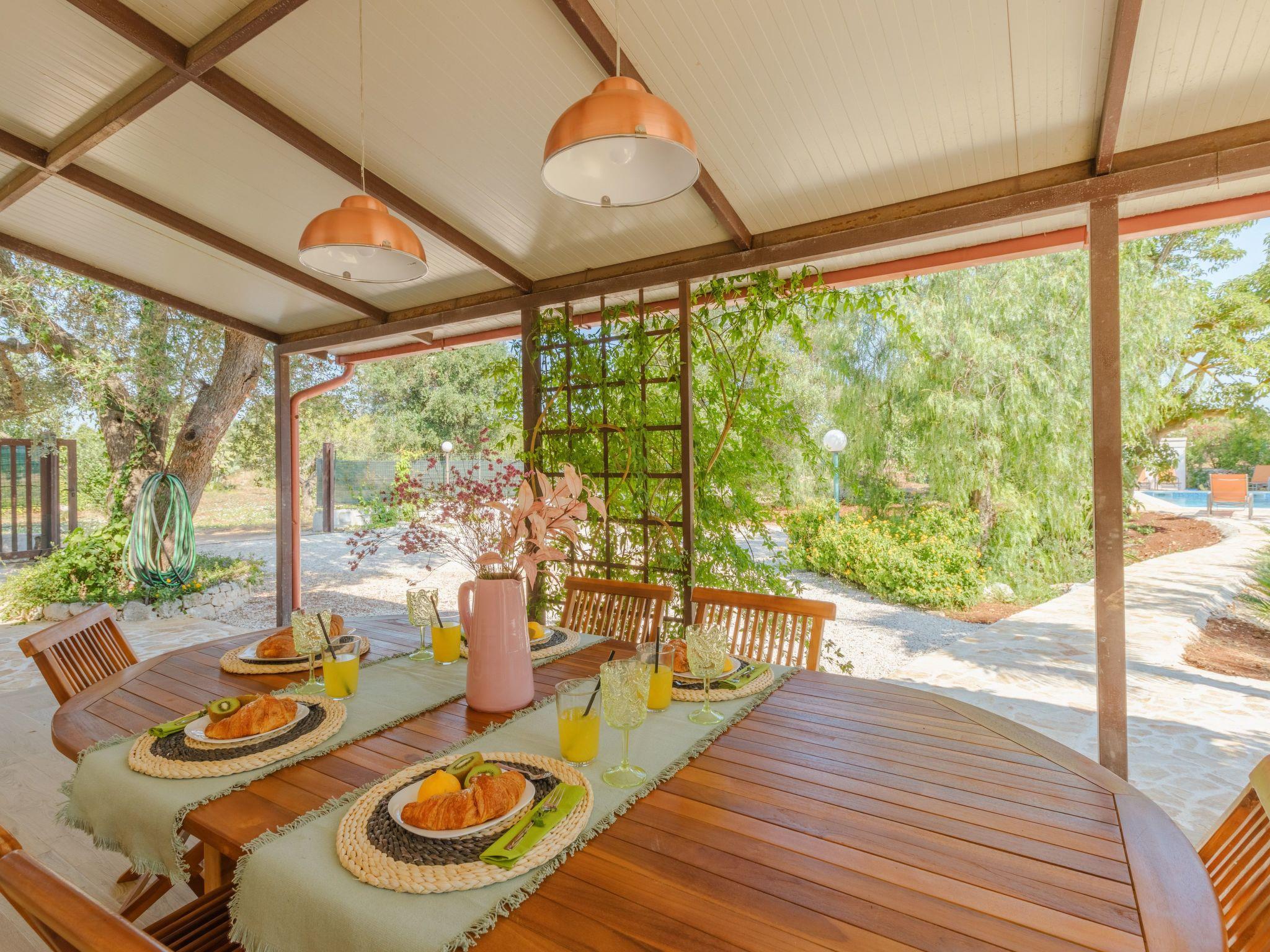Casa Tina with swimming pool offers an exclusive view of the Apulian countryside. It can comfortably accommodate a family with children or two couples. It offers all the comforts for a relaxing holiday. You can cool off in the pool, relax on the deckchairs, read your favourite book on the veranda. You are inside a villa consisting of three independent houses with private and reserved outdoor spaces. The first sandy beaches are a seven-minute drive away, "the Torre Guaceto Nature Reserve". A wide range of masserie for regional culinary experiences is easily accessible within a few minutes' drive near Ostuni and Carovigno.