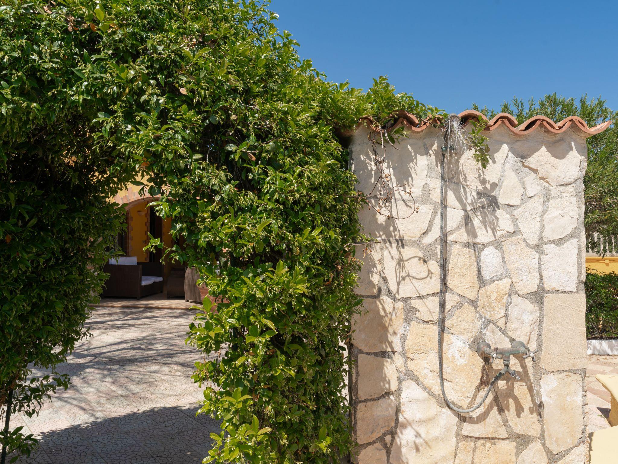 the outdoor dining area offers a charming view of the Apulian countryside trees and flowers;