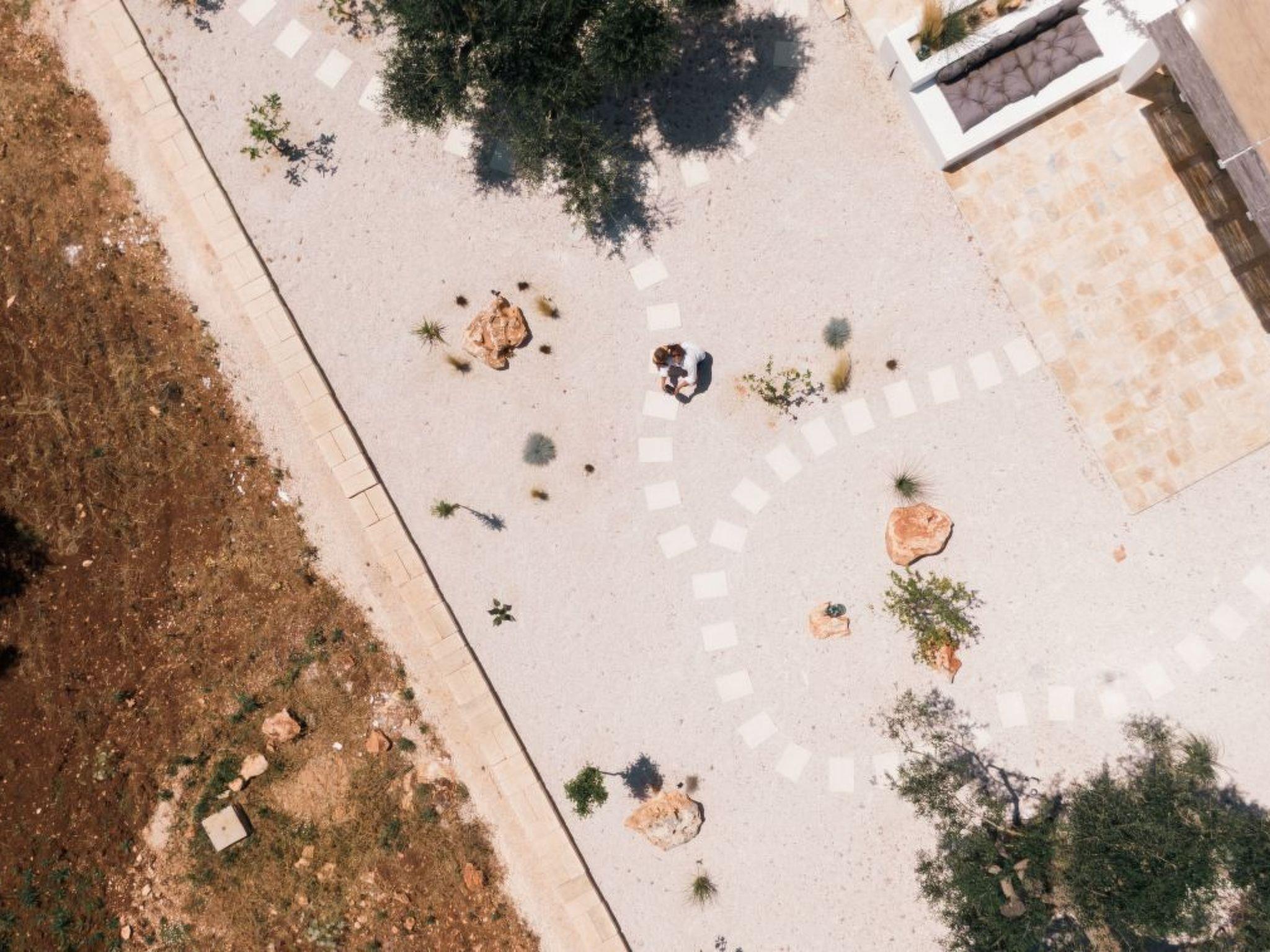 Outdoors you will be greeted by centuries-old olive groves surrounding the beautiful infinity pool. The outdoor space invites you to enjoy al fresco dining illuminated by the magic of soft, warm lighting surrounding the garden and pool.
