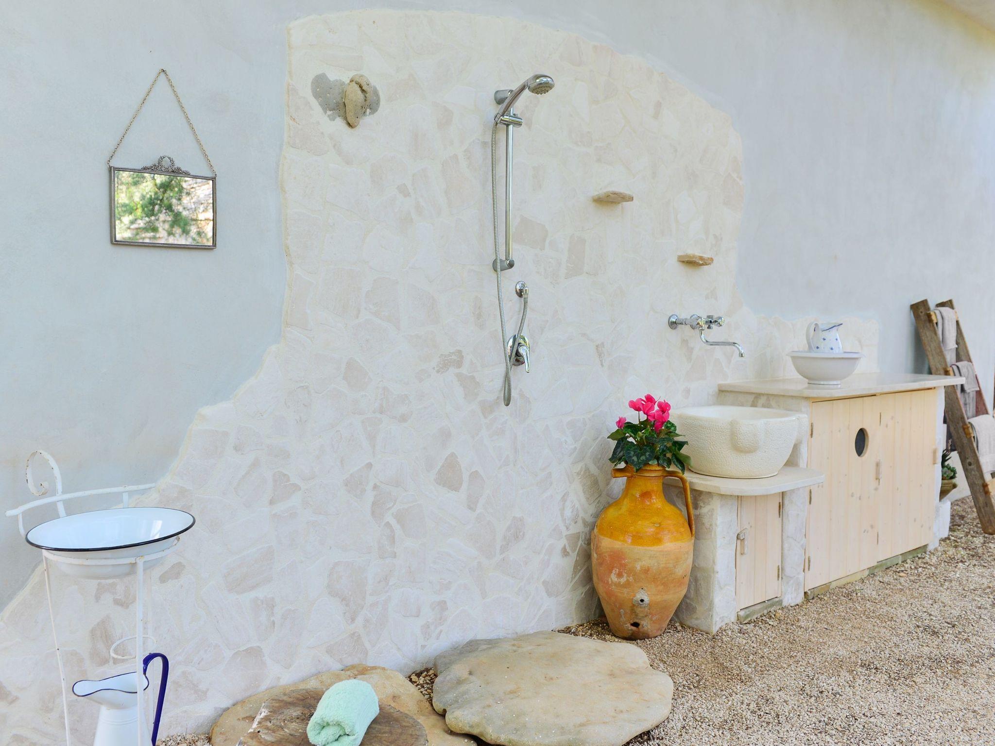 Well furnished trulli for rent in Puglia near the sea. Enjoy 4 beds in 2 romantic ''alcove '', 2 patios overlooking olive trees and a convenient outdoor shower after the beach. It is located in San Michele Salentino within 15 minutes from the beaches of the Oasis of Torre Guaceto.