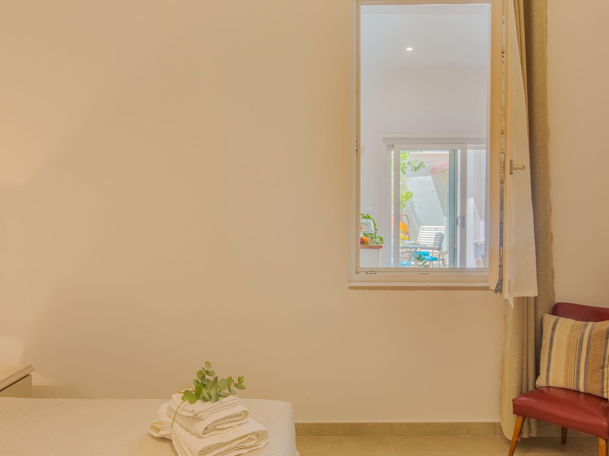 n.1 double bedroom, n.1 bedroom with two single beds that can be joined together and a window overlooking the living room, n.1 living room with kitchenette and double sofa bed, n.1 bathroom with bathtub, n.1 bathroom with shower, n.1 entrance hall. A cot is offered on request.