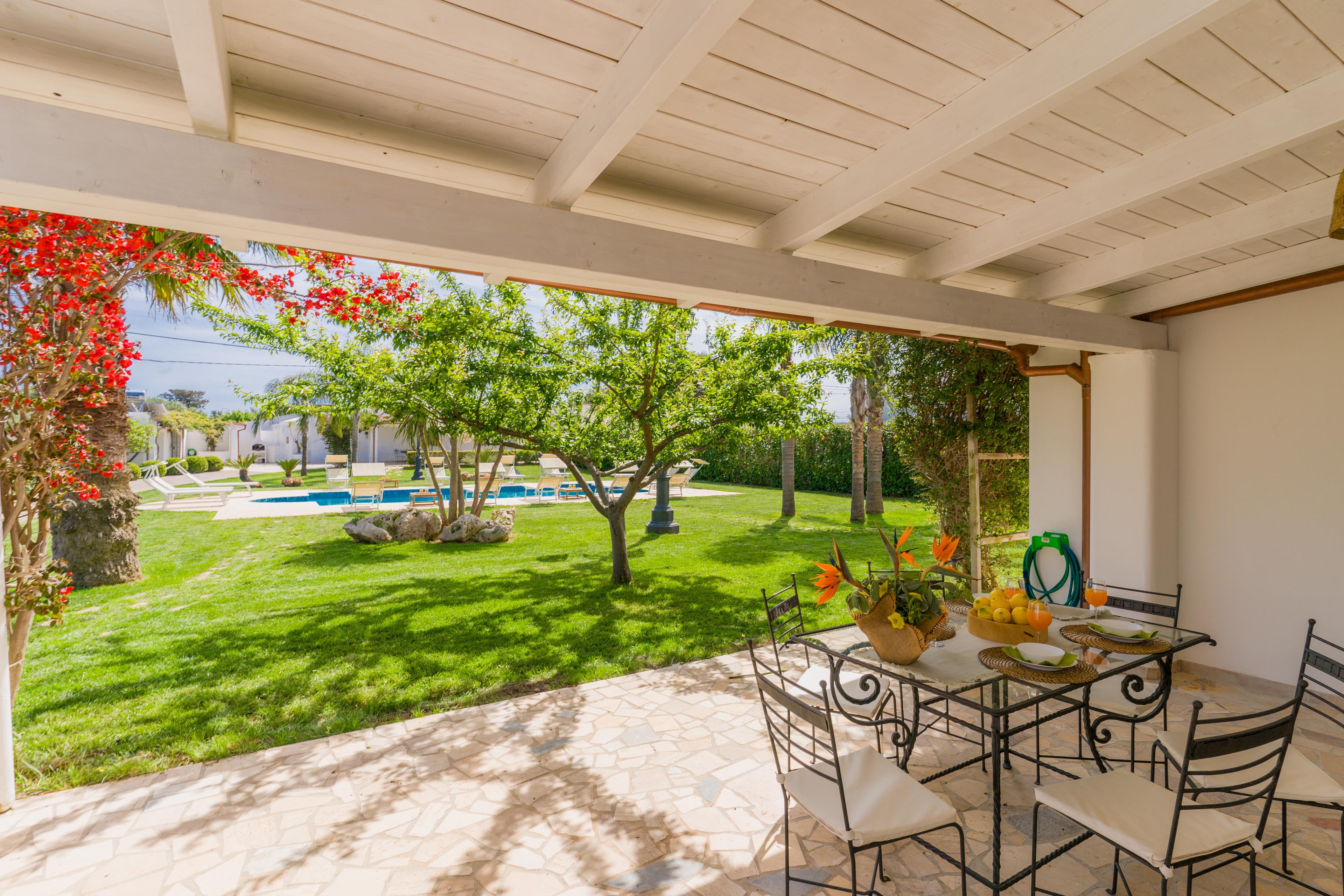 Es befindet sich in einer Gruppe von drei Häusern, die den Pool und den Garten teilen.