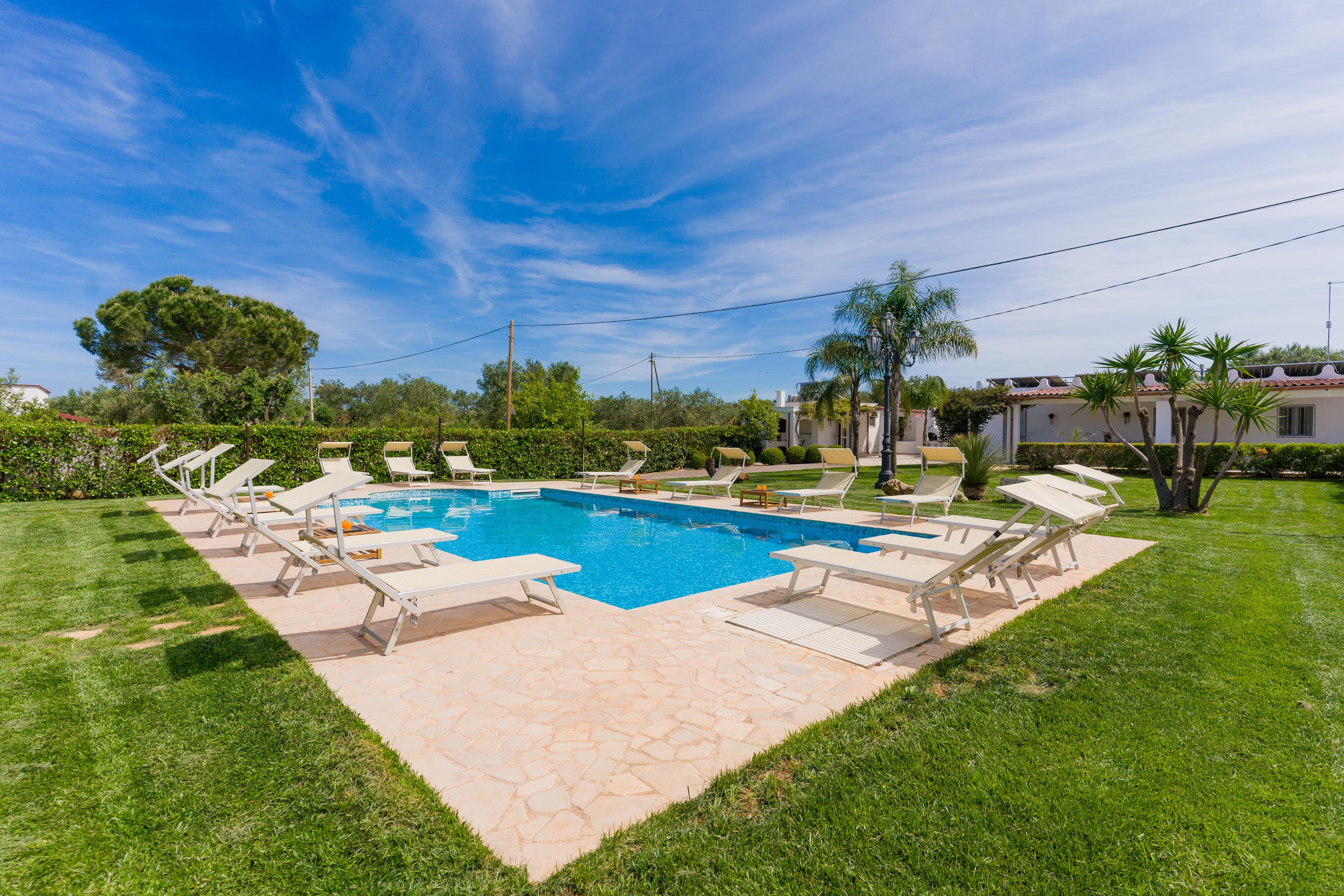 Sie befinden sich in einer modernen Villa mit Pool für fünf Personen in San Vito dei Normanni. Eine fantastische Lage: in wenigen Minuten mit dem Auto die Strände des Torre Guaceto Reservats und viele berühmte Sehenswürdigkeiten von Apulien wie Ostuni. Teilen Sie den Pool mit zwei anderen Häusern, haben Sie einen wunderschönen Garten und viele Schatten- und Sonnenbereiche. 1500 m Geschäfte, Bars, Markt. Eine große Auswahl an ausgezeichneten regionalen Gasthäusern ist in wenigen Metern leicht zu erreichen.