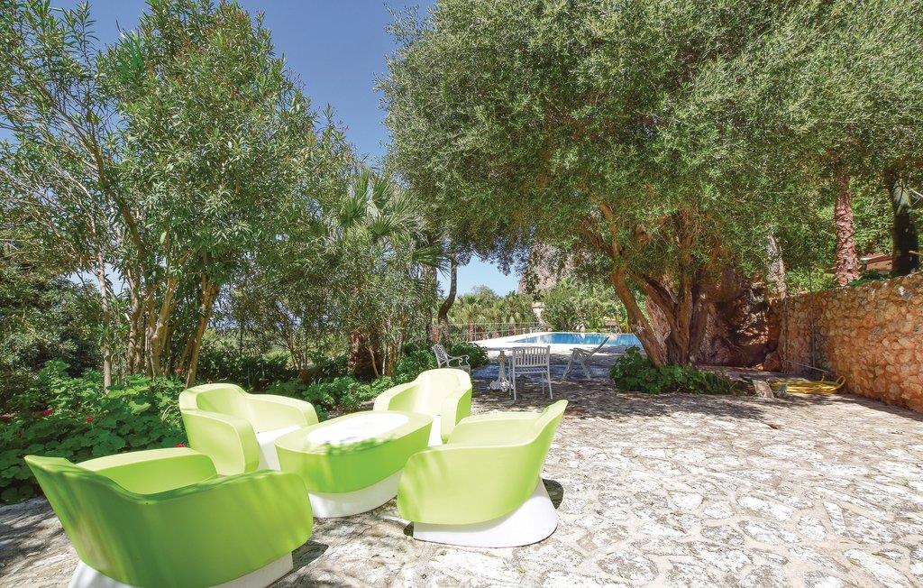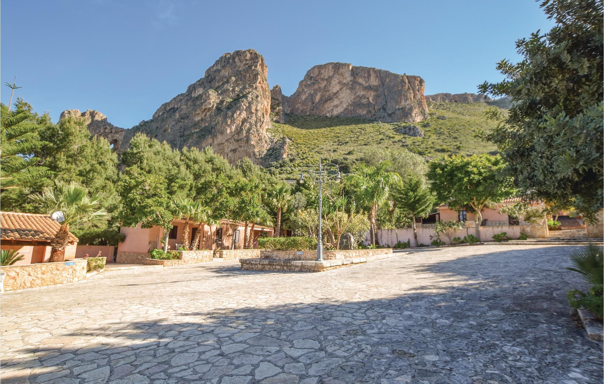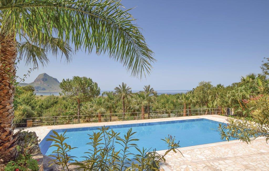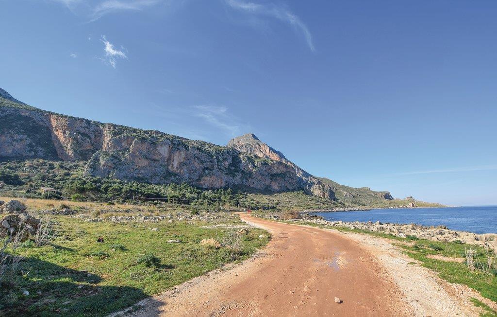 Frittliggende feriehus omgitt av middelhavsvegetasjon, del av en bolig med svømmebasseng og uteområde for felles bruk med andre gjester (se også ISS973, ISS001, IST012), bare noen få kilometer fra den vakre badebyen San Vito Lo Capo i provinsen Trapani, kjent for sin hvite sandstrand og det klare blå havet, med tjenester og butikker av alle slag. I umiddelbar nærhet ligger naturreservatet Monte Cofano i Makari. San Vito Lo Capo er et av de største klatreområdene i Sør-Italia. De store veggene i Monte Monaco og Monte Cofano har alltid tiltrukket klatrere fra hele Europa, takket være deres vakre klipper utstyrt for sportsklatring. I San Vito lo Capo arrangeres det ulike arrangementer i løpet av året, og i slutten av september arrangeres den berømte "Cous Cous Fest" - den internasjonale festivalen for middelhavskultur og gastronomi. 39 km naturreservatet Lo Zingaro, et populært dykkerparadis. Stor utstyrt veranda med utsikt over havet. Bassenget ligger ca 150 m fra huset, tilgjengelig via en natursti hvor du kan beundre hester i naturen. Hesteridning tilgjengelig i området. Internett er tilgjengelig i fellesområdene i boligen. Det åpne kjøkkenet ligger utenfor på verandaen.