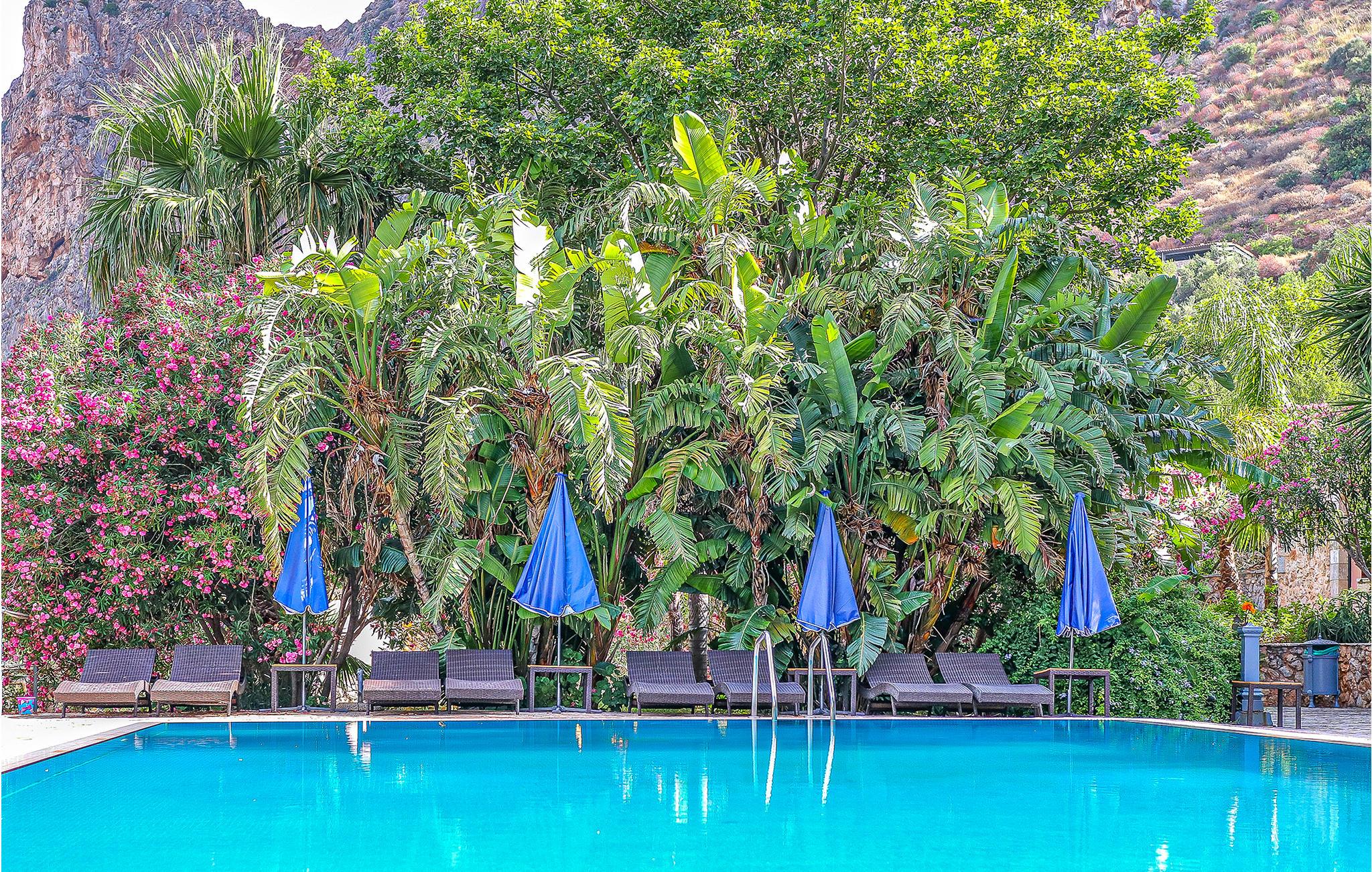 Som en del av et lite leilighetsensemble vil du flytte inn i en ekte ferieperle med denne leiligheten. Du vil bli vunnet over fra starten av gårdsplassen med felles svømmebasseng, fantastisk hage og rustikk sjarm. Her vil du bo i komfortable, rolige omgivelser i en ekte oase av velvære.