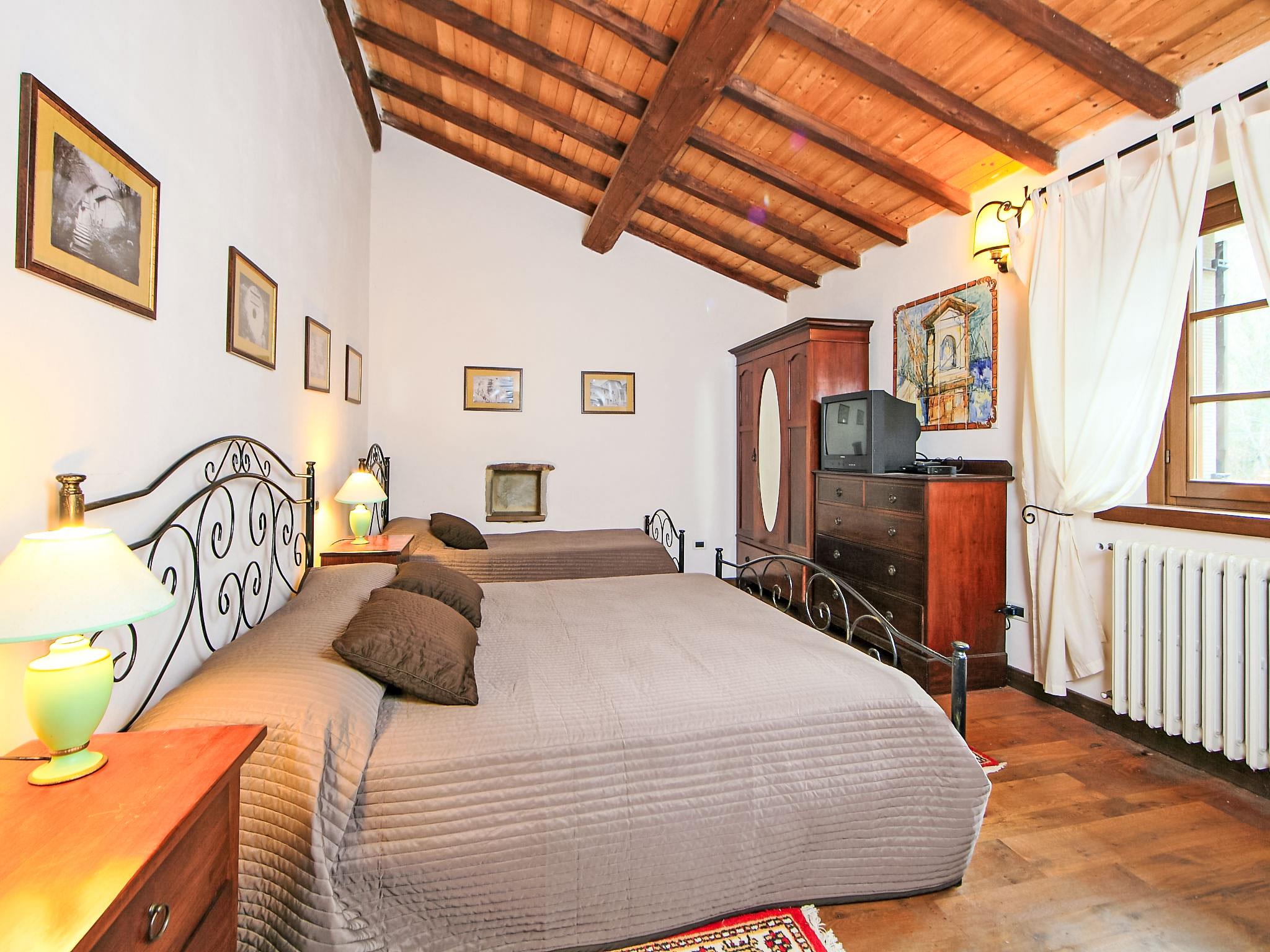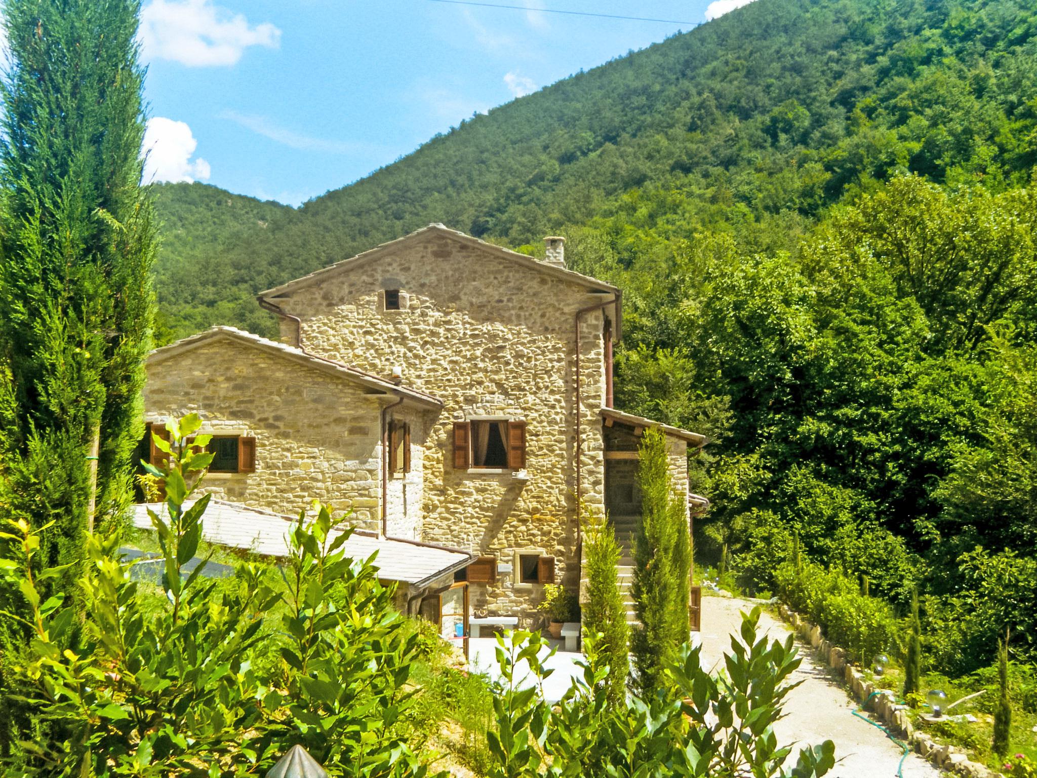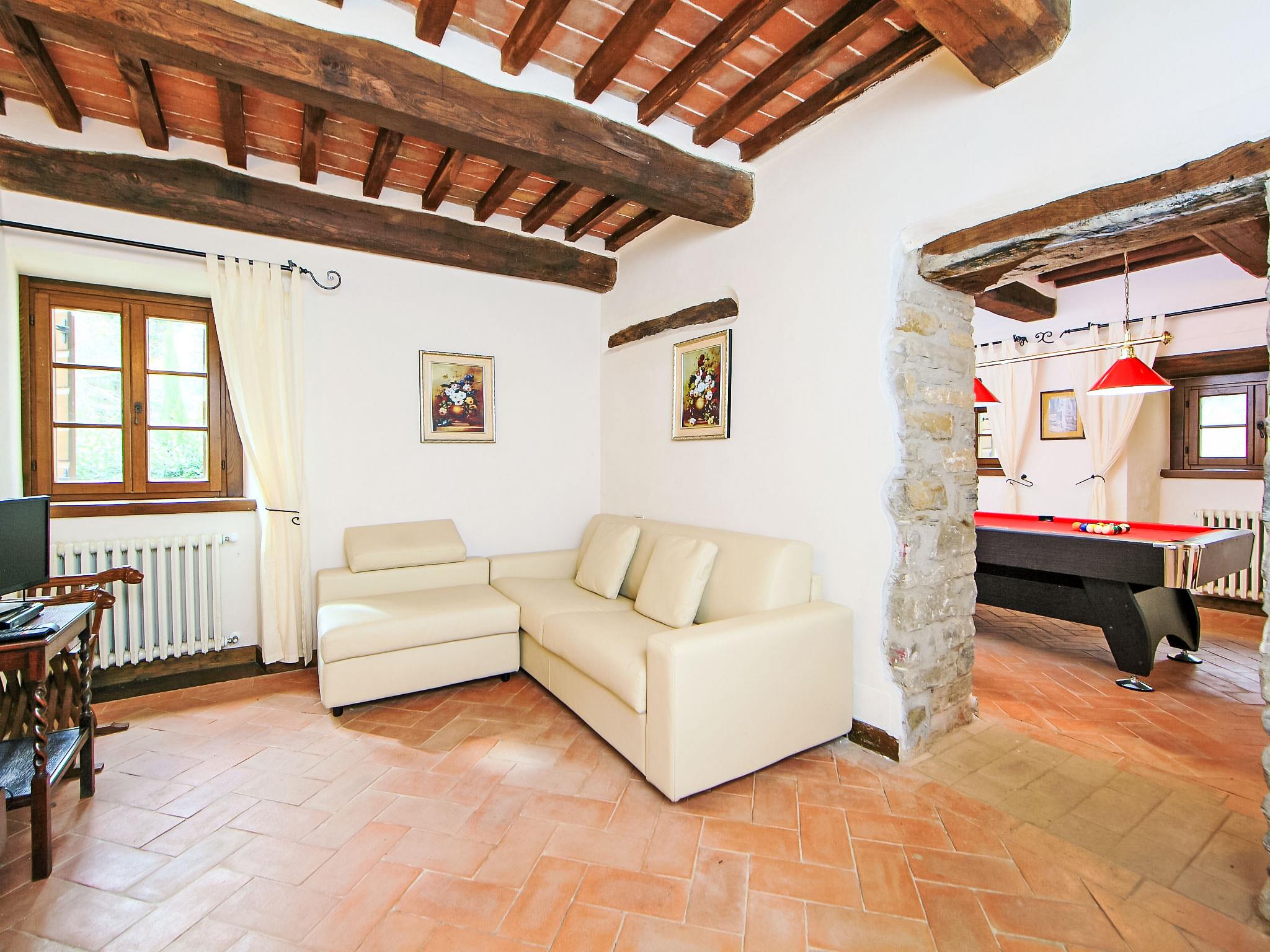 Country house "La Valchiera", renovated, surrounded by trees. 5 km from the centre of Sansepolcro, in a quiet, sunny, elevated position, 10 m from the river. Private: property 20 ha, terraced garden, natural pond, swimming pool (10 x 5 m, depth 100 - 130 cm, seasonal availability: 13.May. - 06.Oct.). Hot tub, patio, garden furniture, barbecue, pool maintenance by the owner/gardener. In the house: internet access, infrared sauna, relaxation room, spa area, washing machine, tumble dryer. Cook on request. Parking on the premises. Grocery 4 km, supermarket 4 km, restaurant 2 km, bar 2 km, bus stop 50 m. Riding stable 2 km. Nearby attractions: Anghiari 15 km, Arezzo 40 km.