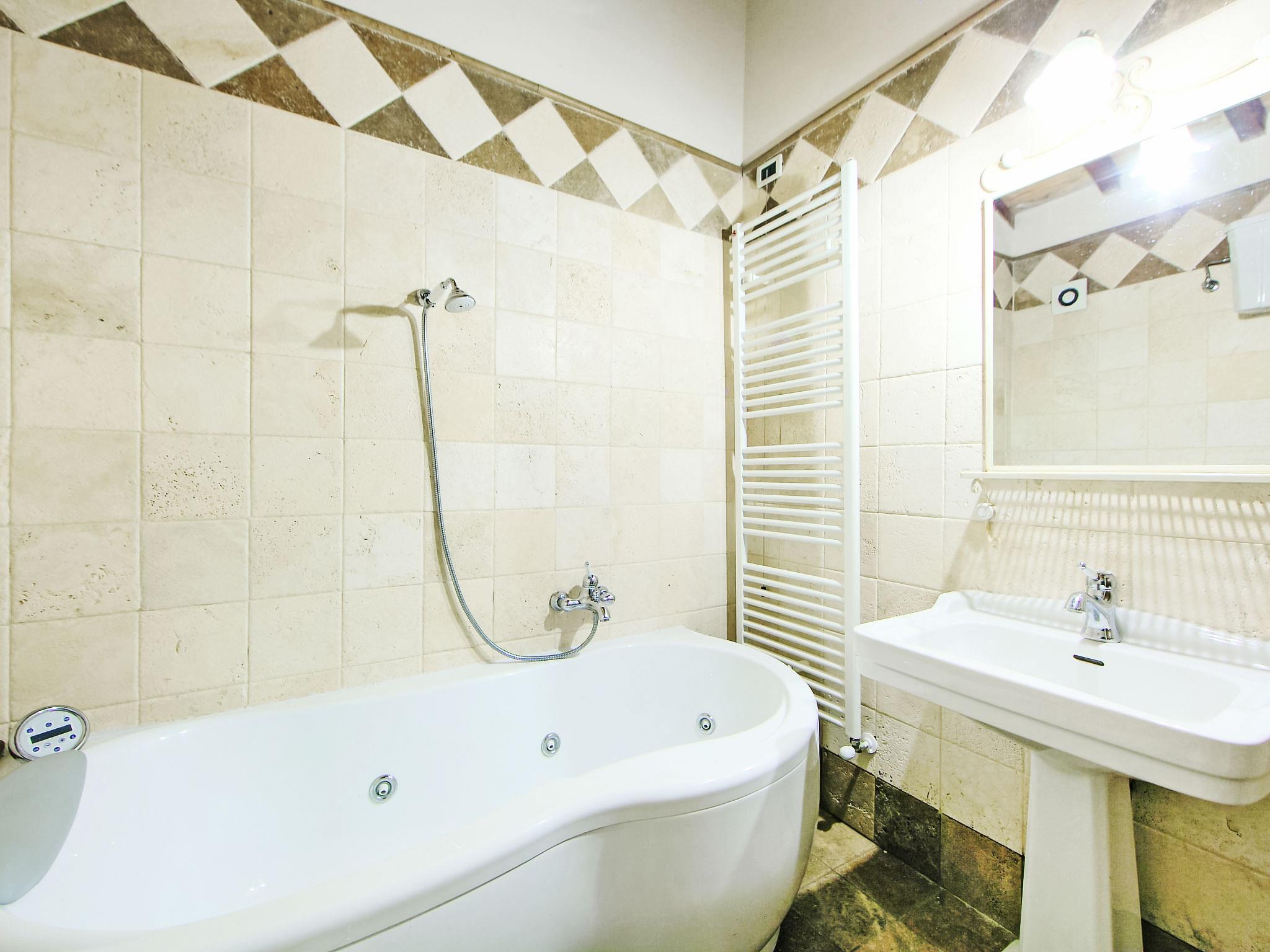 11-room house 350 m2 on 3 levels. Spacious, fully renovated, beautiful and wooden furniture furnishings: living room with 1 double sofabed and satellite TV (flat screen). Billiard room. Large kitchen (4 hot plates, oven, dishwasher, freezer) with dining table. Exit to the garden. 2 showers/bidet/WC. Upper floor: open living room with 1 sofabed and kitchen corner. 2 rooms, each room with 1 bed and 1 double bed. 1 double bedroom with bath/bidet/WC, hydro massage bath and TV (flat screen). Exit to the garden. Open living room. Open kitchen (4 hot plates, oven) with dining table. Exit to the garden, to the loggia. Bath/bidet/WC, hydro massage bath. 2nd upper floor: open kitchen (4 hot plates, oven) with dining table. Exit to the garden. Bathroom. 3nd upper floor: lounge with 1 double sofabed, TV, flat screen and wood-burning stove. 1 double bedroom with satellite TV (flat screen). Bath/bidet/WC, hydro massage bath. Parquet floors. Comfortable furnishings in the country house style. Large terrace, patio. Terrace furniture, sitting area. View of the river. Facilities: washing machine, dryer, sauna. Internet (WiFi, free). Maximum 2 pets/ dogs allowed. The house consists of few levels. Please note that the ground floor is connected only by an external staircase to the upper floor. Whirpool heating extra cost. When there are less than the maximum number of guests staying at the property, not all of the bedrooms will be available for use. IT051034C2D5ZNIQ8R