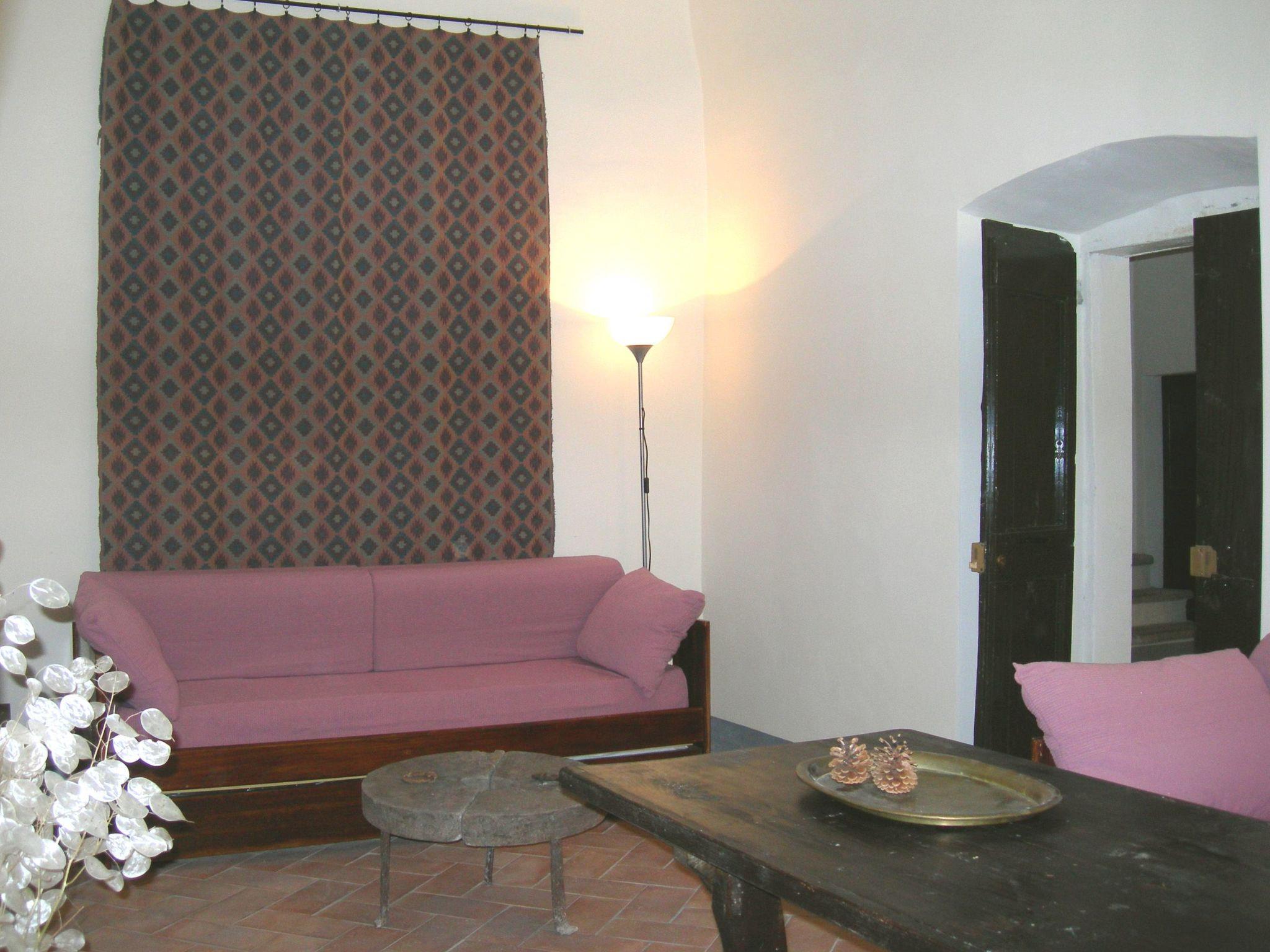 Palazzo Bufalini - The part destined for hospitality consists of a large flat, emphasising its ancient destination. The flat, which is located on the ground floor of the building, has been restored in keeping with tradition, but with modern criteria of hospitality and comfort, and is furnished with original period furniture and tools. The flat can accommodate six people, and comprises two bedrooms (one with a double bed, the other with two single beds, or one double bed), a living room with two comfortable sofas, a living room with kitchenette, and two bathrooms. TV system, Wi-fi Internet, washing machine, oven, hoover. The flat is provided with bed linen, towels and table linen.