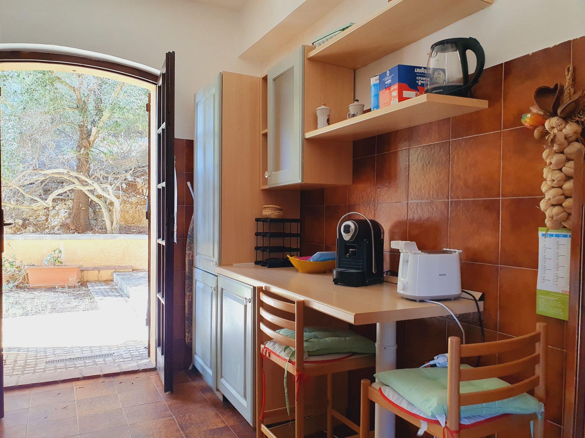 The interior of the villa is designed for maximum comfort. On the first floor, you will find a spacious and cosy living area where you can relax, equipped with all amenities including a practical gas cooker and a romantic fireplace, ideal for preparing delicious meals and enjoying warm and cosy evenings. The presence of a washing machine for exclusive use also makes the villa functional for longer stays. Thanks to the extensive use of windows, the interior spaces are bathed in natural light that accentuates the feeling of spaciousness and freedom.