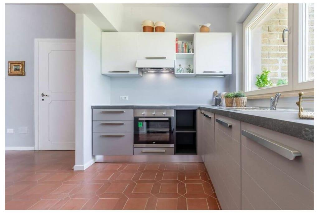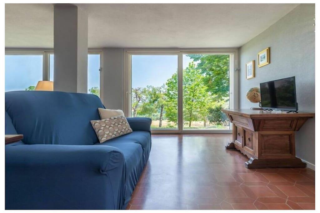 Sie bietet Platz für bis zu 14 Personen, hat 5 Schlafzimmer und 3 Badezimmer. Die Villa degli Archi liegt nur wenige Kilometer von Sant'Elpidio a Mare und den Badeorten der Küste der Marken entfernt. Eingebettet im Grünen, ist das Anwesen von einem eingezäunten Garten mit Grill und Privatparkplatz für 5 Autos umgeben. Im Garten befindet sich ein hölzerner Pavillon mit Klimaanlage und einem Esstisch, ideal für Mahlzeiten im Freien mit Freunden. Im Außenbereich gibt es einige Sitzecken, Tische, Stühle und einen schönen Pool (4 x 8 m, Tiefe 1,20 m), der von Mai bis September geöffnet und mit Liegestühlen ausgestattet ist. Vom Pool aus hat man einen atemberaubenden Blick auf das adriatische Meer und die sanften Hügel der Marken. Die Villa wurde vor kurzem nach Kriterien der ökologischen Nachhaltigkeit renoviert und ist auf einer Ebene im Erdgeschoss untergebracht. Sie kann bis zu 14 Personen beherbergen, hat 5 Schlafzimmer und 3 Badezimmer. Internet Wifi ist inbegriffen. Alle Zimmer sind klimatisiert. Alle Fenster sind mit Moskitonetzen ausgestattet. Haustiere sind erlaubt. Der Eigentümer der Villa wohnt ca. 20 Minuten entfernt und hilft den Gästen gerne, wenn sie während ihres Aufenthalts etwas brauchen. Sie werden von einem großen und hellen, offenen Wohnbereich empfangen, der ausgestattet ist mit: Sofas, Klavier, Esstisch, Kamin, Fernseher, 3 großen französischen Schiebetüren (mit direktem Zugang zum Garten) und einer voll ausgestatteten Küche (mit Backofen, Kühlschrank, Mikrowelle und Geschirrspüler). Das Wohnzimmer hat ein Zwischengeschoss, in dem sich ein Sofa mit Leseecke, einige Sessel und ein Spieltisch befinden. Der Schlafbereich besteht aus 5 geräumigen Schlafzimmern, die wie folgt aufgeteilt sind: 2 Zweibettzimmer; 2 Zweibettzimmer mit je einem Schlafsofa; 1 Vierbettzimmer (ein Doppelbett + 1 Etagenbett) mit eigenem Bad mit Dusche. Es gibt auch 2 weitere Badezimmer mit Dusche.