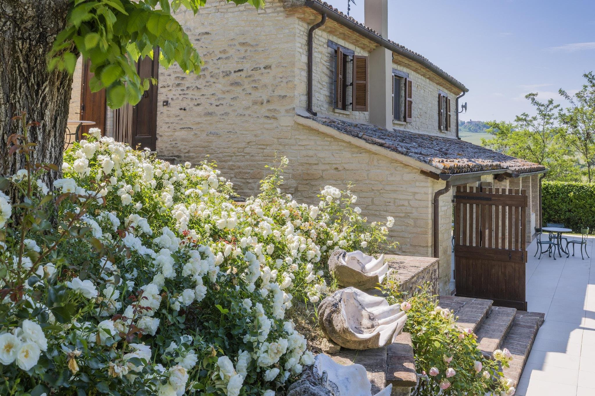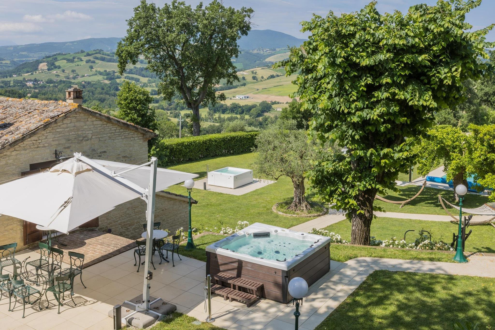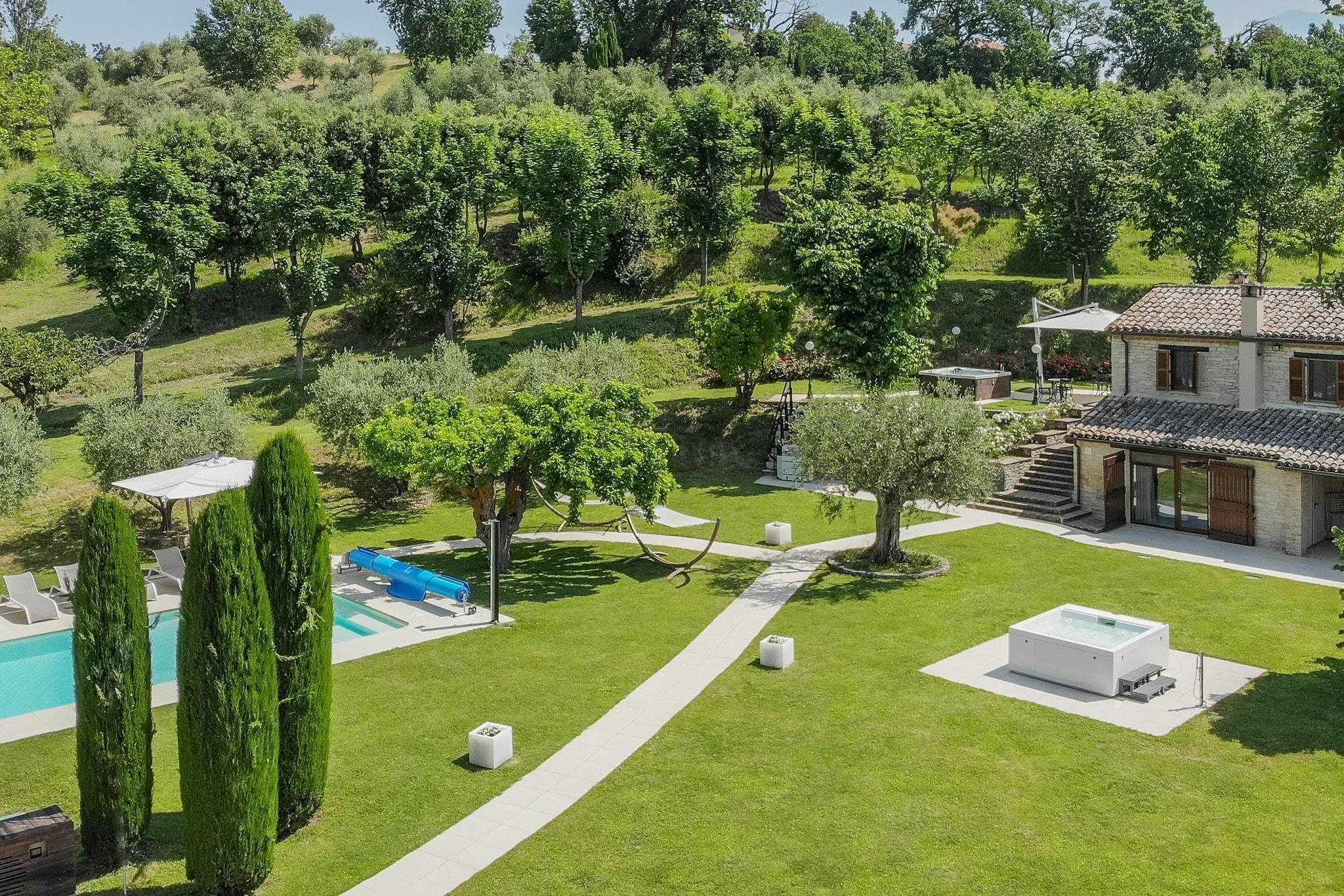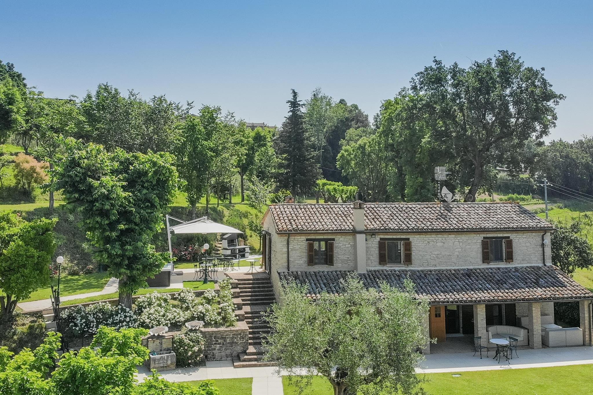 Denne luksuriøse, kjæledyrvennlige villaen i Sant'Ippolito har plass til opptil 11 personer med sin store hage på 1000 m², oppvarmede svømmebasseng (fra april til oktober), to utendørs hydromassasjebadekar og en badstue for to – perfekt for avslapning i stil. Første etasje har tre soverom med private bad og satellitt-TV, mens andre etasje tilbyr et fullt utstyrt kjøkken, en stor stue/spisestue med en dobbel sovesofa og et ekstra dobbelt soverom. Fasiliteter inkluderer klimaanlegg, vaskemaskin, tørketrommel, grill, hengekøye, bordtennis og treningsutstyr. I nærheten kan du utforske Mondavios Rocca Roveresca for å beundre renessansearkitektur, gå langs de panoramiske stiene i Monte Catria eller besøke Balì-museet for interaktive vitenskapelige utstillinger. Naturelskere vil bli fortryllet av de spektakulære fjellformasjonene i Marmitte dei Giganti. Til middag kan du unne deg spesialitetene til La Ritrovata steakhouse – kjøttspesialiteter, nyte de italienske klassikerne på La Piadina eller nyte middelhavsmaten på Cascina delle Rose. Med kultur, natur og mat rett utenfor døren, tilbyr denne villaen et uforglemmelig opphold på landsbygda i Marche. Endringer i ankomst- og avgangstider er mulig på forespørsel. Det er strengt forbudt å organisere fester, mottakelser og lignende i dette huset.