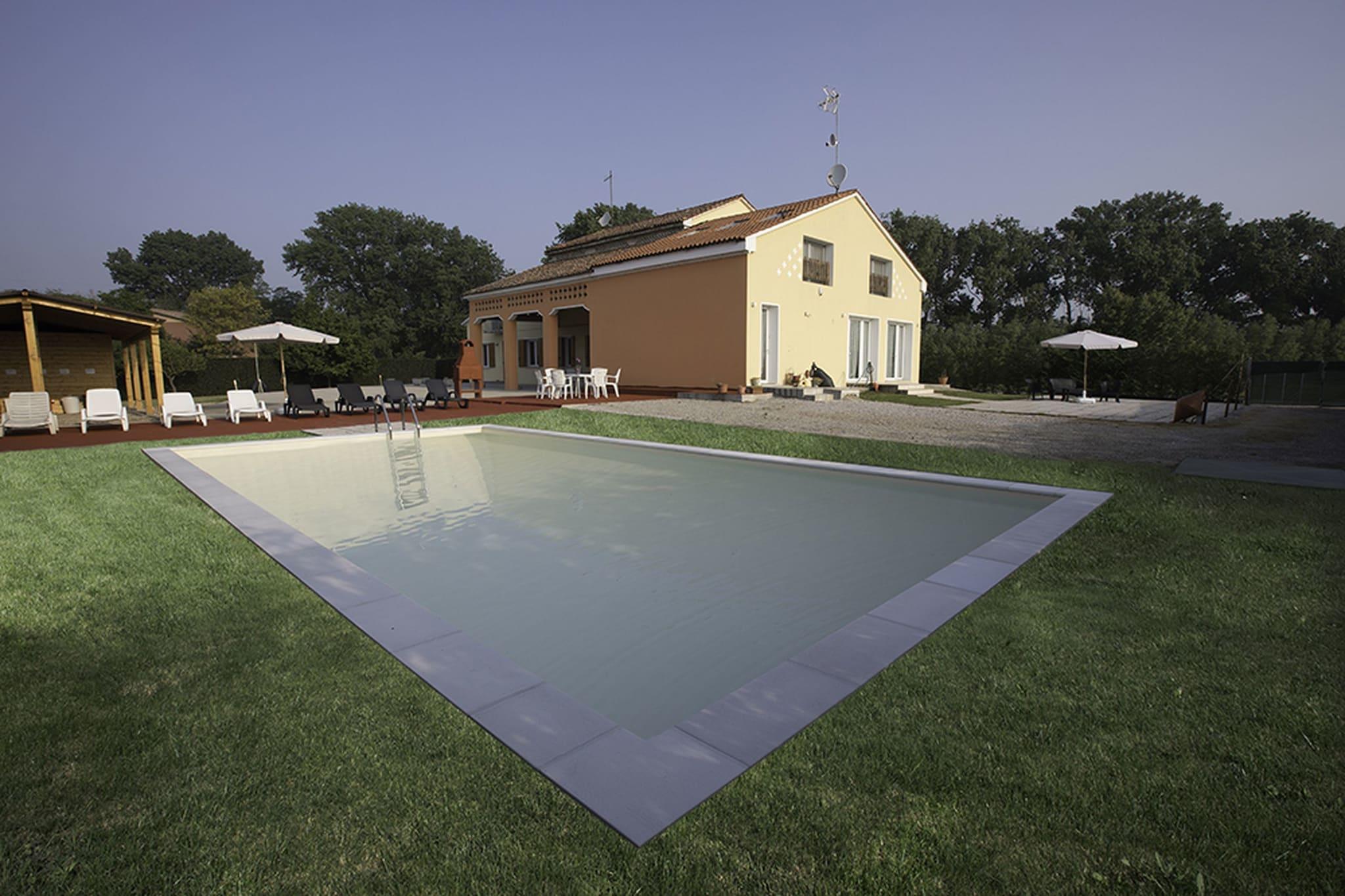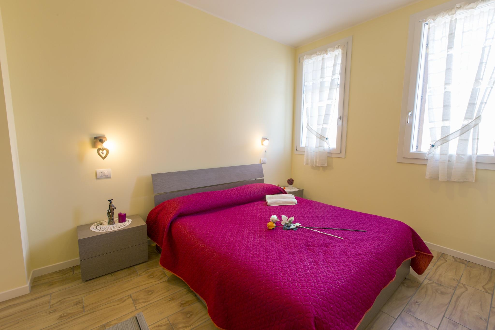 Denne sjarmerende villaen ligger i det rolige venetianske landskapet, og tilbyr et fredelig tilfluktssted med tilgang til et felles svømmebasseng og utendørs badstue – perfekt for avslapning etter en dag med utforsking. Omgitt av en privat hage med solsenger, huskestativ og sklie, er det et ideelt sted for familier. Gjestene kan nyte det felles grillområdet og spise utendørs under lysthuset og nyte den rolige atmosfæren. Ligger i Santa Margherita di Codevigo, en by kjent for sitt historiske vannpumpemuseum, som fremhever maskineriet som ble brukt i landgjenvinning fra 1800-tallet, er dette området en del av den bredere Saccisica-sonen – en unik overgang mellom den venetianske lagunen og gjenvunnet jordbruksland. Denne regionen viser den bemerkelsesverdige innvirkningen menneskelig oppfinnsomhet har på å forme landskapet, noe som gjør det til et fascinerende reisemål for historieentusiaster. Bare en kort kjøretur unna ligger sandstrendene Rosolina Mare og Sottomarina, hvor soling, svømming og vannsport venter. Naturelskere vil sette pris på den nærliggende Porto Caleri botaniske hage og de pittoreske "Casoni della Fogolana" fiskerhusene, som gir et innblikk i lokal arv. De fantastiske solnedgangene ved Boschettona-stranden er et must-see. Villaens beliggenhet er perfekt for å oppdage Venetos rike kulturelle billedvev. Innen rekkevidde er ikoniske byer som Venezia - bare 20 minutter unna med buss - kjent for sine kanaler, arkitektur og pulserende kunstscene. Andre perler i nærheten inkluderer Padua med sitt historiske universitet og Giotto-mesterverk, Vicenza kjent for palladianske villaer, og Verona med sin legendariske romerske arena og Shakespeare-romantikk.