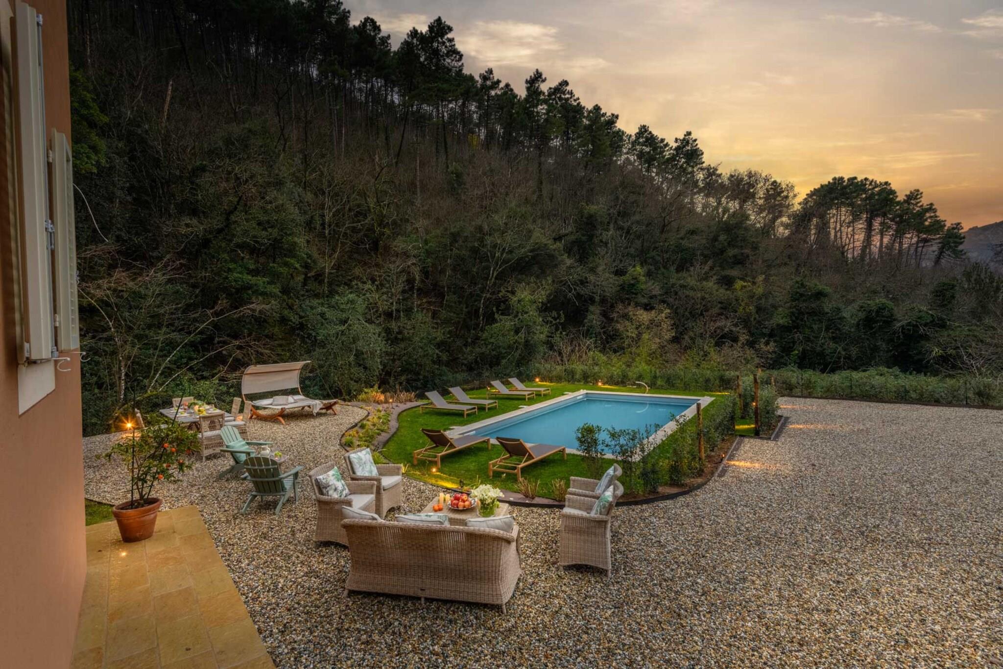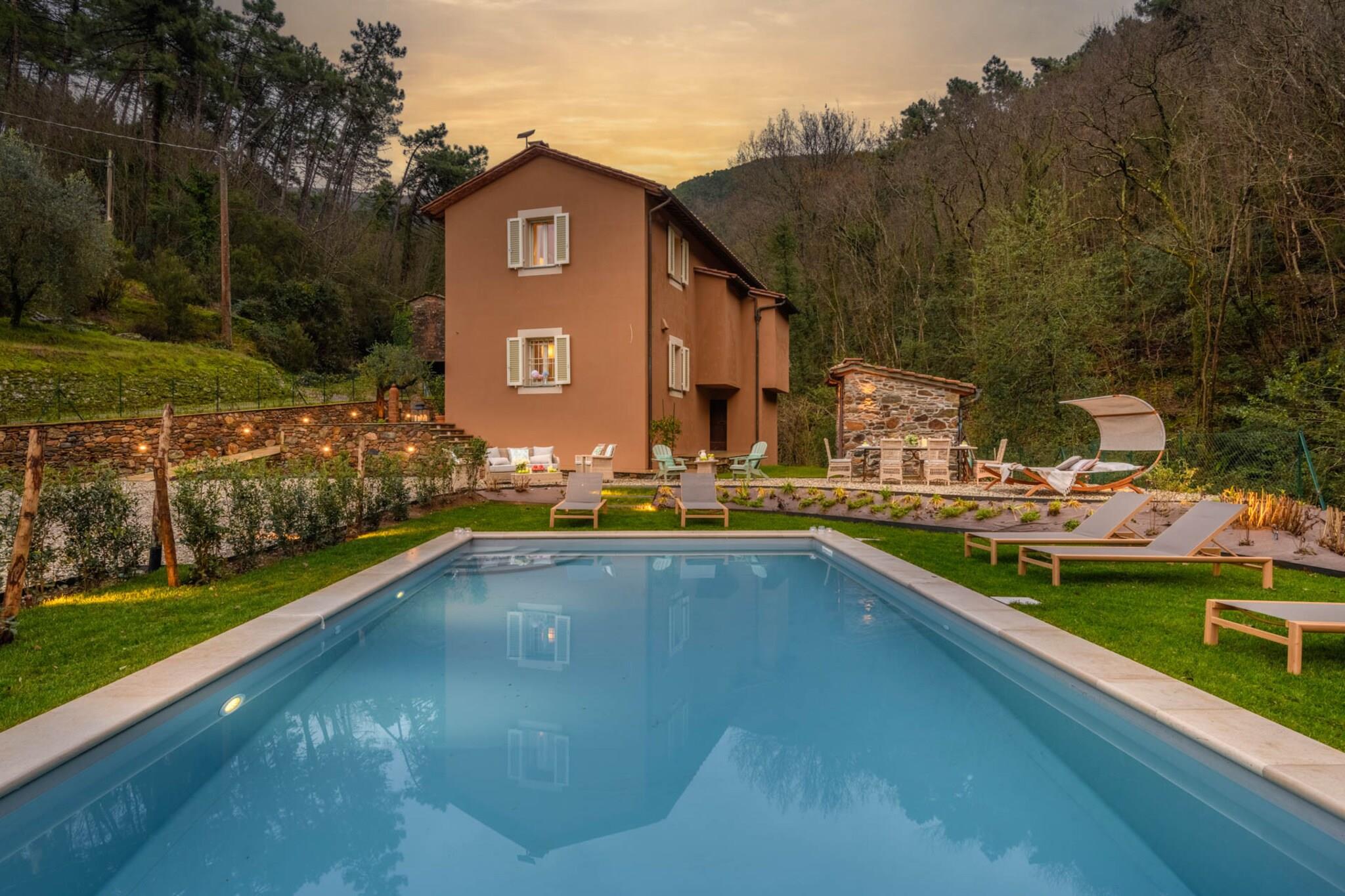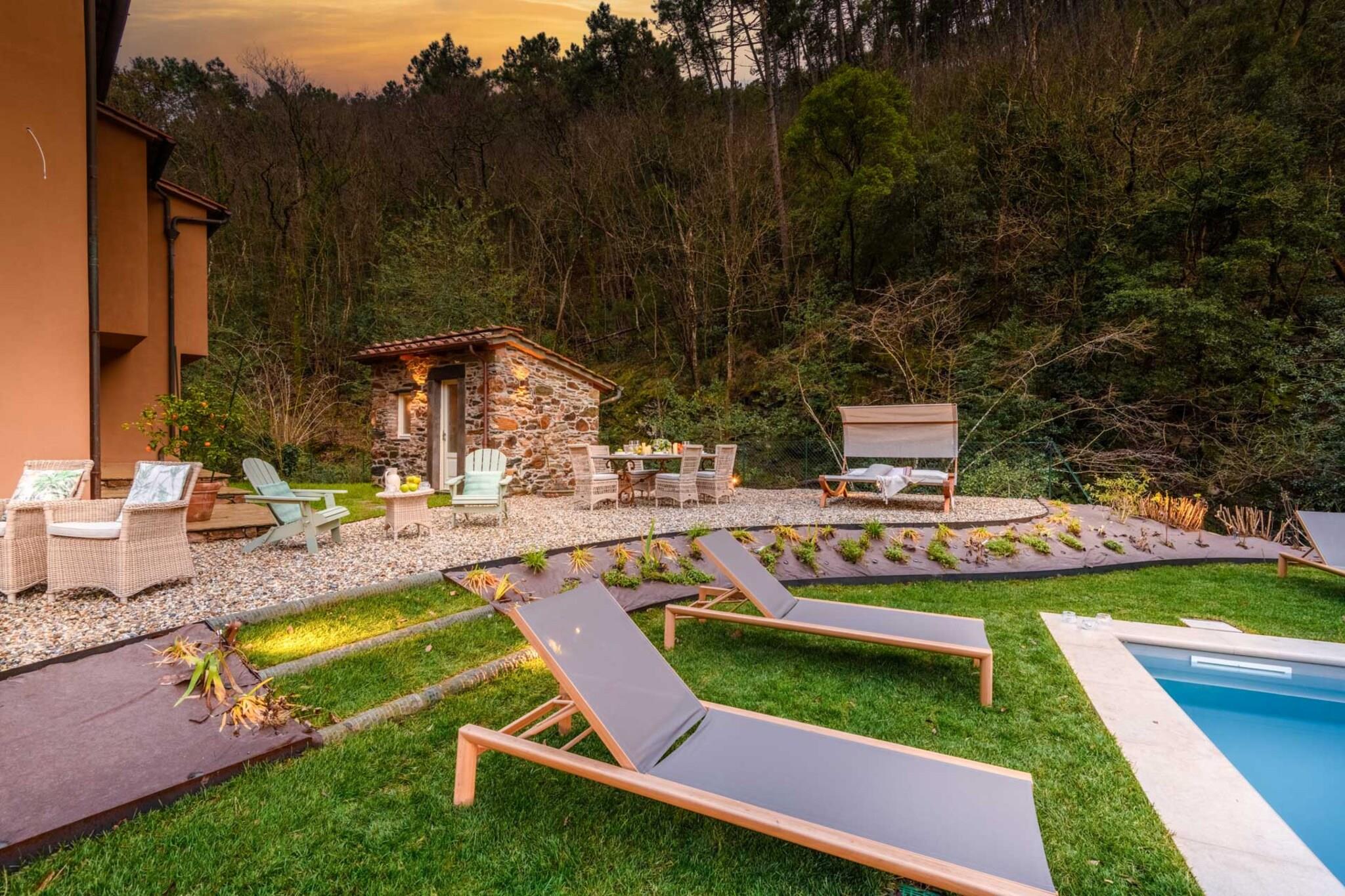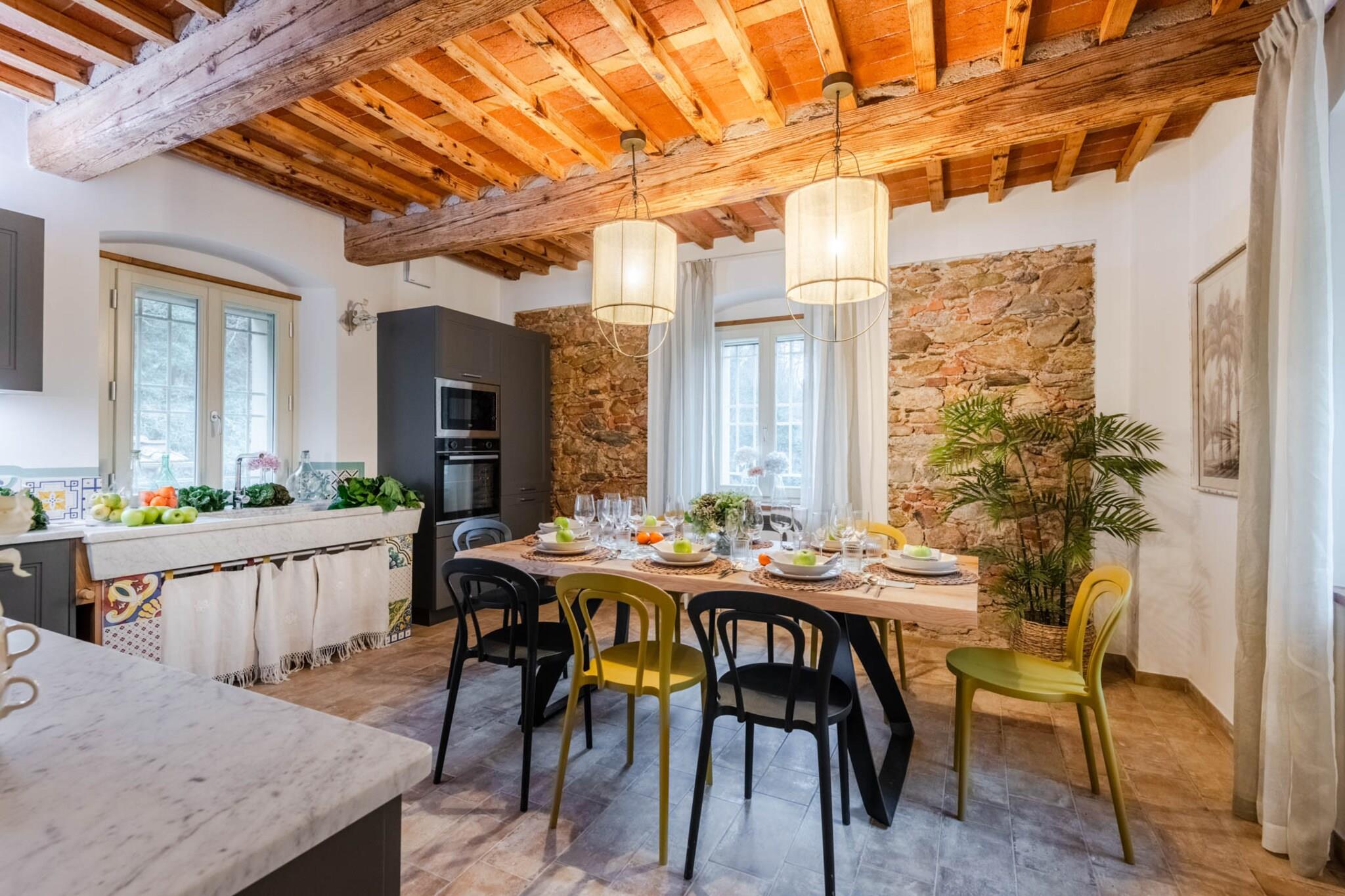 Dette vakkert restaurerte toskanske gårdshuset, som en gang var en fungerende mølle ved en rolig bekk, tilbyr nå et fredelig tilfluktssted i de bølgende åsene nær Lucca. Omgitt av olivenlunder og duftende hager, blander hjemmet rustikk sjarm med moderne komfort. Tradisjonelle steinvegger og terrakottafliser bevarer arven, mens interiøret reflekterer varme, eleganse og en dyp tilknytning til familiehistorien. Innvendig har gårdshuset et romslig kjøkken, koselige oppholdsrom og fire innbydende soverom – hvert med sin egen historie og utsikt over landskapet. Gå ut for å oppdage et privat basseng som glitrer under den toskanske solen, perfekt for rolig avslapning eller gledelige sammenkomster. Duften av lavendel og rosmarin fyller luften, og de eneste lydene er fuglesang og den myke raslingen av brisen gjennom trærne. Bare en kort kjøretur fra Lucca, tilbyr dette hjemmet den perfekte balansen mellom tilbaketrukkethet og tilgjengelighet. Enten du utforsker landsbyer i nærheten, nyter lokal vin i hagen eller bare nyter landskapets tidløse skjønnhet, inviterer dette gårdshuset deg til å roe ned, gjenopprette kontakten og skape varige minner i hjertet av Toscana. Merk: Turistskatt skal betales på eiendommen.