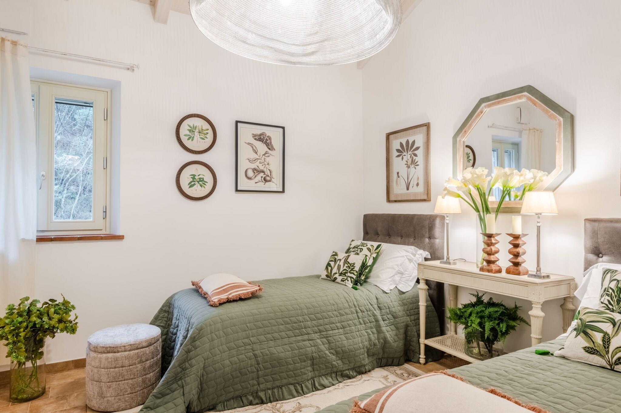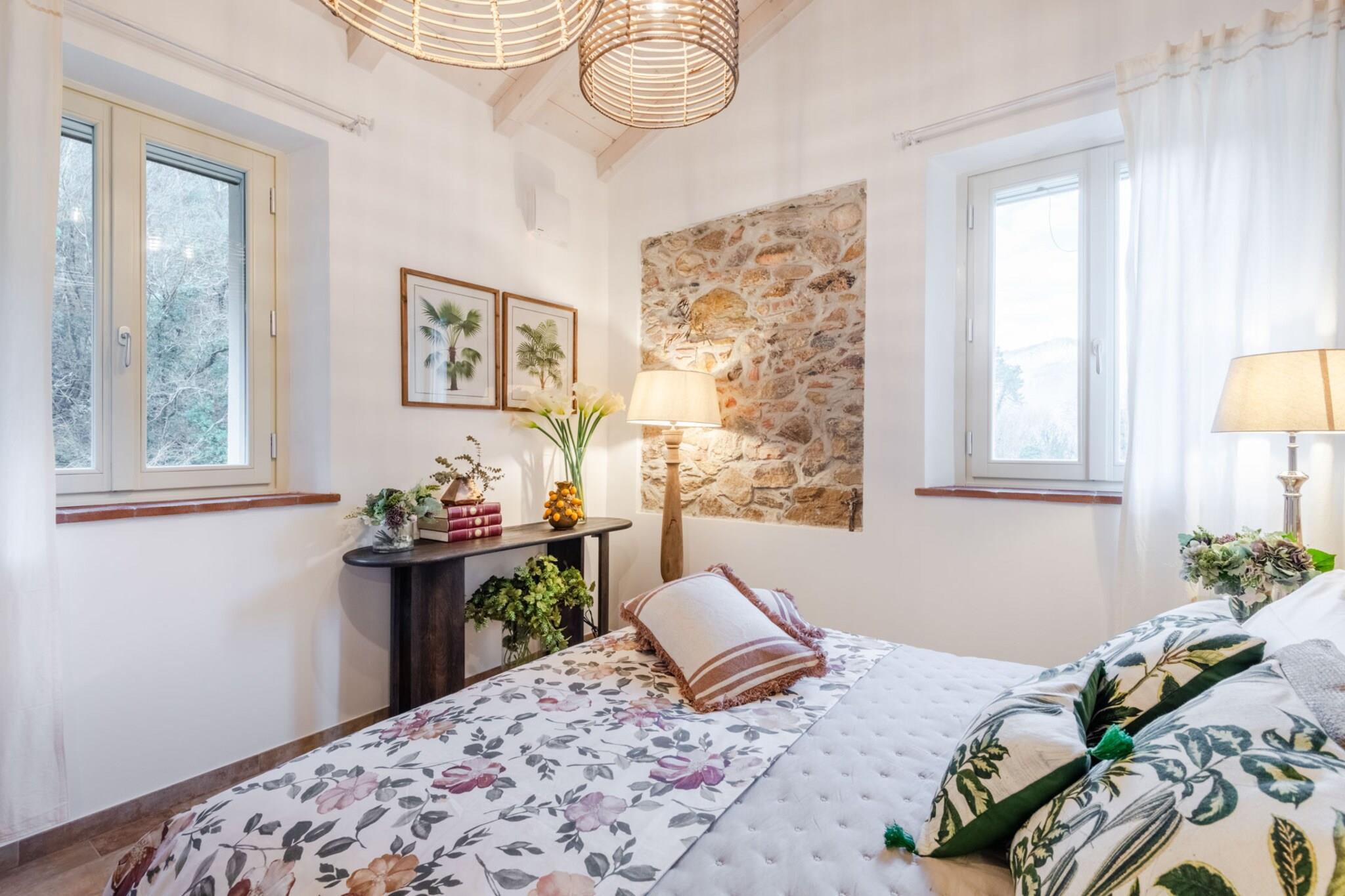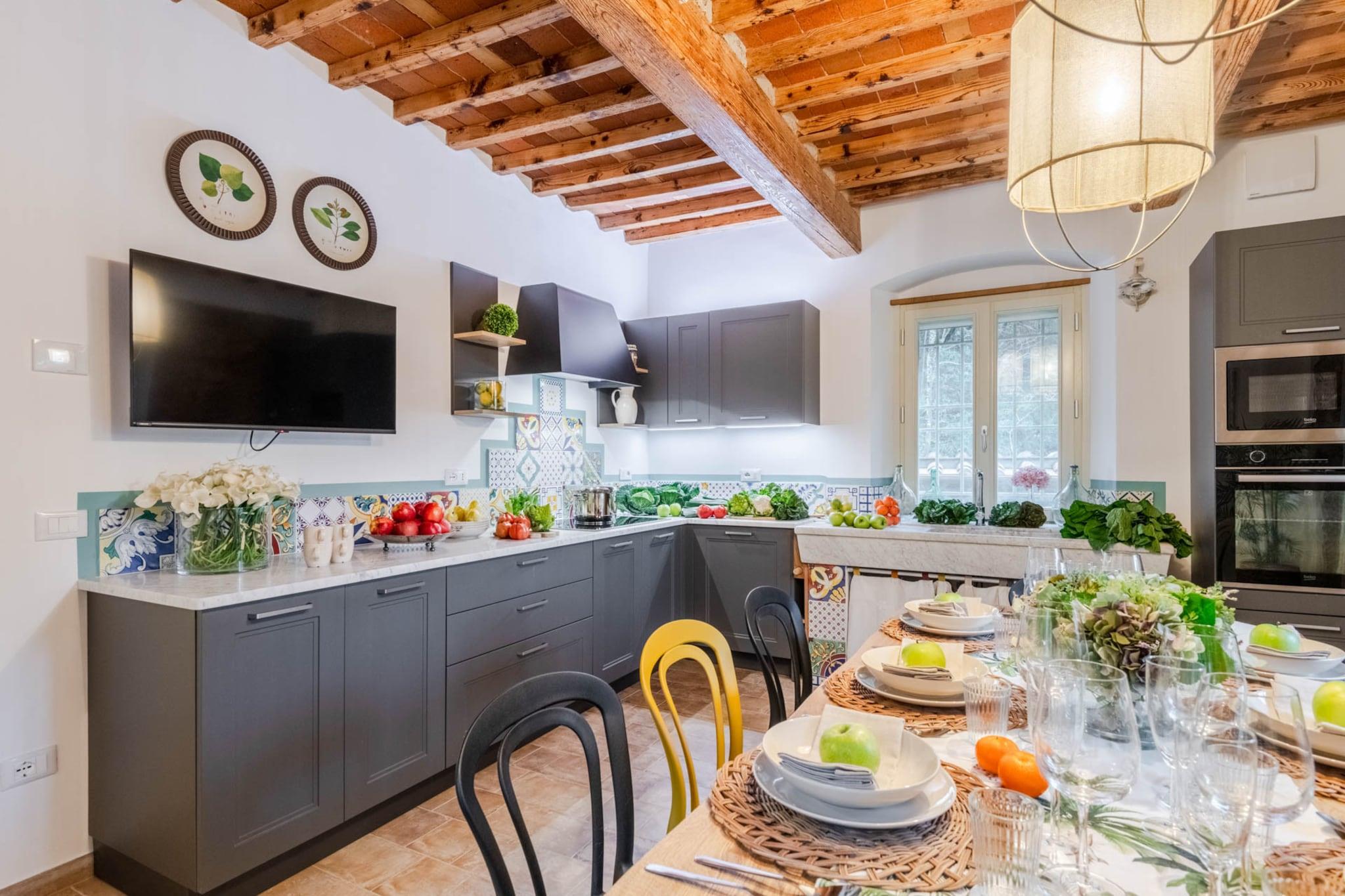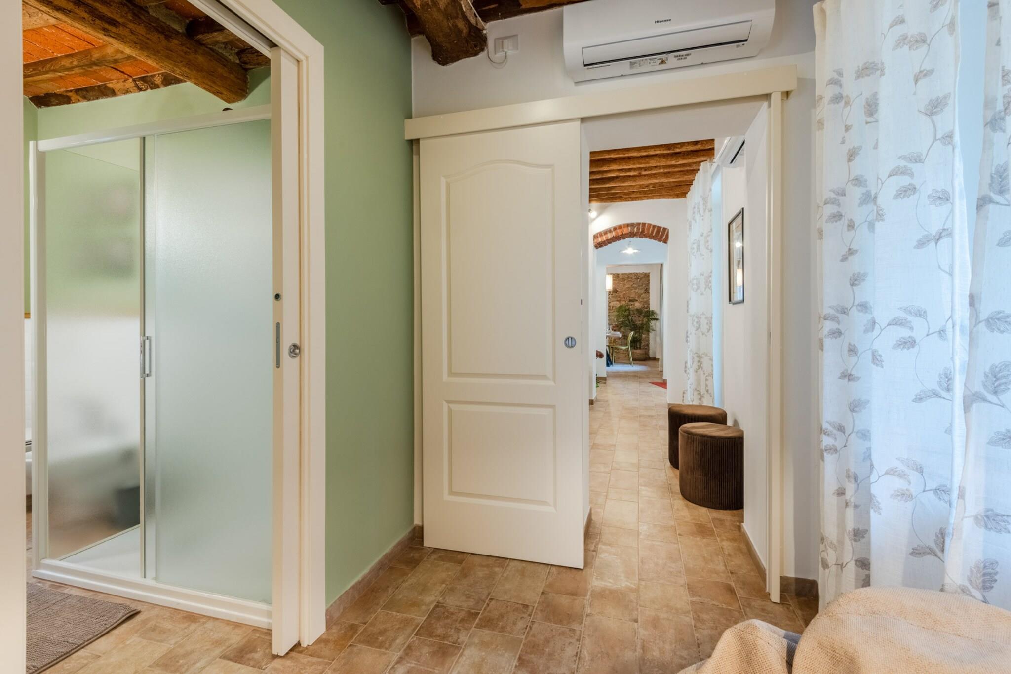 Dette vakkert restaurerte toskanske gårdshuset, som en gang var en fungerende mølle ved en rolig bekk, tilbyr nå et fredelig tilfluktssted i de bølgende åsene nær Lucca. Omgitt av olivenlunder og duftende hager, blander hjemmet rustikk sjarm med moderne komfort. Tradisjonelle steinvegger og terrakottafliser bevarer arven, mens interiøret reflekterer varme, eleganse og en dyp tilknytning til familiehistorien. Innvendig har gårdshuset et romslig kjøkken, koselige oppholdsrom og fire innbydende soverom – hvert med sin egen historie og utsikt over landskapet. Gå ut for å oppdage et privat basseng som glitrer under den toskanske solen, perfekt for rolig avslapning eller gledelige sammenkomster. Duften av lavendel og rosmarin fyller luften, og de eneste lydene er fuglesang og den myke raslingen av brisen gjennom trærne. Bare en kort kjøretur fra Lucca, tilbyr dette hjemmet den perfekte balansen mellom tilbaketrukkethet og tilgjengelighet. Enten du utforsker landsbyer i nærheten, nyter lokal vin i hagen eller bare nyter landskapets tidløse skjønnhet, inviterer dette gårdshuset deg til å roe ned, gjenopprette kontakten og skape varige minner i hjertet av Toscana. Merk: Turistskatt skal betales på eiendommen.