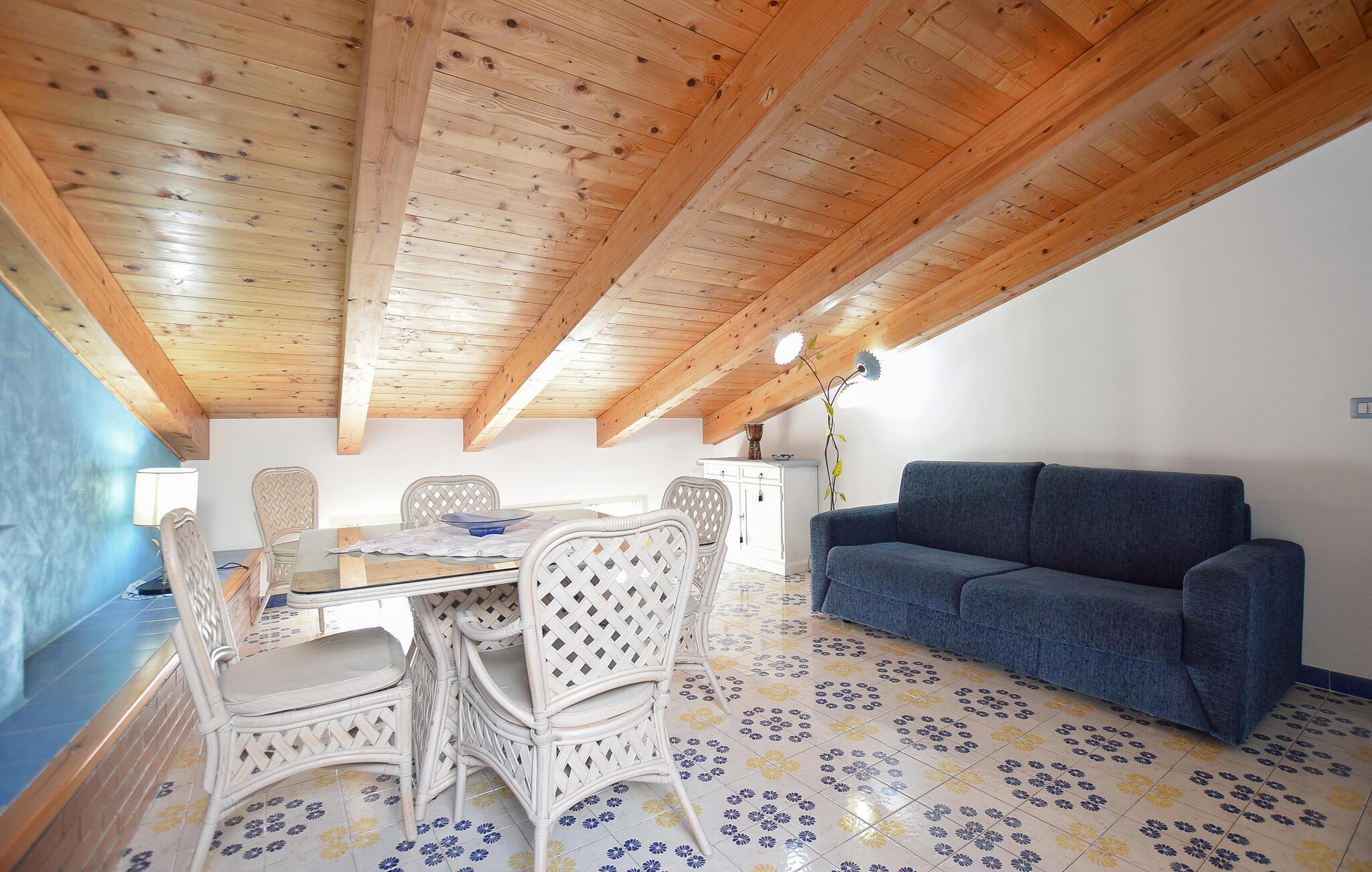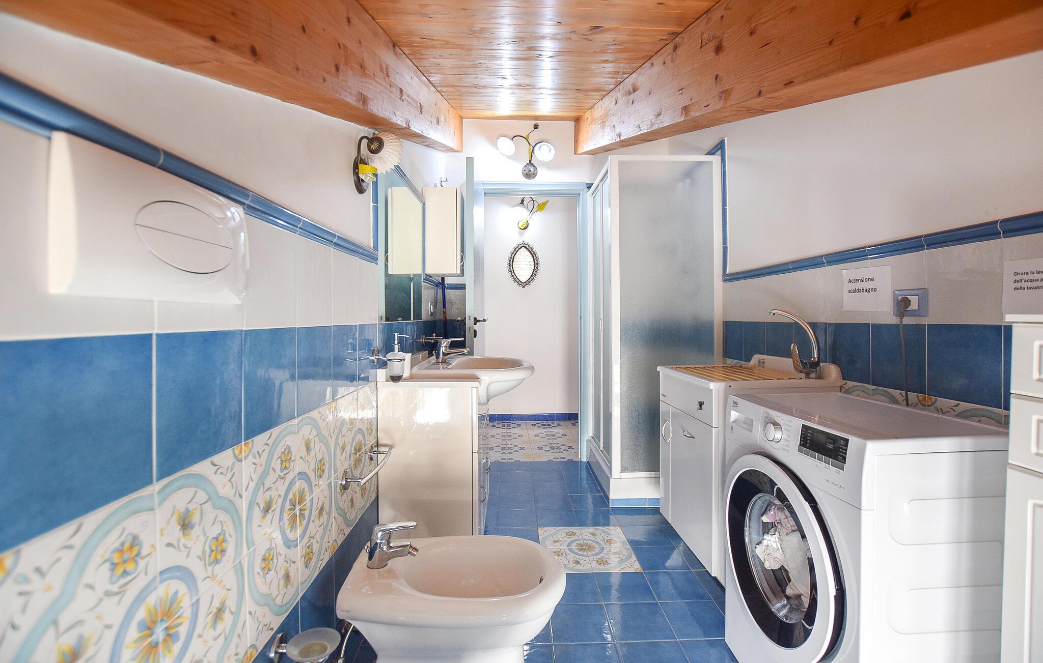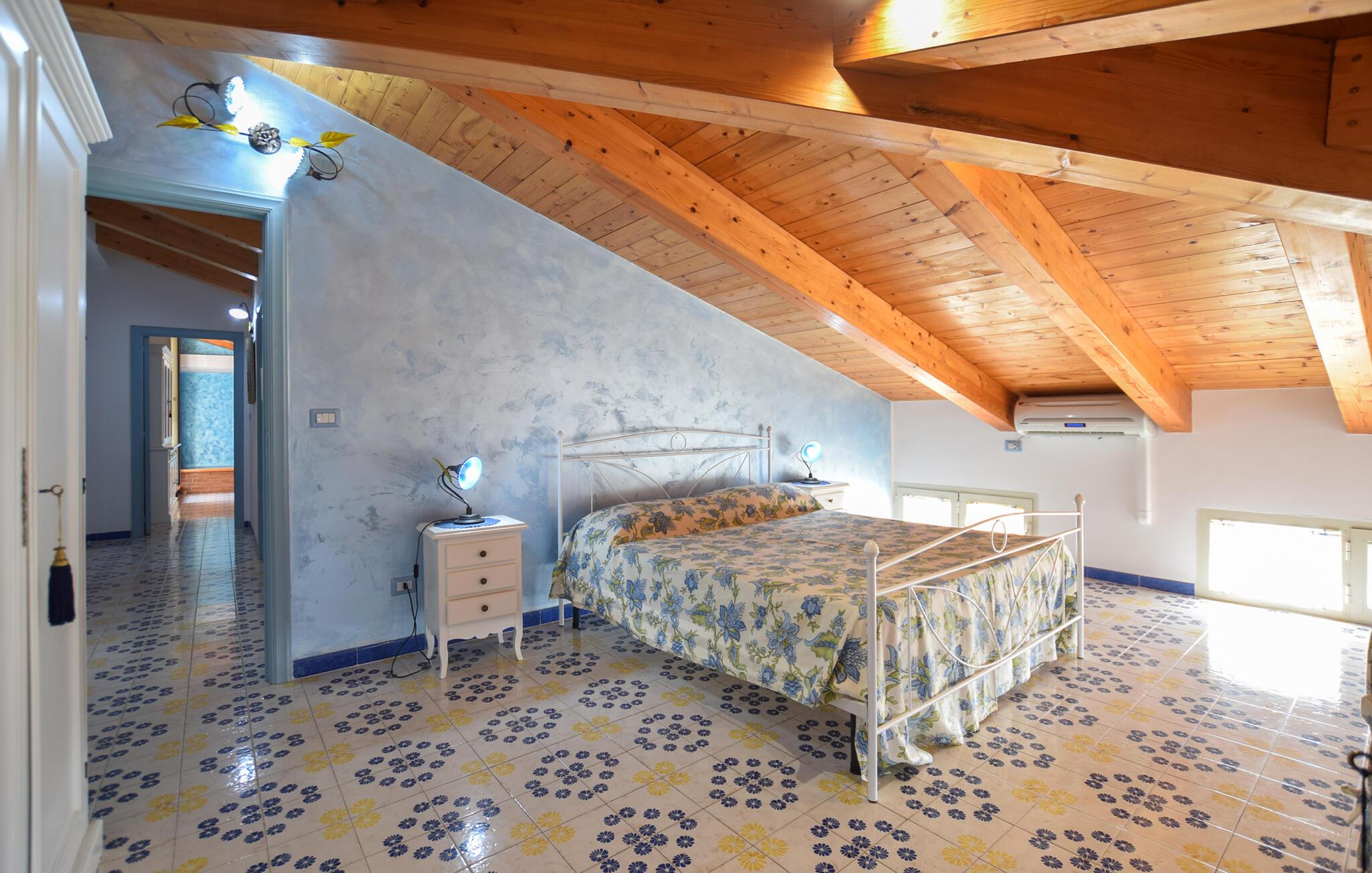 Denne romslige ferieleiligheten i Santa Maria di Castellabate tilbyr alt du trenger for en avslappende ferie. Den smakfulle innredningen og de gode fasilitetene skaper en stilfull og koselig atmosfære der du umiddelbart vil føle deg hjemme. Spesielt bemerkelsesverdig er den store takterrassen med en imponerende utsikt over det glitrende havet, perfekt for frokost med utsikt eller avslappende kvelder i solnedgangen. Denne terrassen er det ideelle stedet for å slappe av og koble av på slutten av ferien.