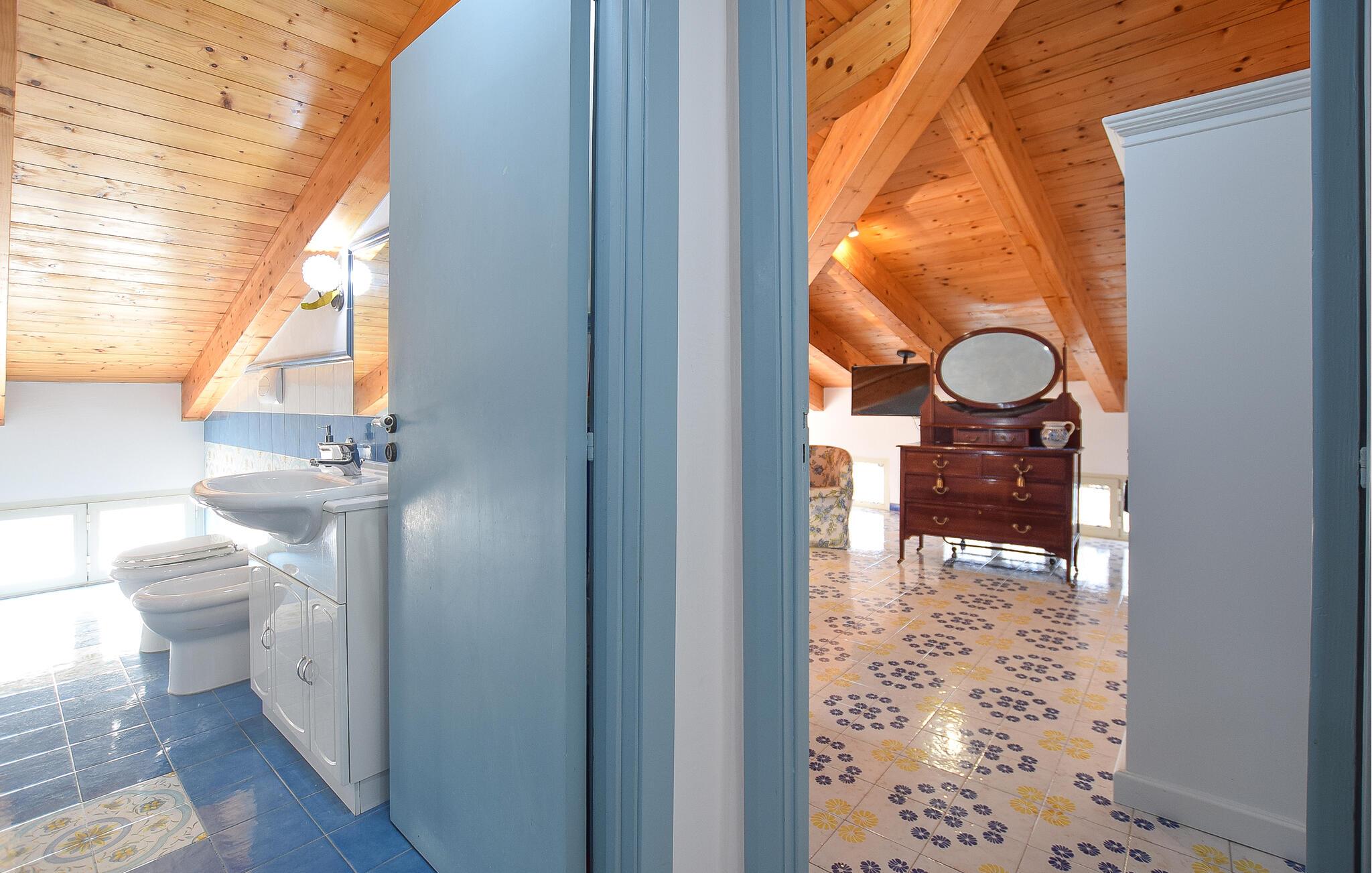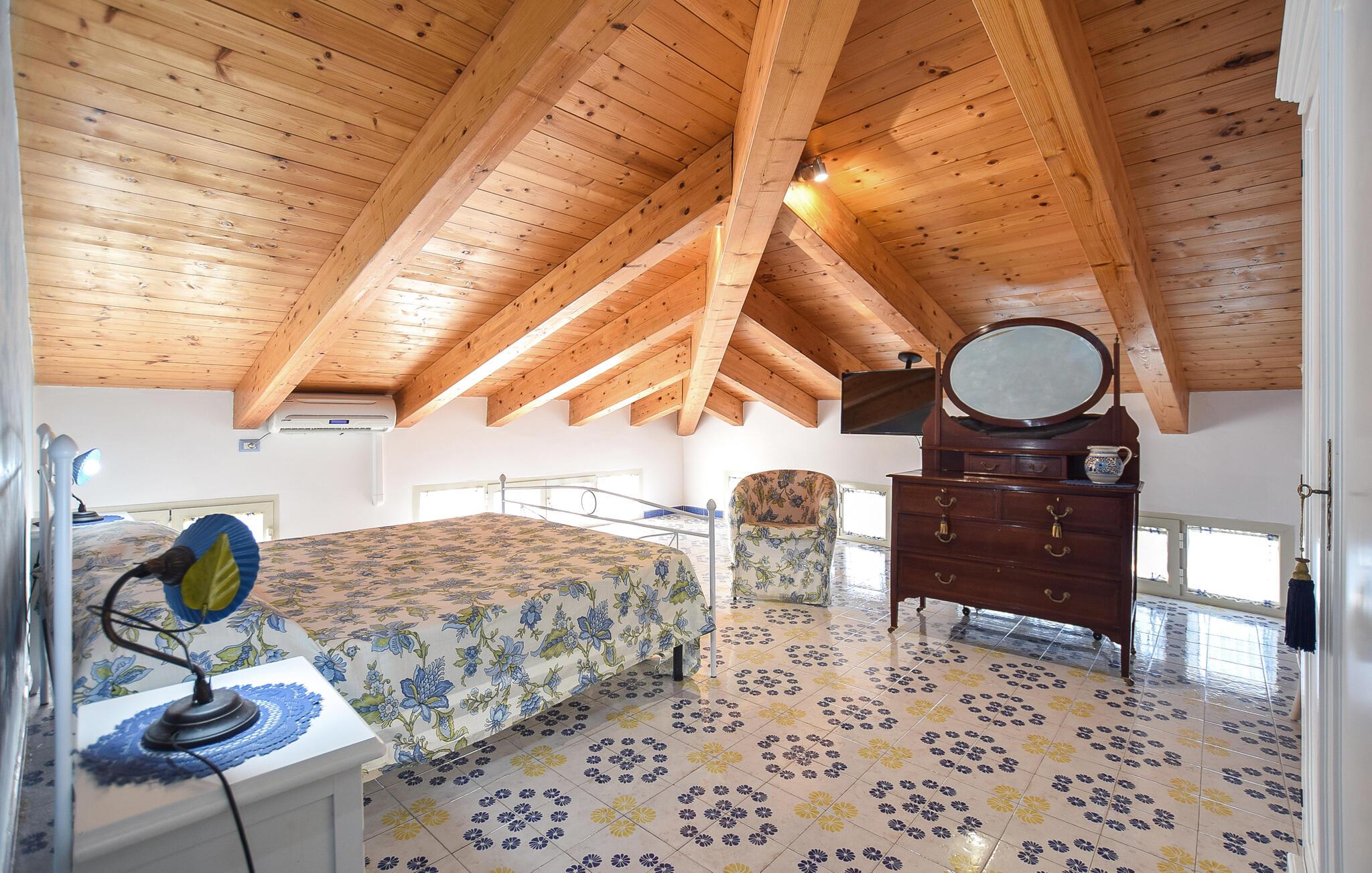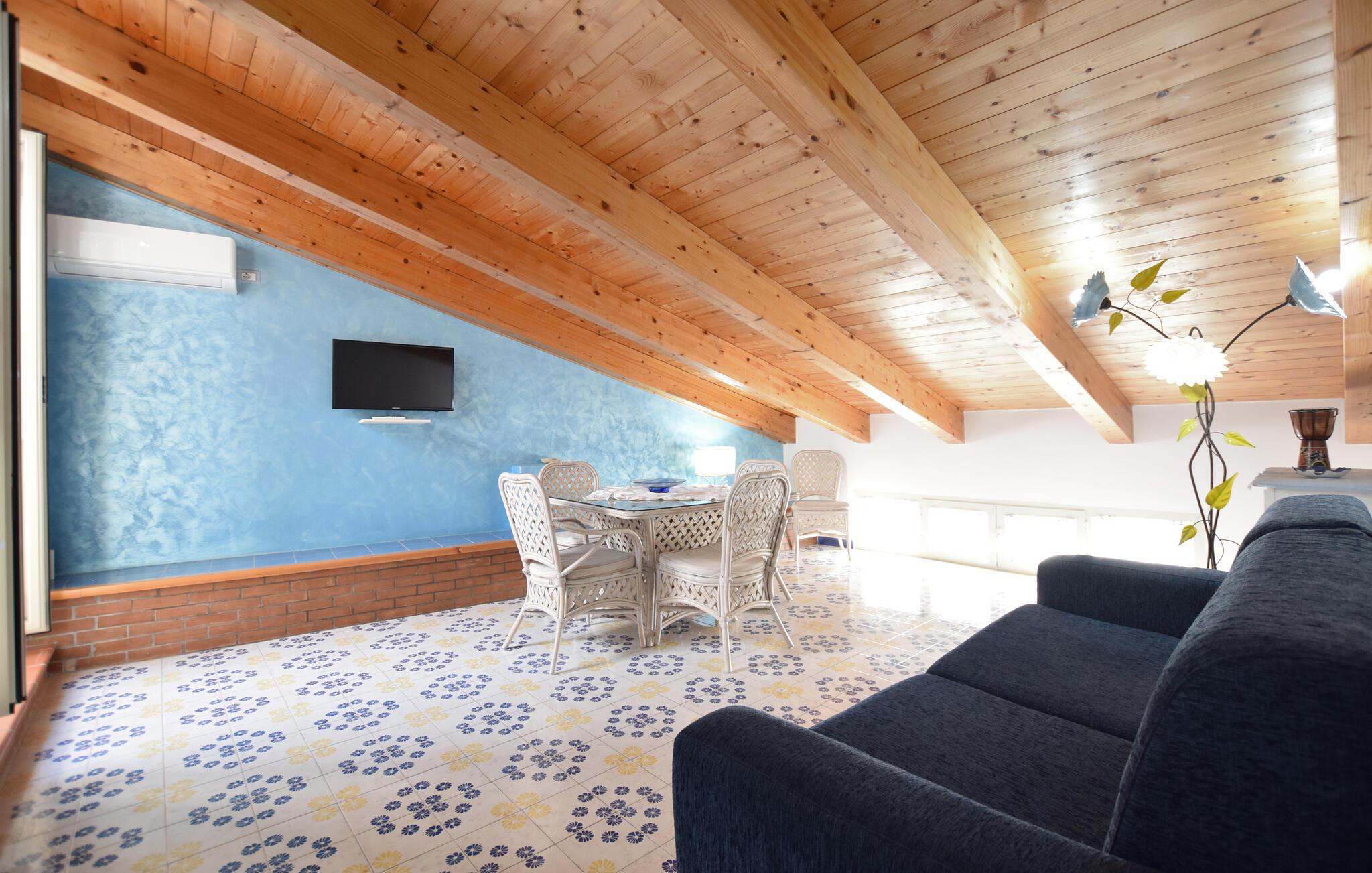 Denne romslige ferieleiligheten i Santa Maria di Castellabate tilbyr alt du trenger for en avslappende ferie. Den smakfulle innredningen og de gode fasilitetene skaper en stilfull og koselig atmosfære der du umiddelbart vil føle deg hjemme. Spesielt bemerkelsesverdig er den store takterrassen med en imponerende utsikt over det glitrende havet, perfekt for frokost med utsikt eller avslappende kvelder i solnedgangen. Denne terrassen er det ideelle stedet for å slappe av og koble av på slutten av ferien.