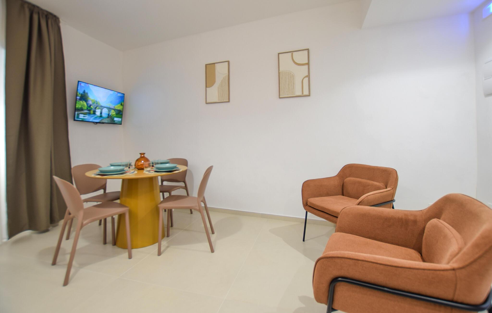 Opplev middelhavselegance i en moderne ferieleilighet i det historiske hjertet av en kystby.