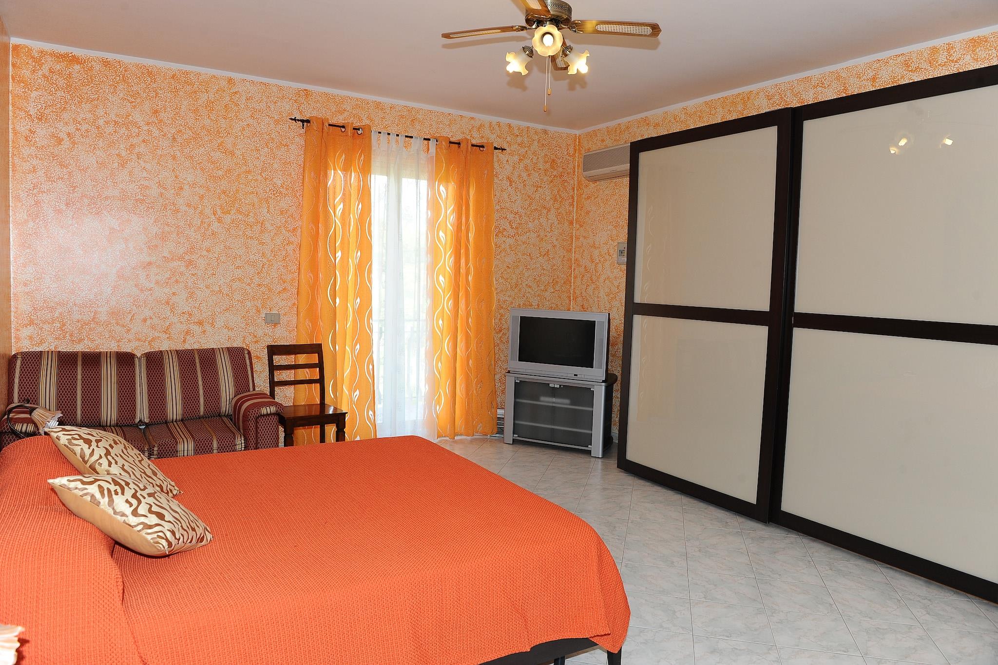Et avslappende opphold i Etnas bakker Denne lyse leiligheten med klimaanlegg ligger i en sjarmerende villa, og tilbyr et fredelig tilfluktssted i andre etasje, med en romslig terrasse, egen grill og utsikt over frodige hager. Gjestene kan nyte et felles saltvannsbasseng, ideelt for å kjøle seg ned etter en dag med eventyr. Den koselige stue-spisestuen og det velutstyrte kjøkkenet gjør den perfekt for par eller små familier. En liten grønnsakshage er tilgjengelig for gjester, og små er velkomne med barneseng og barnestol. Oppdag Sicilias natur- og kulturskatter Dette oppholdet har en ideell beliggenhet i Santa Venerina, bare noen minutter fra noen av Sicilias største attraksjoner. Utforsk månelandskapet i Etna-parken kun 15 km unna, eller slapp av ved de naturskjønne lavastrendene i Pozzillo og Stazzo, kun 9 km fra dørstokken din. I nærheten tilbyr Acireales barokke arkitektur og de dramatiske havstablene i Acitrezza en kulturell og visuell godbit. Taormina og Catania er også lett tilgjengelige for dagsturer fulle av historie, shopping og havutsikt. Smak på smakene fra regionen Santa Venerina er kjent for sine håndverkslikører og bakverk - ikke gå glipp av å prøve de lokale rosolio- eller mandelsøtsakene. Dra til Zafferana Etnea for sin verdenskjente honning, eller nyt sjømat og sicilianske klassikere i Acireale på restauranter som Trattoria U Puttusu eller I Cavaddari. Lokale markeder og bakerier i nærheten sørger for at ferske råvarer alltid er innen rekkevidde.