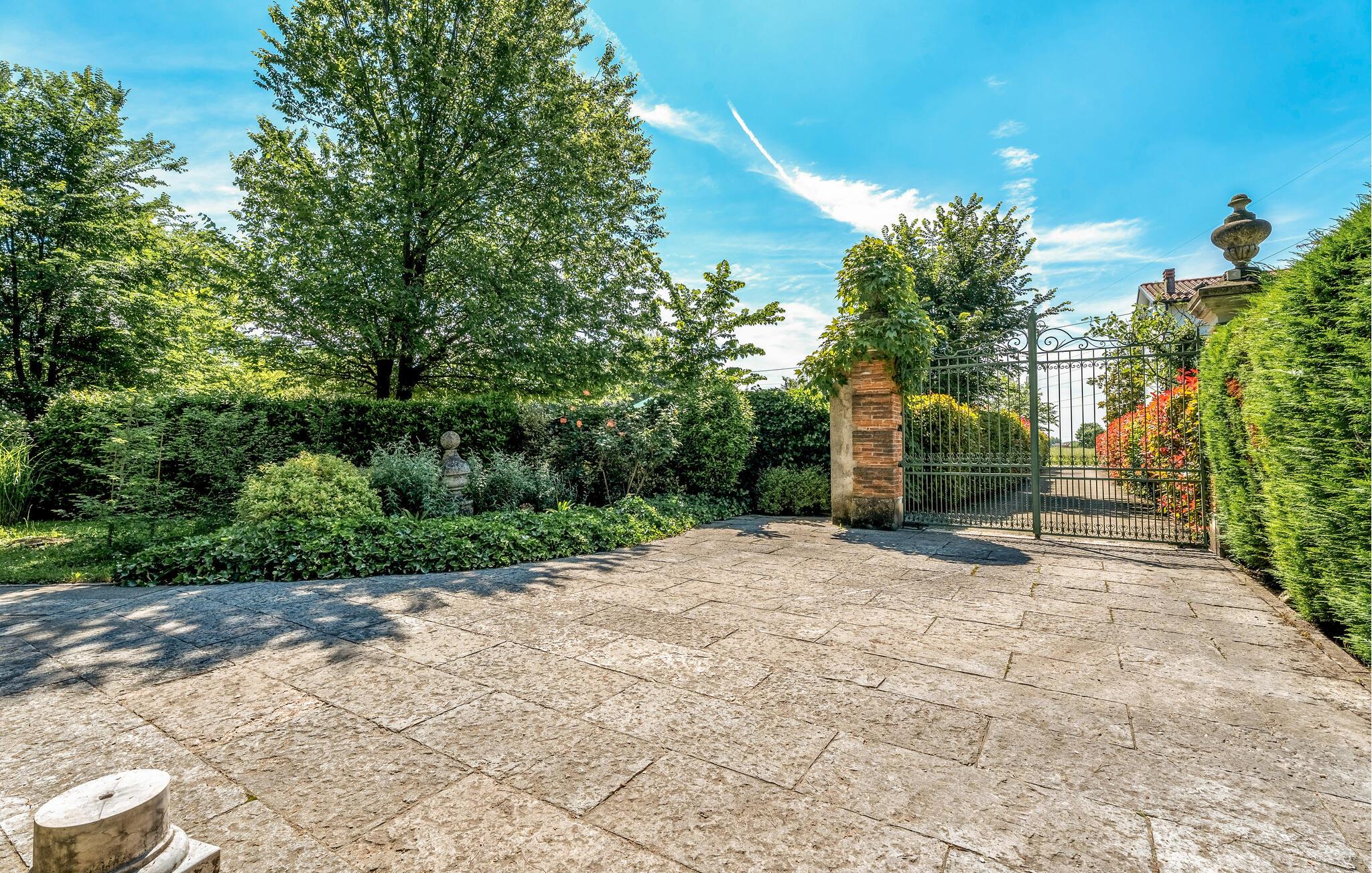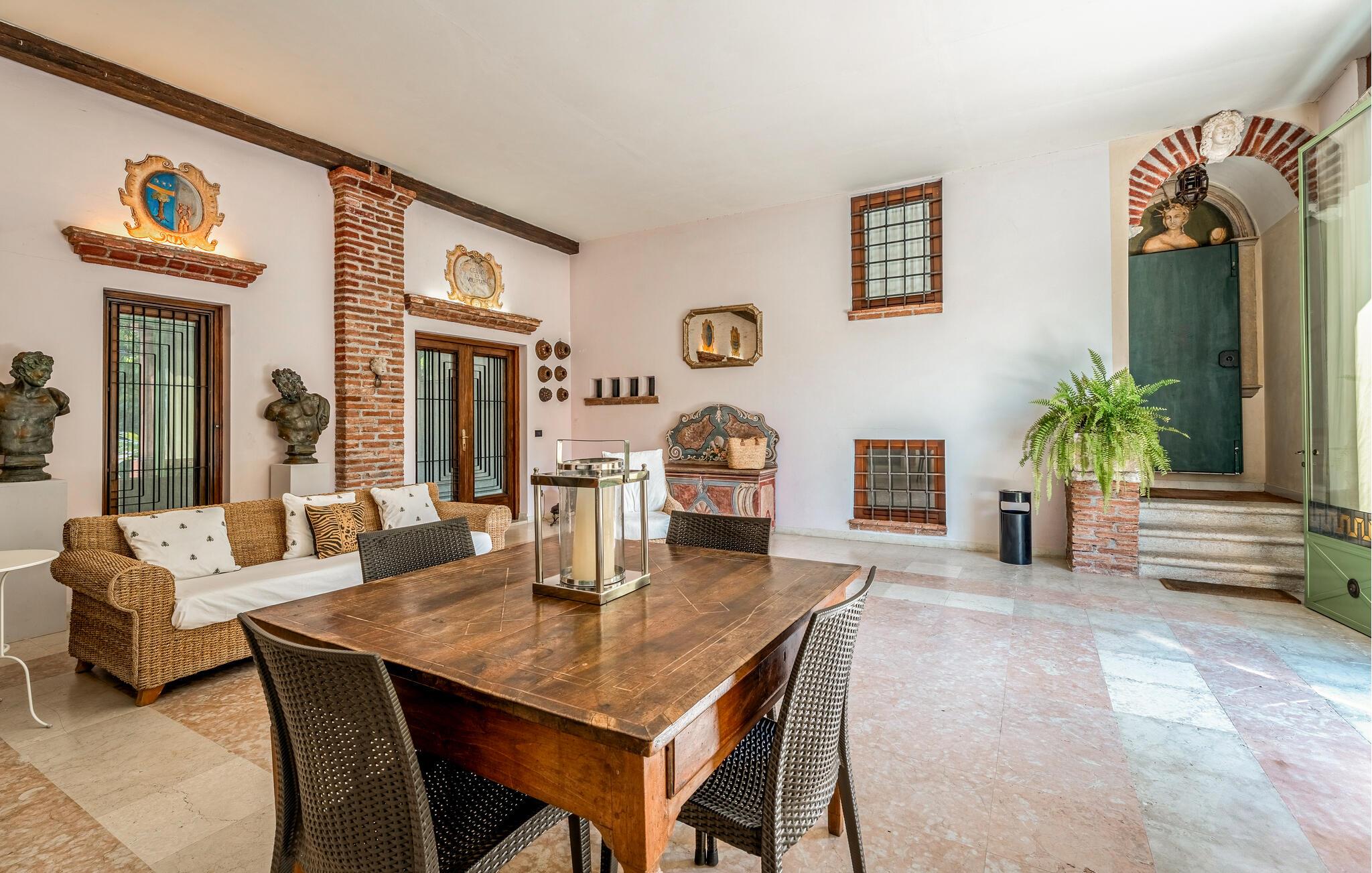 Huset, som er en del av en landsby, var opprinnelig jakthytte for en adelsfamilie, og er omgitt av en inngjerdet park med en fantastisk hage full av blomster, planter, fontener og frukttrær. Den delen av huset som er reservert for gjester strekker seg over to etasjer. I første etasje er det en portico med søyler med utsikt over hagen. En antikk marmortrapp fra stuen fører til spisekjøkkenet, fra hvis vinduer du kan se en del av hagen, og loftet med en dobbeltseng, og noen få trinn fører ned til de to andre soverommene.