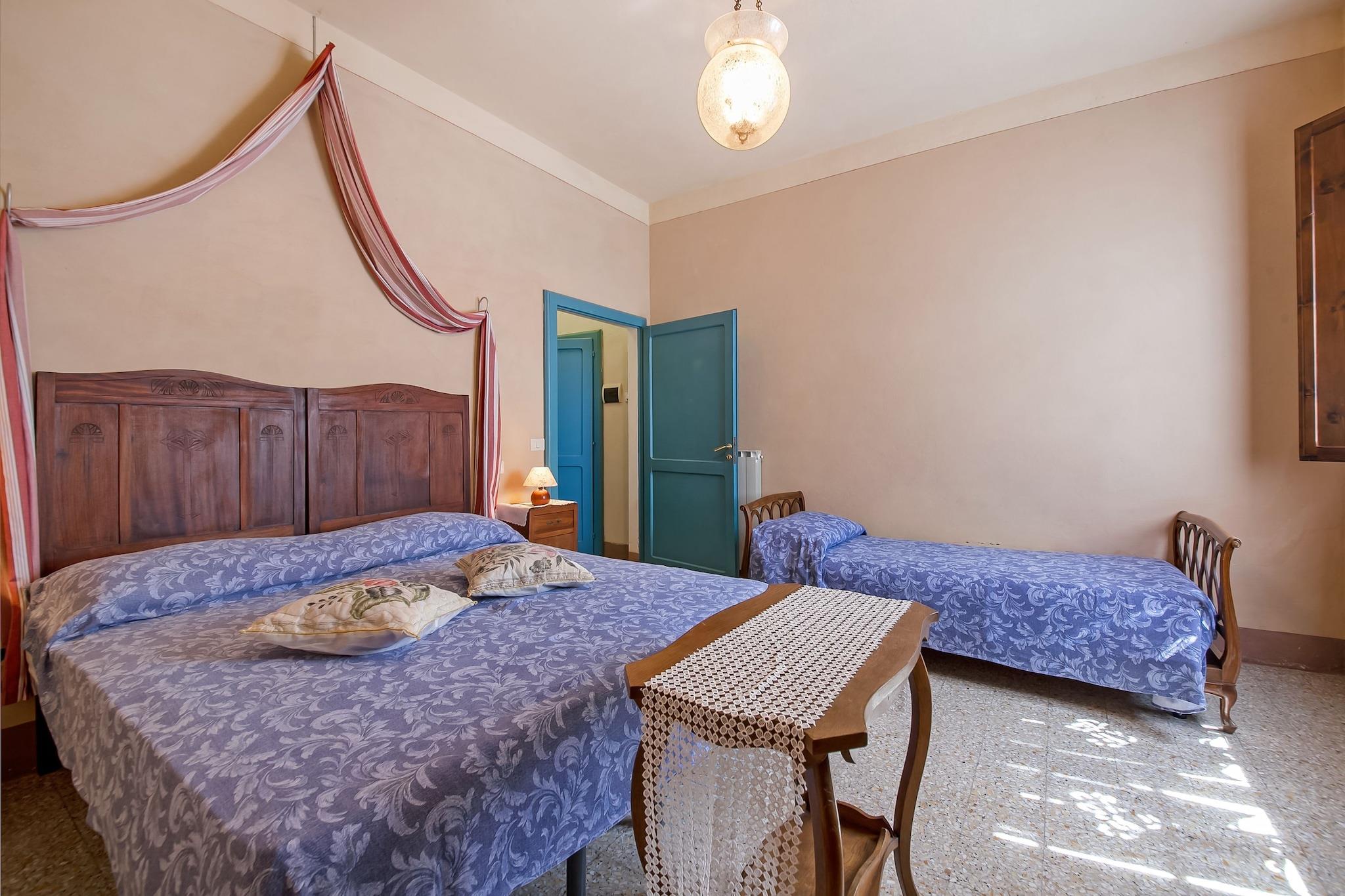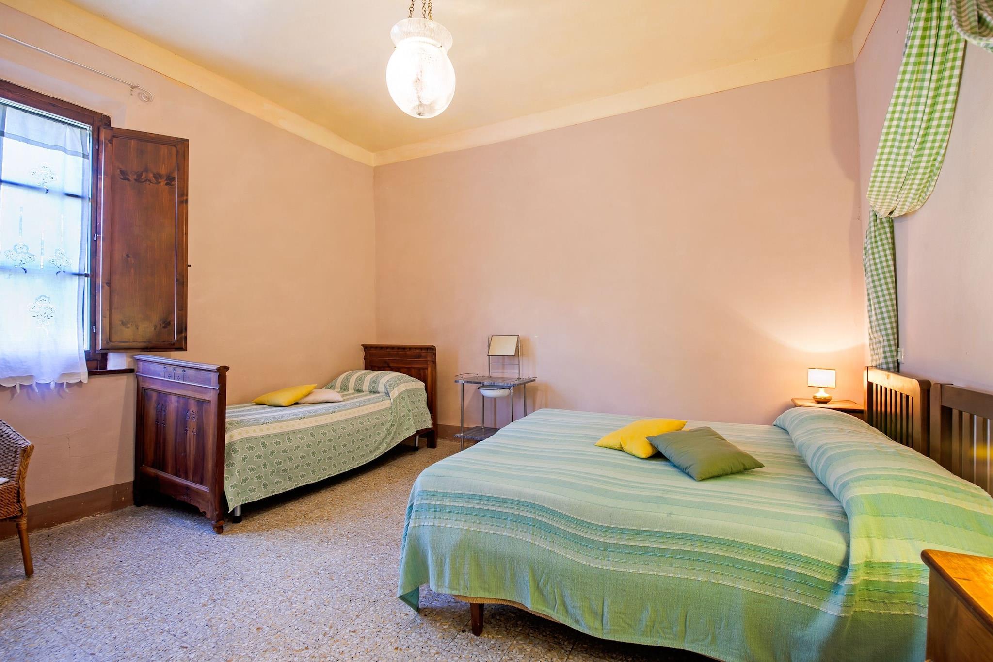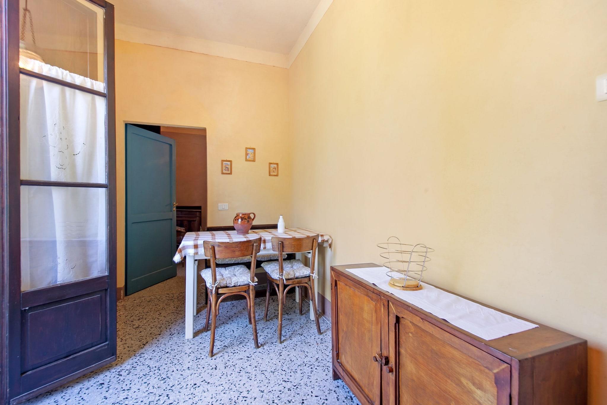 Et romslig tilfluktssted i hjertet av Sarteano Dette kjæledyrvennlige feriehuset ligger blant bølgende vingårder og olivenlunder, og tilbyr en rolig ferie for opptil ti gjester. Med WiFi, en privat terrasse og tilgang til et felles svømmebasseng (åpent mai–september), er dette sjarmerende tilfluktsstedet perfekt for familier og grupper som søker avslapning og eventyr. Første etasje har tre åpne kjøkken, hver utstyrt med kokeplate, vannkoker, kokende vannkran, kaffemaskin, kjøleskap og juicer, noe som sikrer bekvemmelighet for store sammenkomster. Oppdag Sarteanos rike arv og naturlige skjønnhet Bare 7 km unna, inviterer Sarteano besøkende til å utforske sin middelalderske sjarm, inkludert Castello di Sarteano, en historisk festning med fantastisk utsikt. Museo Civico Archeologico di Sarteano viser frem fascinerende etruskiske gjenstander. Eksepsjonelle matopplevelser i nærheten Unn deg autentiske toskanske smaker på Le Logge Del Vignola, en høyt rangert restaurant i Montepulciano. La Buca di Enea i Pienza byr på en koselig atmosfære med tradisjonelle retter, mens Pesce d'Oro i Chiusi er perfekt for sjømatelskere.