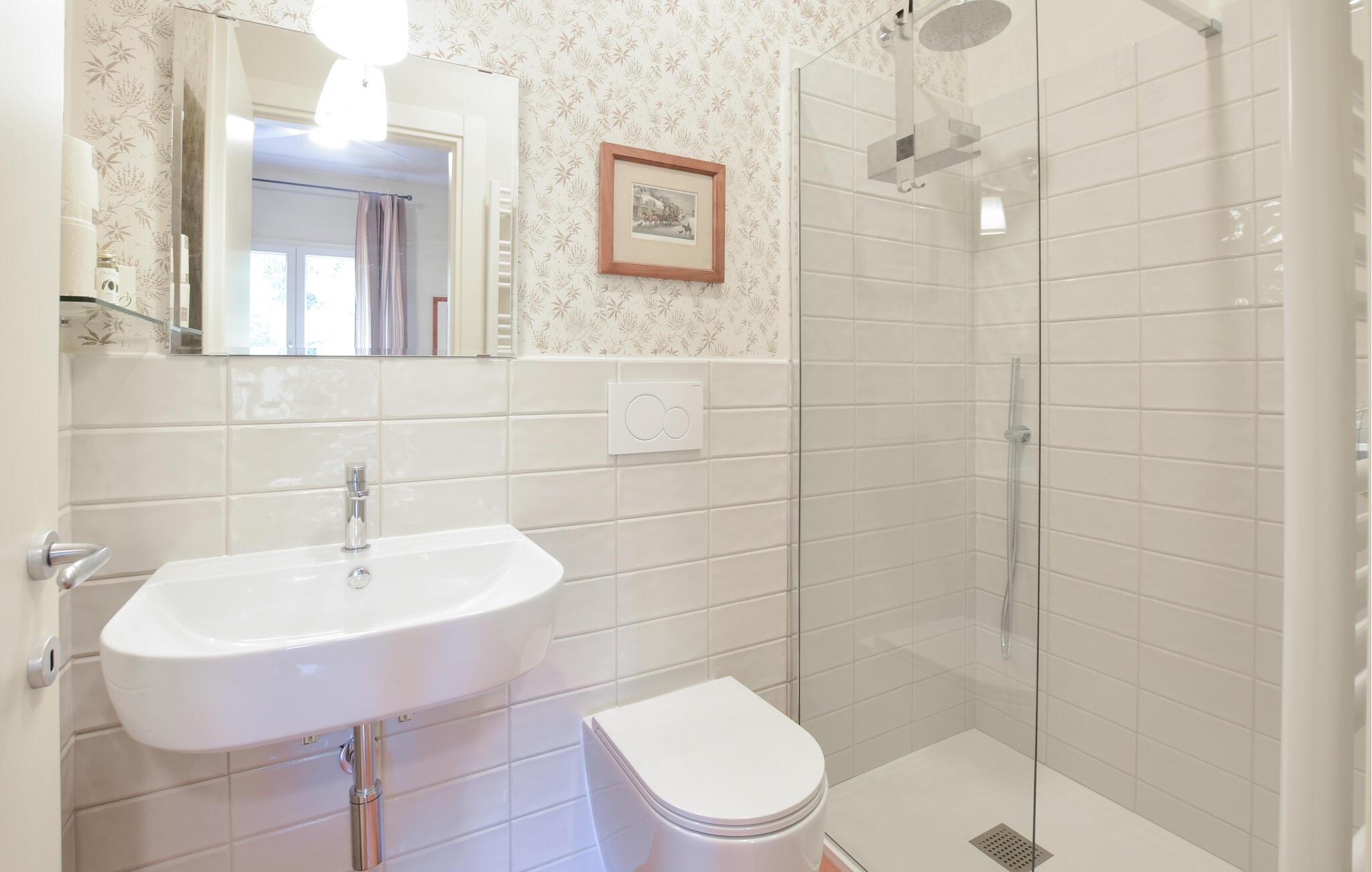 - WC med varmt og kaldt vann, Dusj