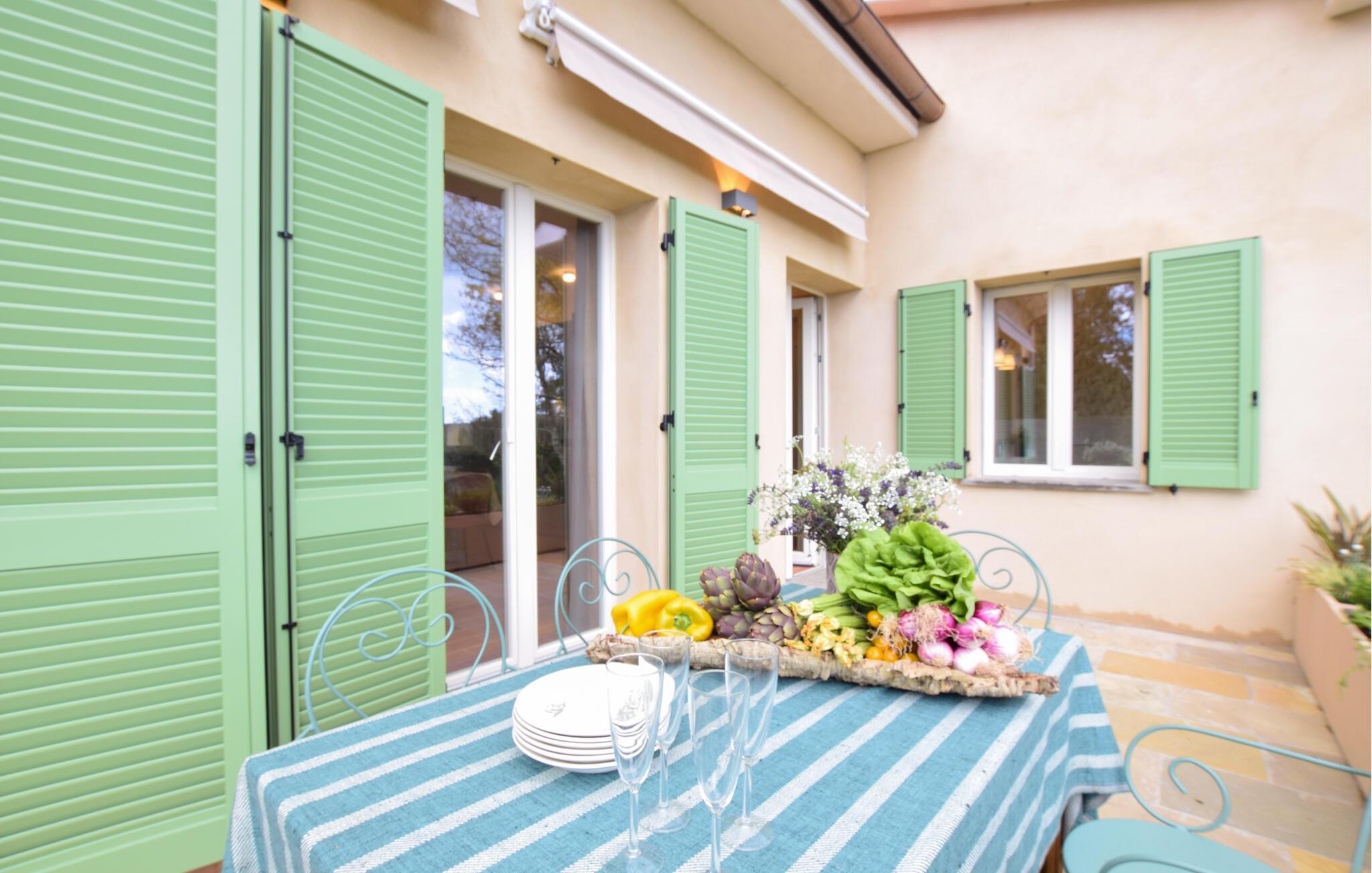 Nyt privatlivet på den romslige fellesområdet, spesielt siden det vakre fellesbassenget ligger bare en kort spasertur unna. Server frokosten på den åpne terrassen, og bruk den murte grillen til koselige kvelder i den lune sommerluften.