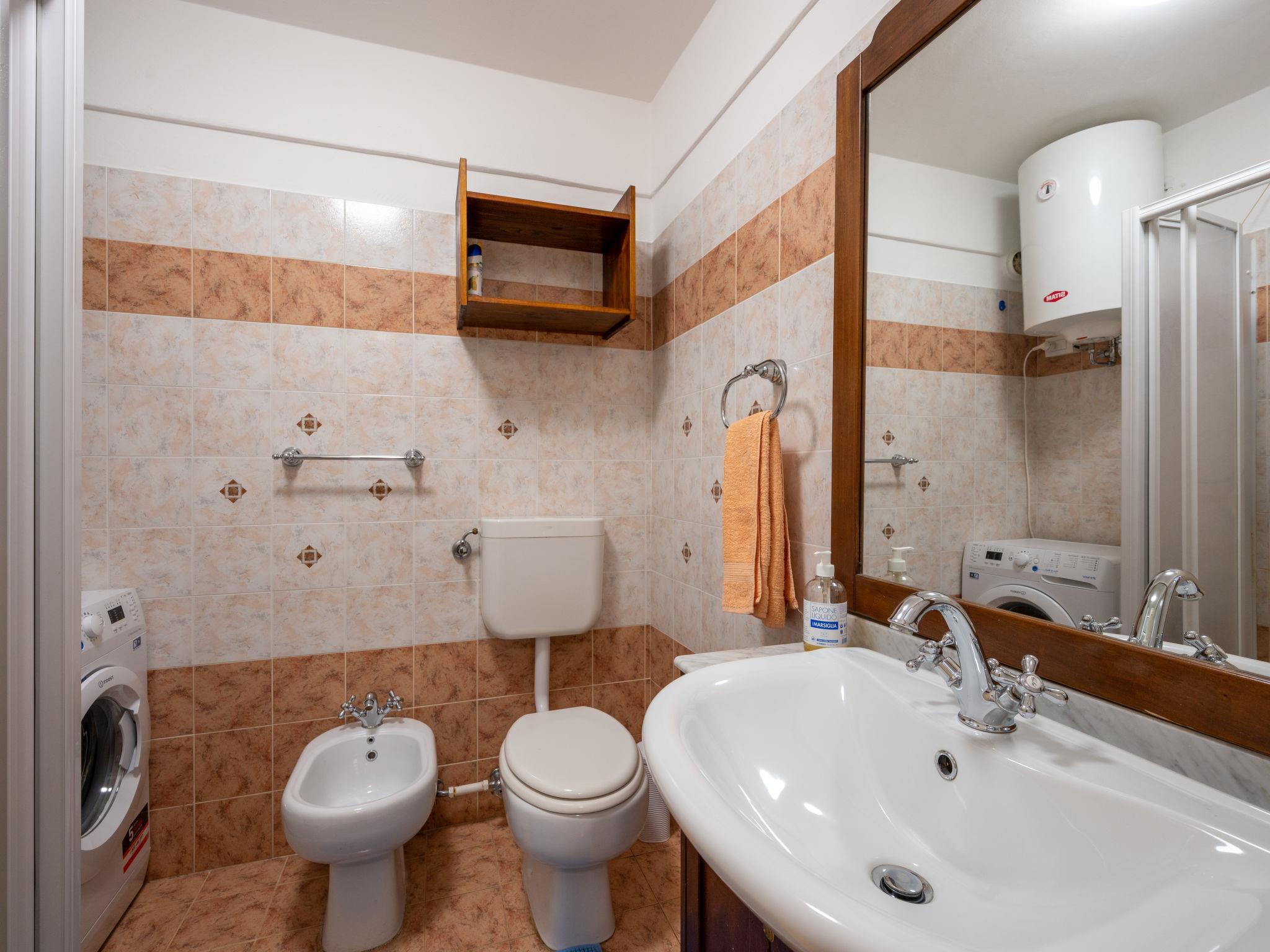 "Ginevra", 2-room apartment 45 m2 on 2nd floor. Practical and wooden furniture furnishings: living/sleeping room with 1 double sofabed, dining table, dining nook and TV. Exit to the balcony. 1 room with 2 x 2 bunk beds. Exit to the balcony. Small, open kitchen (oven, 4 induction hot plates, toaster, kettle, freezer, electric coffee machine). Shower/WC. Gas heating. Heating available only from 22.10. to 15.04. Wooden floors. Balcony. Balcony furniture, deck chairs (3). Facilities: washing machine. Internet (WiFi). Please note: non-smoking house. Maximum 1 pet/ dog allowed. IT001259C25SPSNQRK