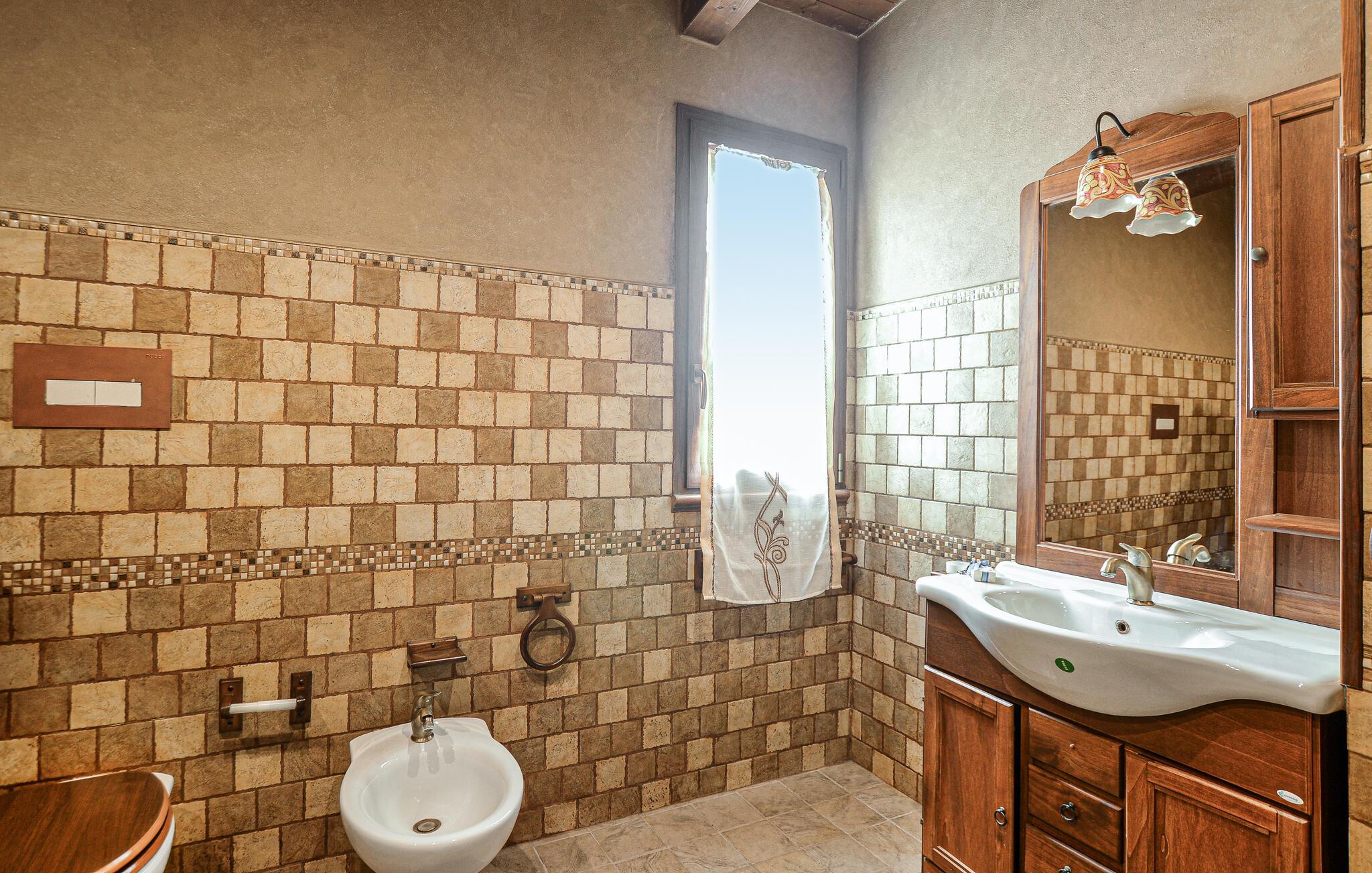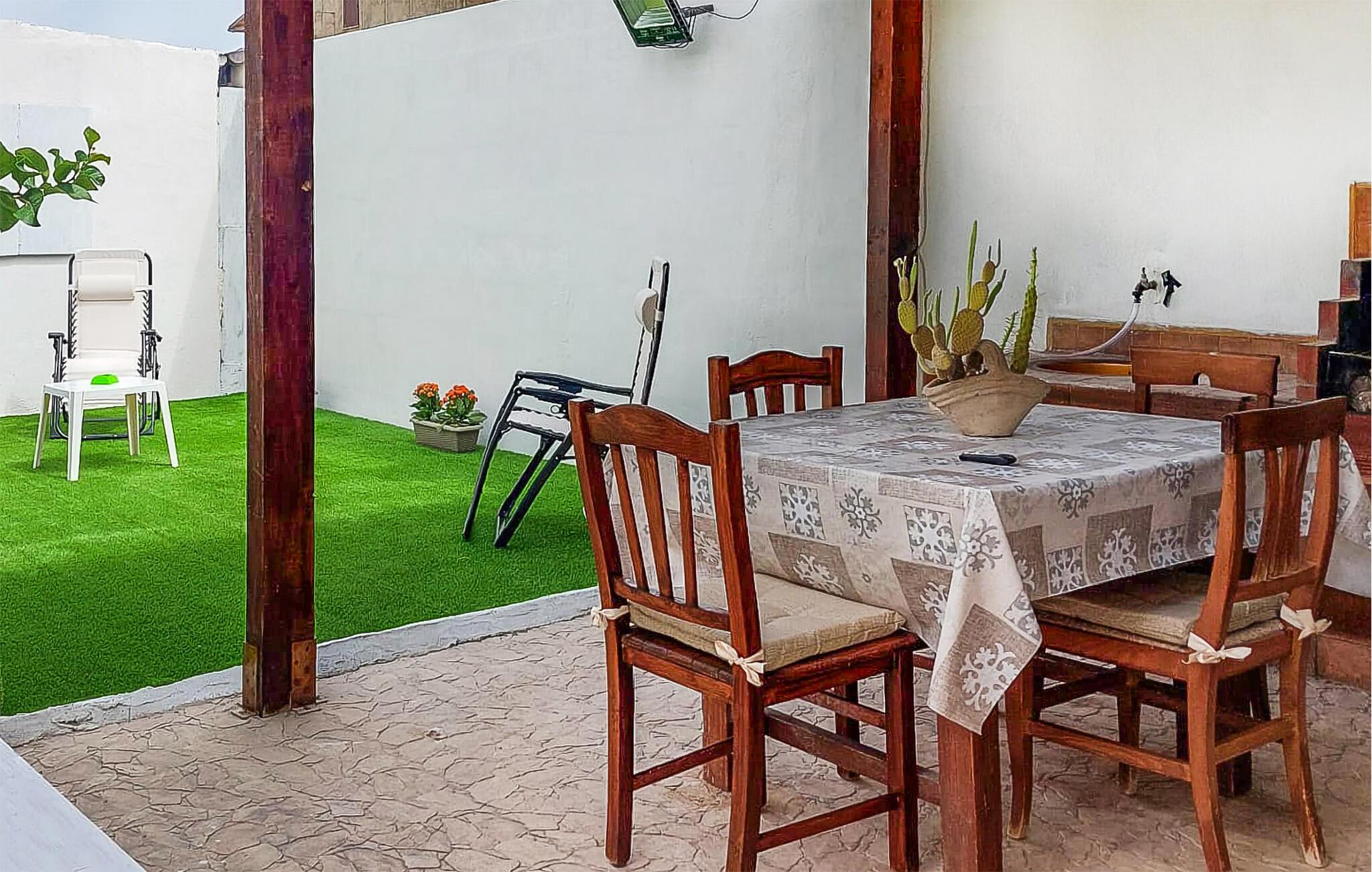 Dette smakfulle feriehuset ligger rett ved kysten, og tilbyr et uforlignelig opphold. De stilfulle møblene og de romslige rommene lover komfort og avslapning. Den tradisjonelle sjarmen i møblene vil få deg til å føle deg vel og lover deg moro mens du lager mat. Det velutstyrte kjøkkenet inviterer deg til å tilberede lokale delikatesser, mens hagen med overbygd terrasse er perfekt for koselige kvelder utendørs.