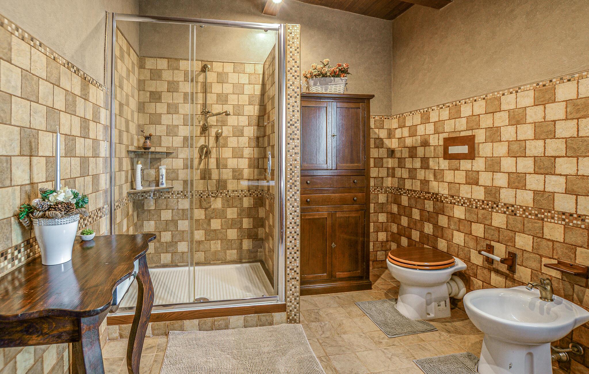 - WC med varmt og kaldt vann, Dusj