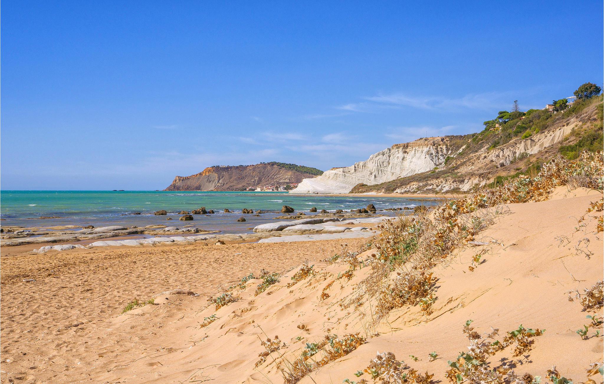 Stranden ligger bare en kort spasertur unna, og er ideell for soltilbedere og vannsportentusiaster. Området rundt Scala dei Turchi byr på en rekke aktiviteter og severdigheter. Besøk den unike stranden og utforsk de imponerende kalksteinsklippene, som er blant Sicilias vakreste naturvidundere. Vannsport som svømming, snorkling og dykking er spesielt populært her. Ta en tur til Agrigento for å besøke gamle templer og historiske steder som gir et innblikk i regionens rike historie. Oppdag de pittoreske kyststiene og nyt middelhavsstemningen på spaserturer langs kysten.