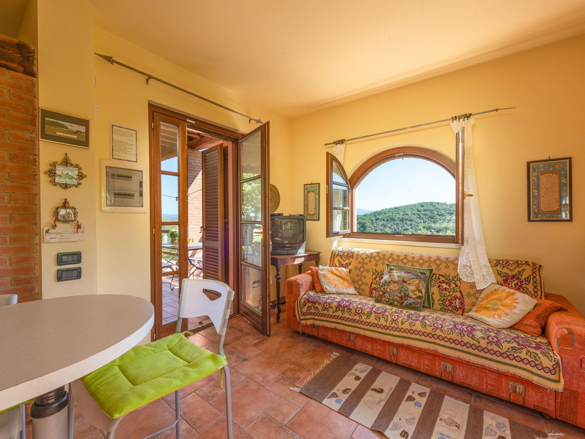 "La Limonaia", 2-room house 30 m2. Cosy furnishings: living/sleeping room with 1 double sofabed, dining table, satellite TV and wood-burning stove. 1 open room with 1 french bed (160 cm). Exit to the veranda. Open kitchen (mini-oven, 4 gas rings, toaster, kettle, electric coffee machine). Shower/bidet/WC. Gas heating, wood heating. Terrace. Terrace furniture. Panoramic view. Facilities: safe. Internet (WiFi, free). Parking (1 car). Please note: non-smokers only. Maximum 1 pet/ dog allowed. IT053024B4M5QKHE6T