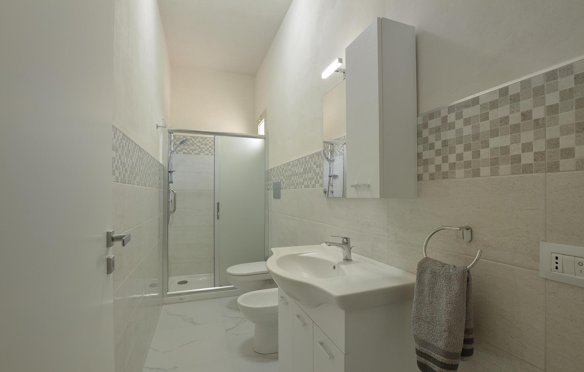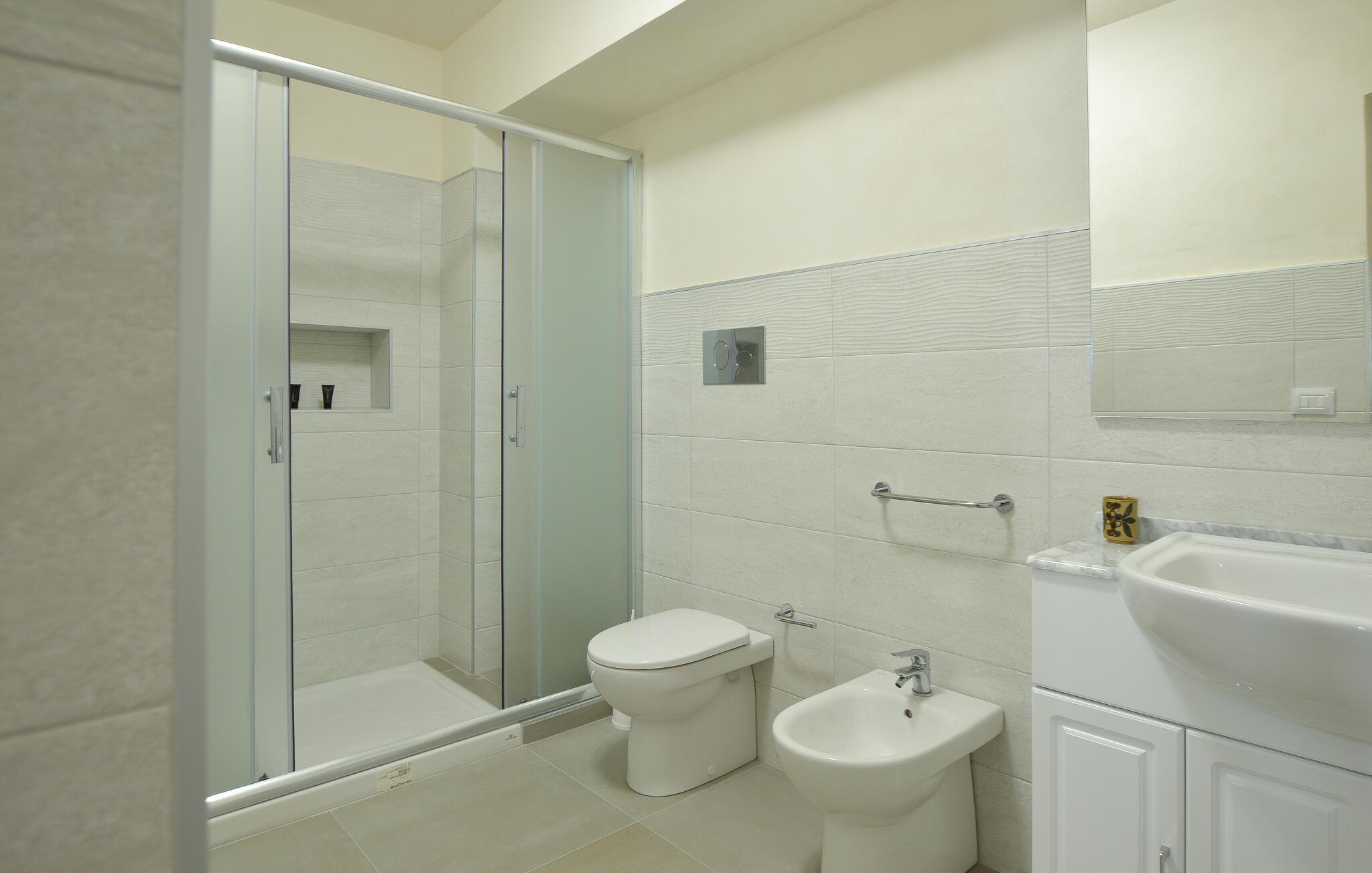 - WC med varmt og kaldt vann, Dusj