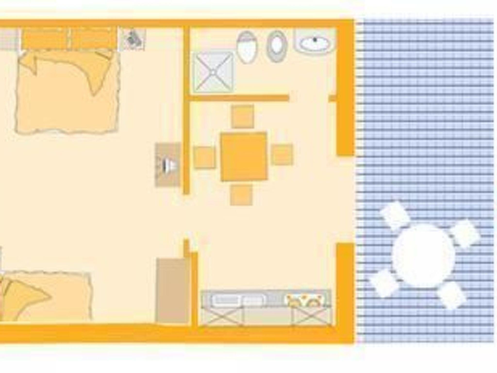 - Living room with kitchen; - Bedroom with double bed or three single beds; - Bath with Shower; - big, equipped terrace; - parking place.